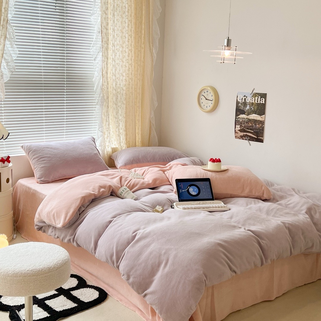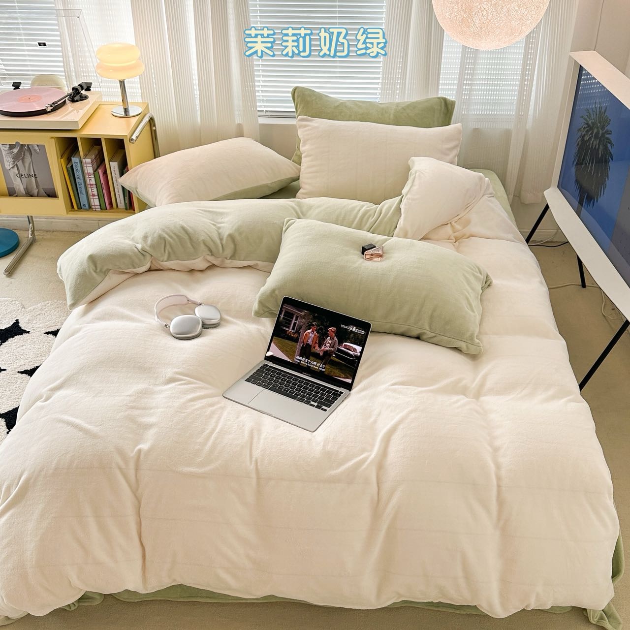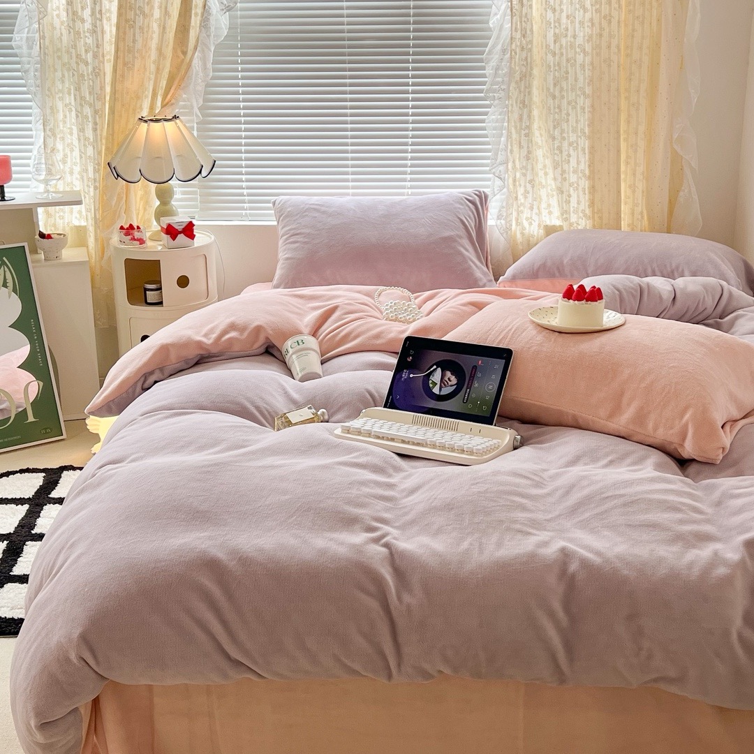 D112536氛围感奶油双拼牛奶绒高品质保暖牛奶绒床上四件套