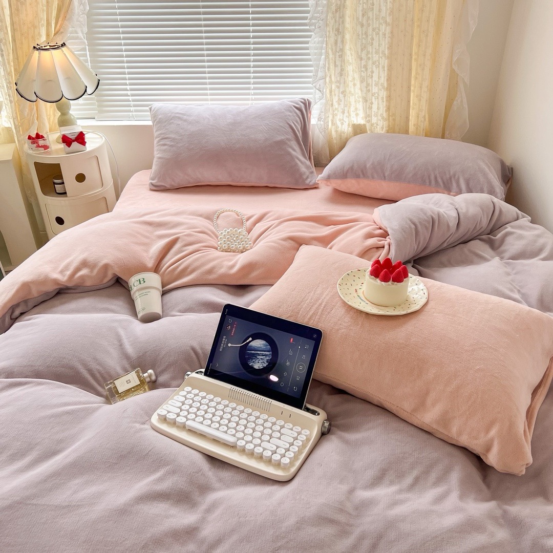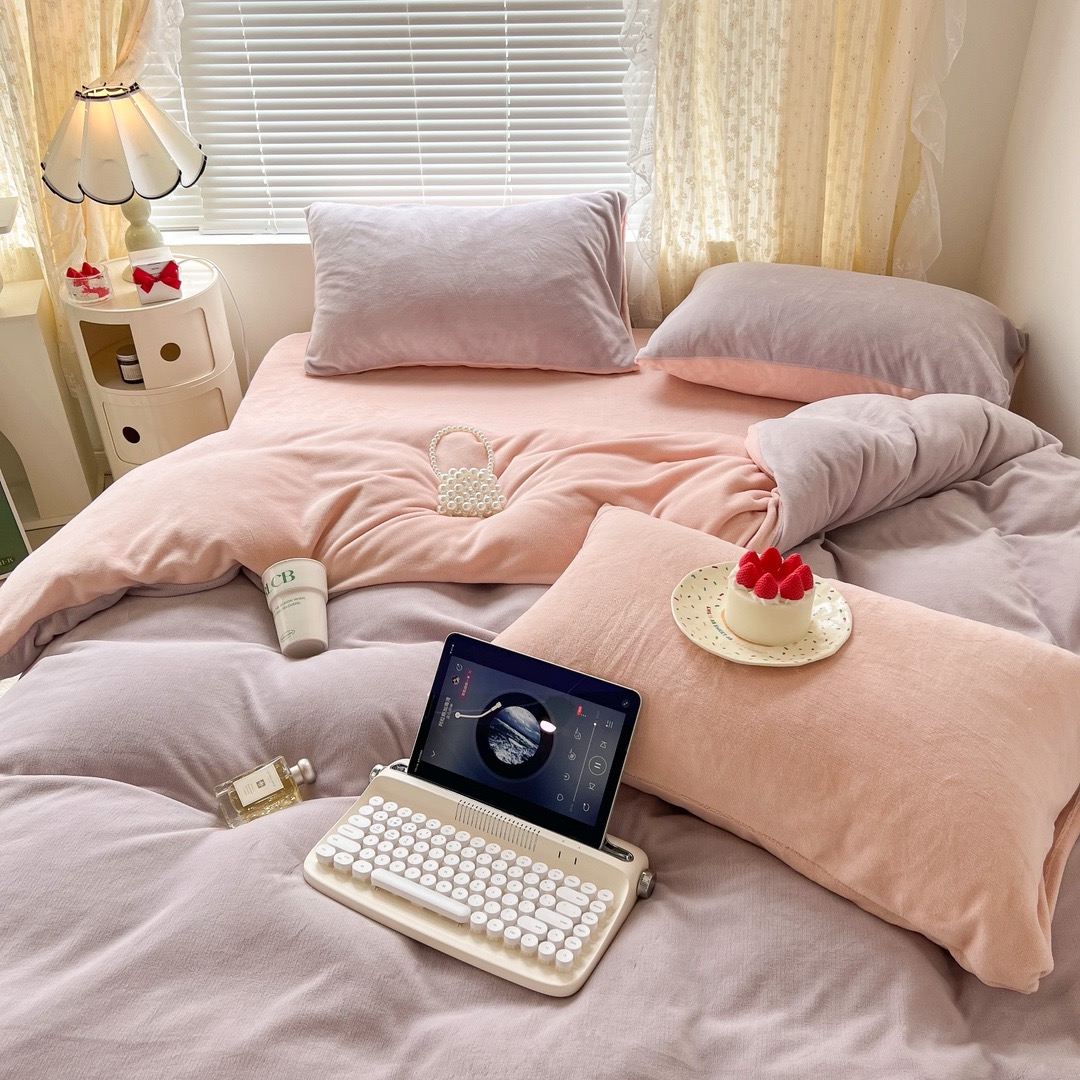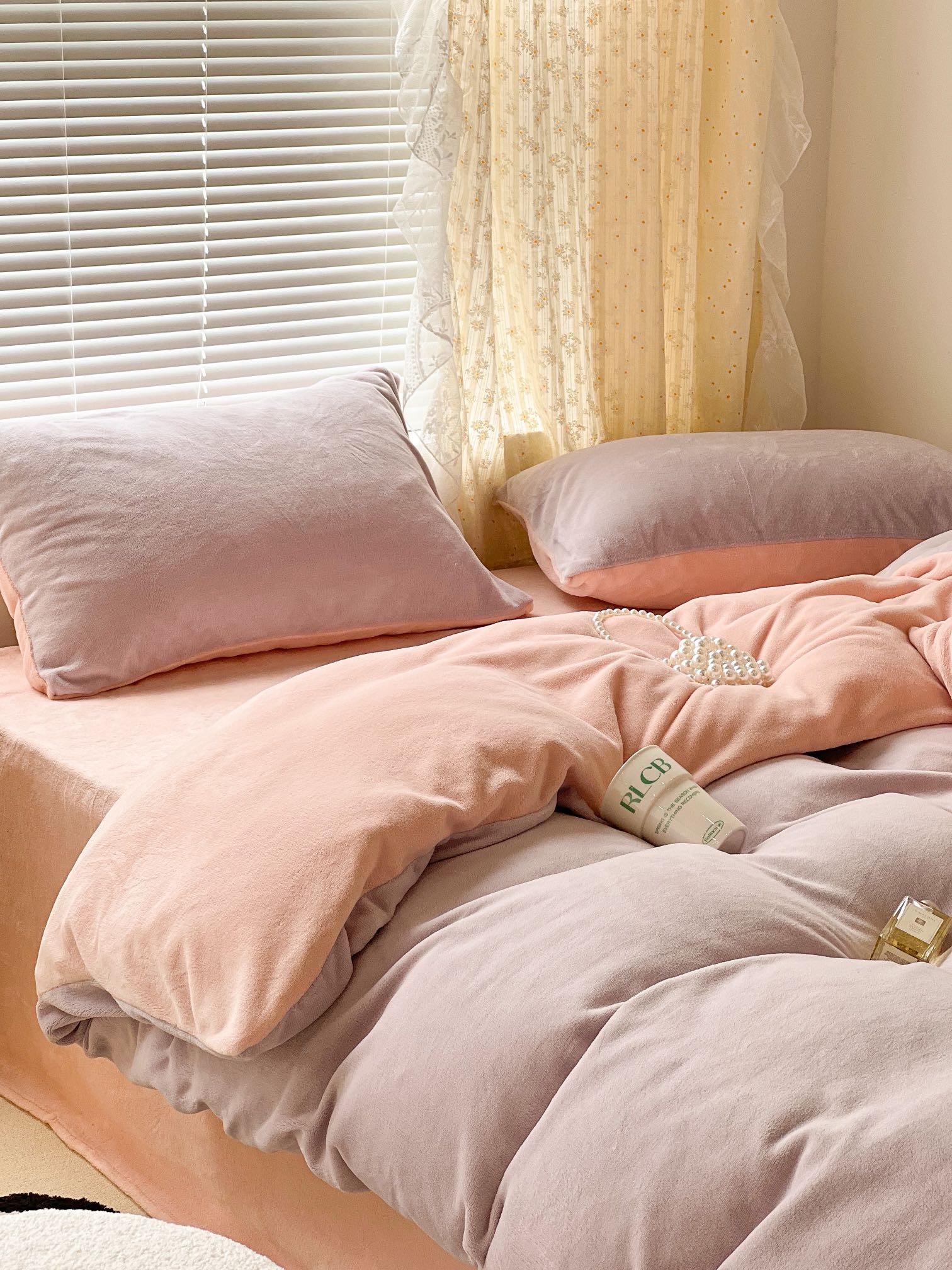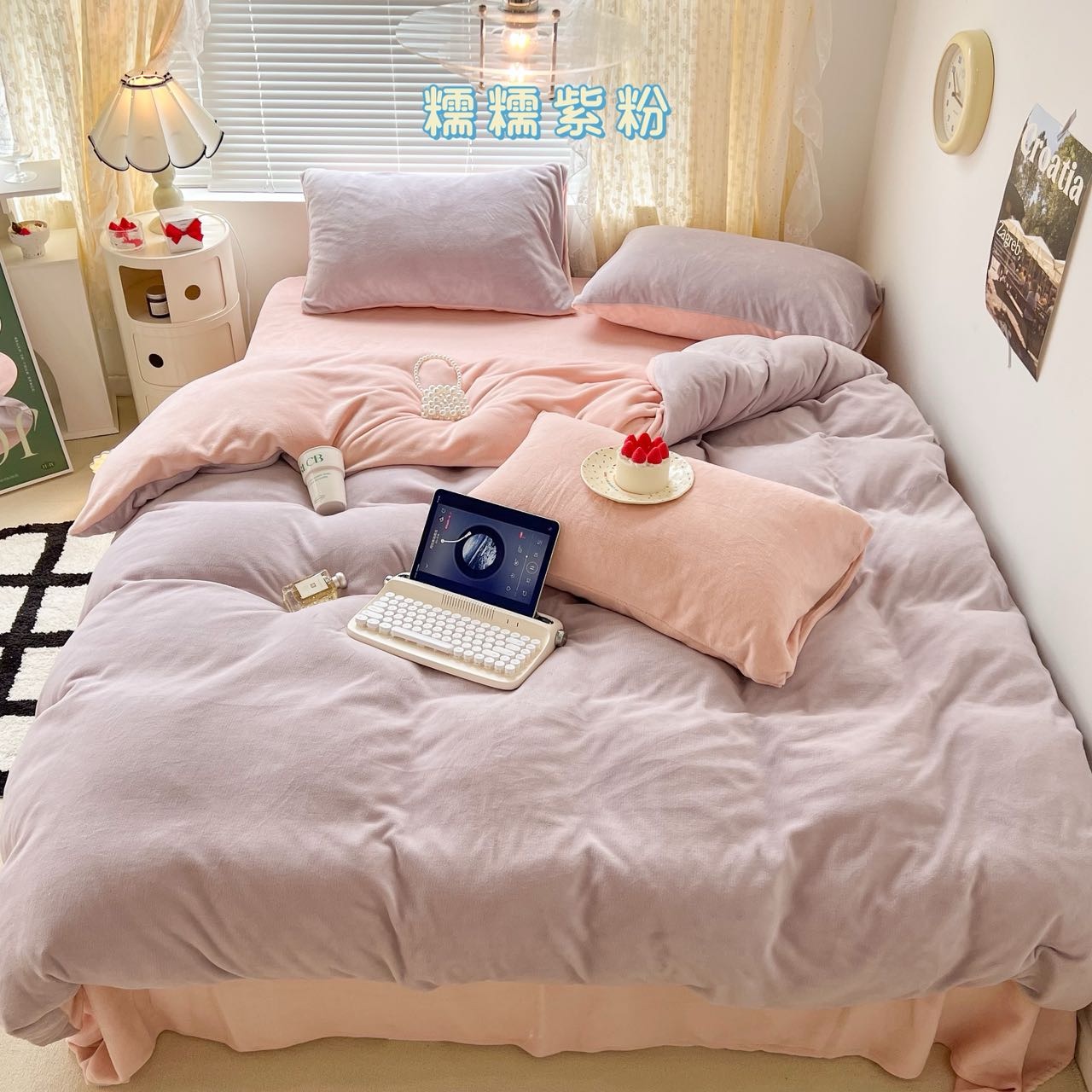 D112536氛围感奶油双拼牛奶绒高品质保暖牛奶绒床上四件套
