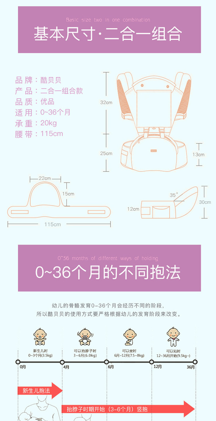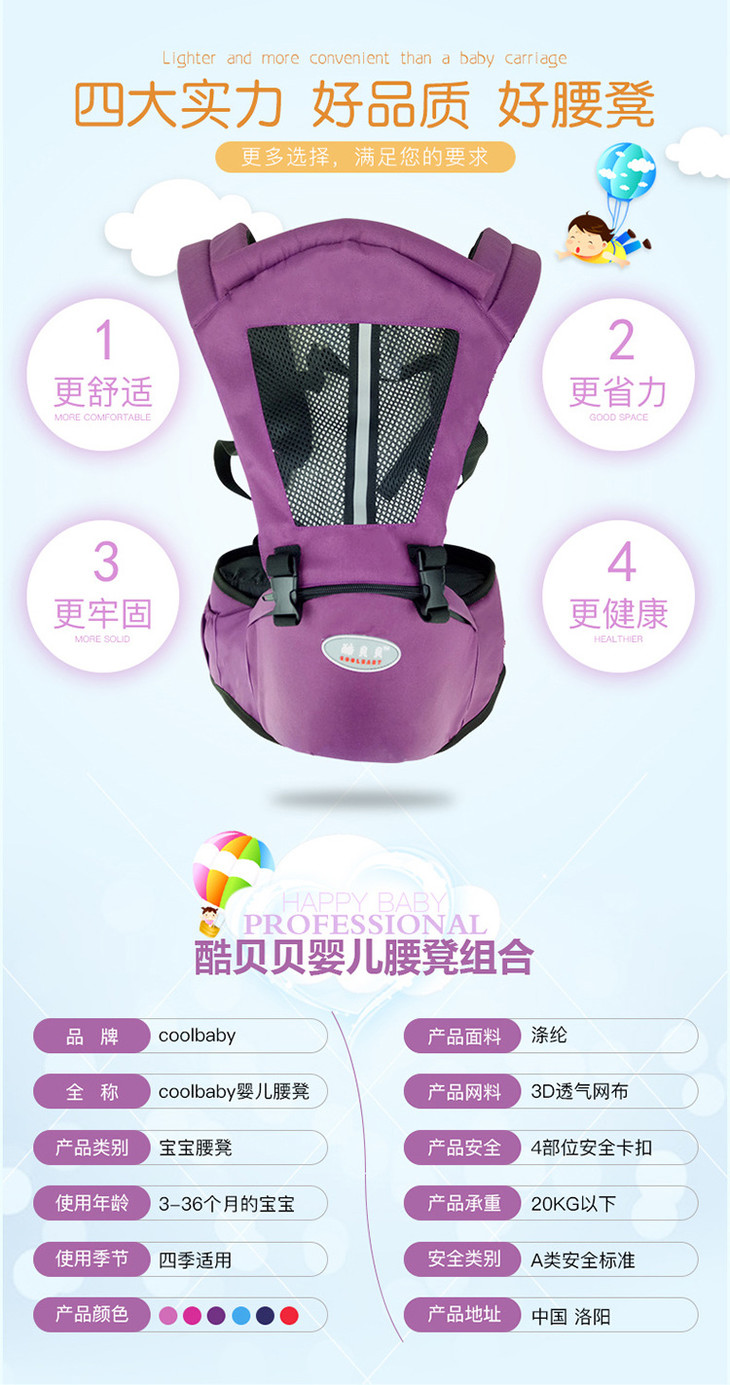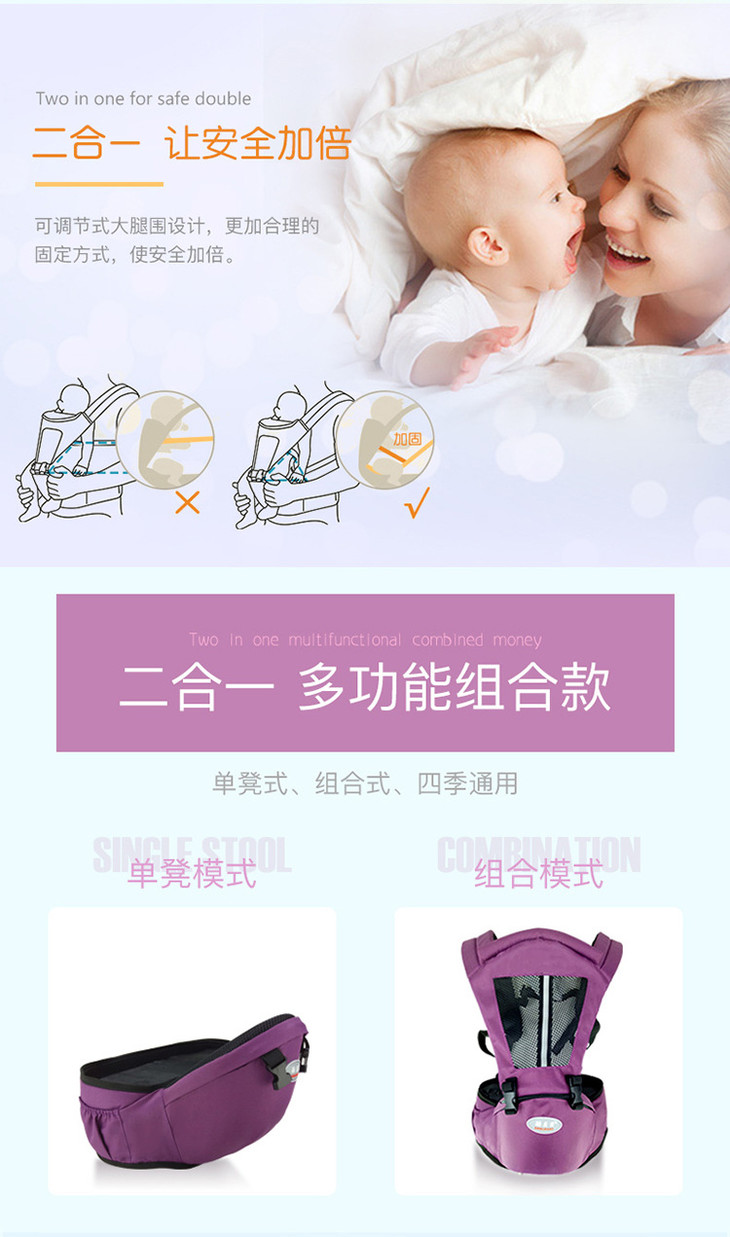 【母婴】四季多功能透气双肩前抱式婴儿背带婴儿腰凳母婴用品