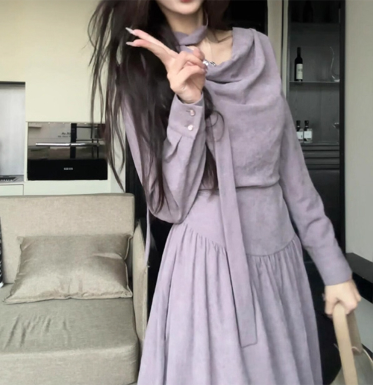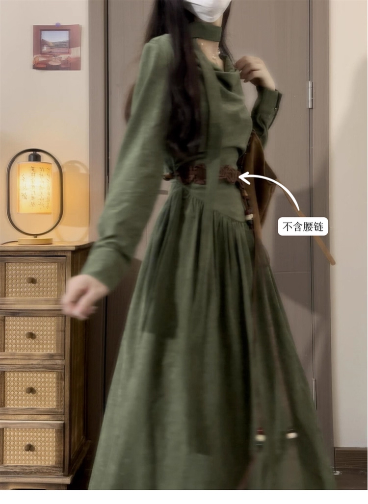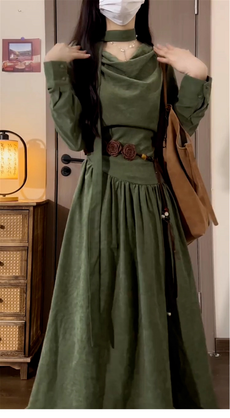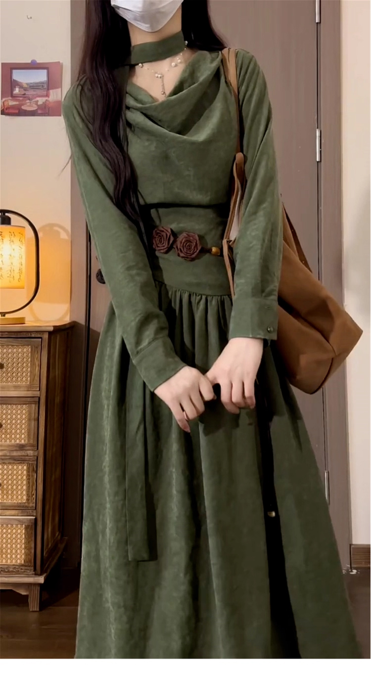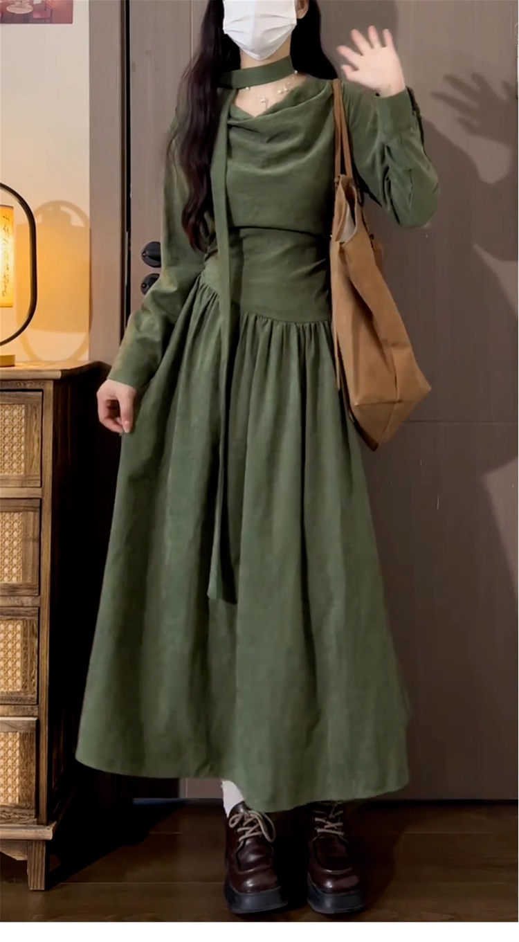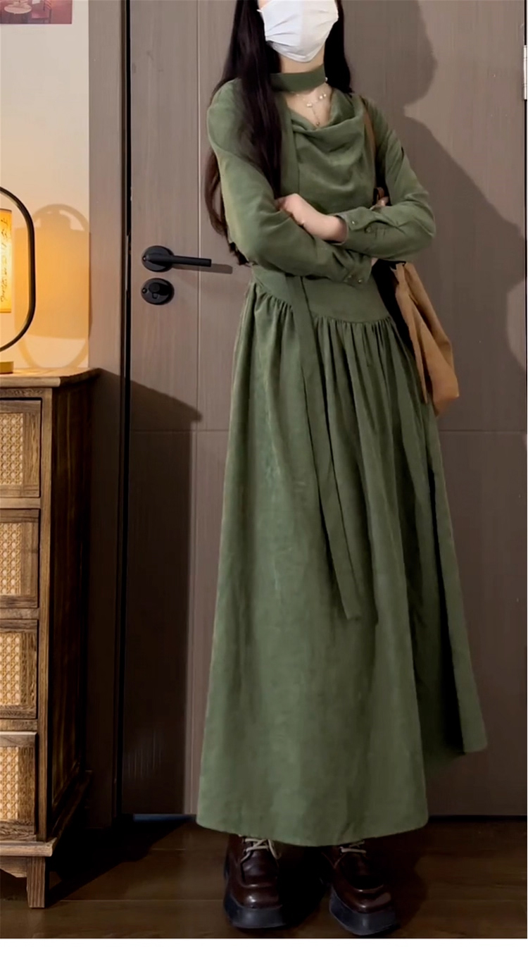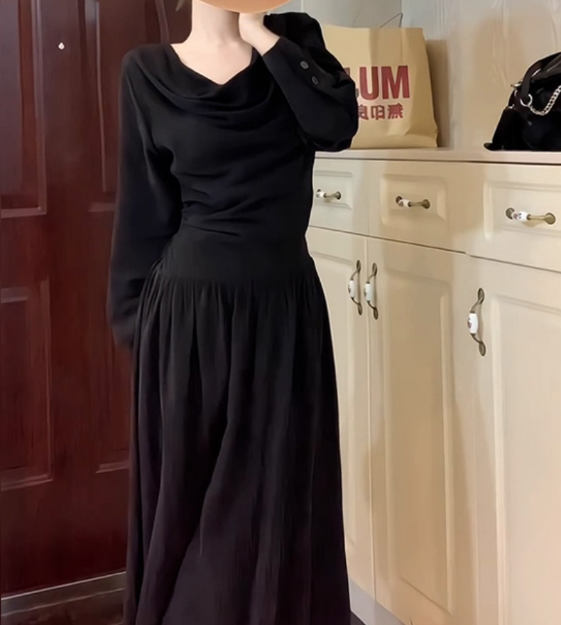 裁缝学苑AQ567设计感堆堆领收腰长袖连衣裙纸样女装新款长裙子样板图纸