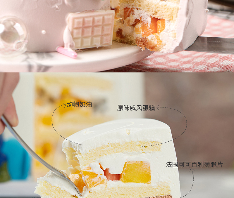 我们坚持当日接单、新鲜现做,拒绝罐头果肉与植物奶油,让每一口都保留食材本真的鲜活清甜。生活需要一点甜,我们的蛋糕不只是一份甜品,更是传递快乐的仪式感,为你带来视觉与味蕾的双重满足~
