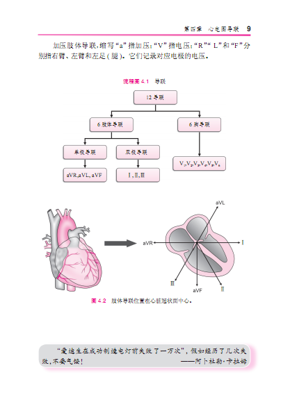 1 《心电图系统学习一日通》共分9章,包括心电图历史,心脏传导系统生理,心电图基础,心电图导联,心电图导联的放置,正常心电图形态,心电图系统识图,心律失常,系统解读心律失常,鉴别诊断。Sajjan医生把他对心电图学的热忱、强大的心脏病学的功底和熟练的多媒体技巧相结合,给大家呈现了一本图文并茂、通俗易懂的实用心电图学手册。