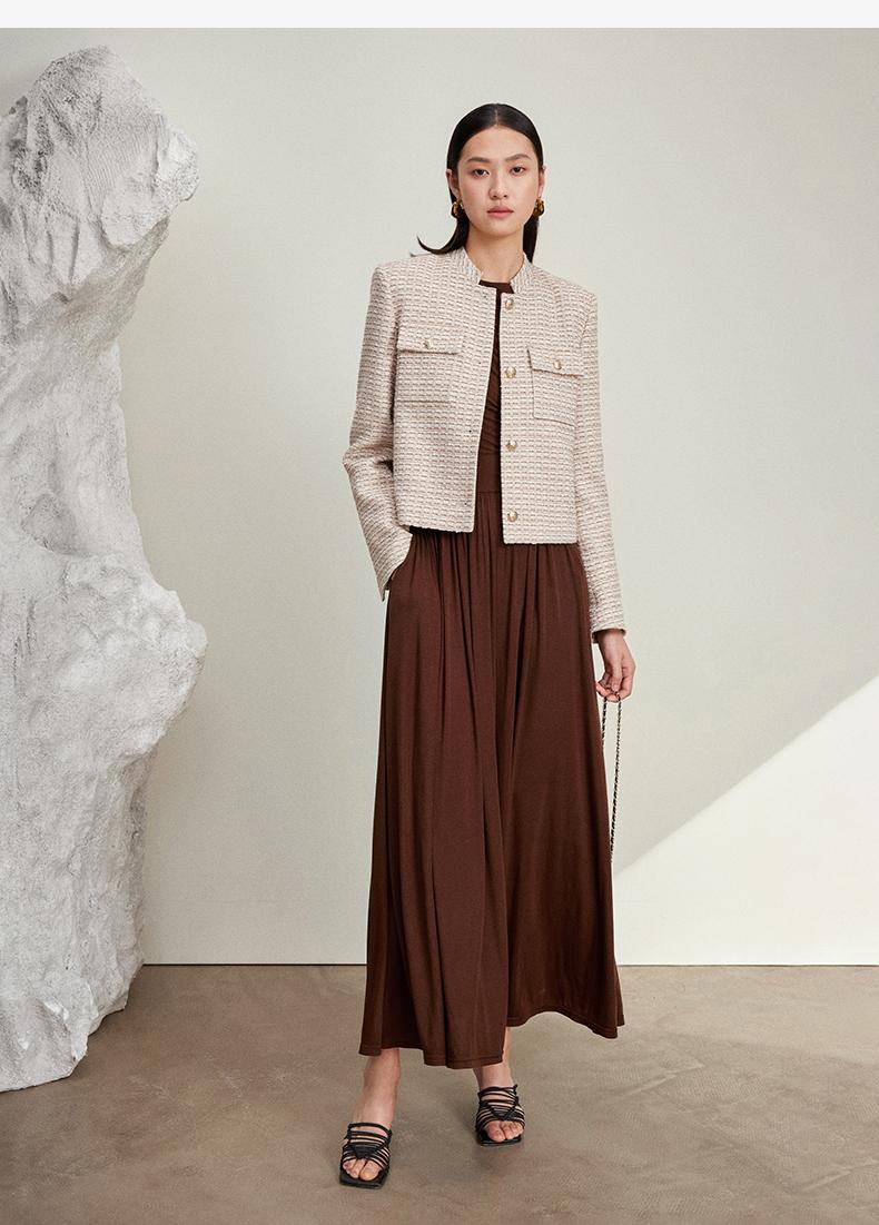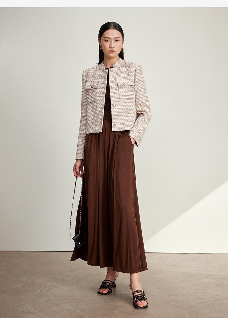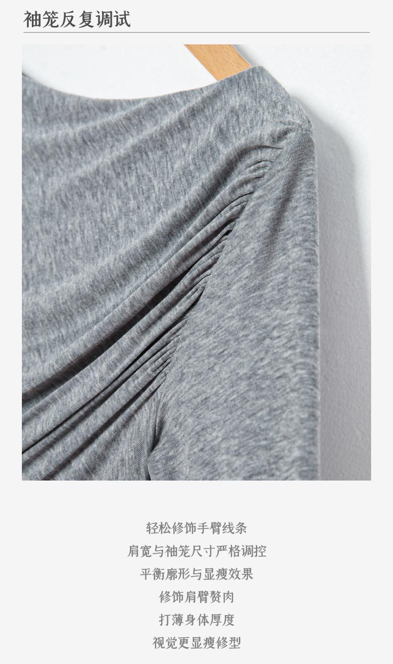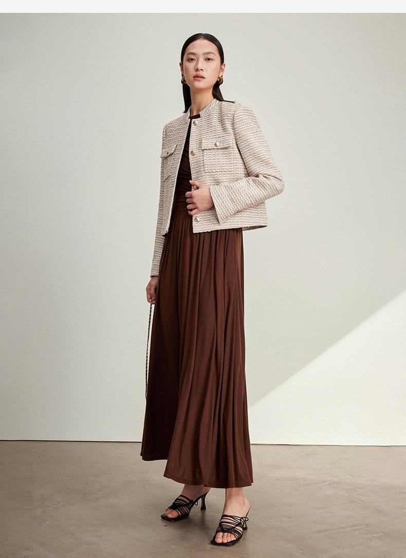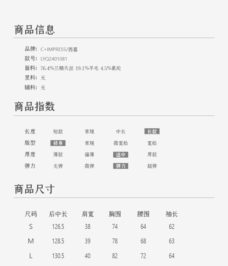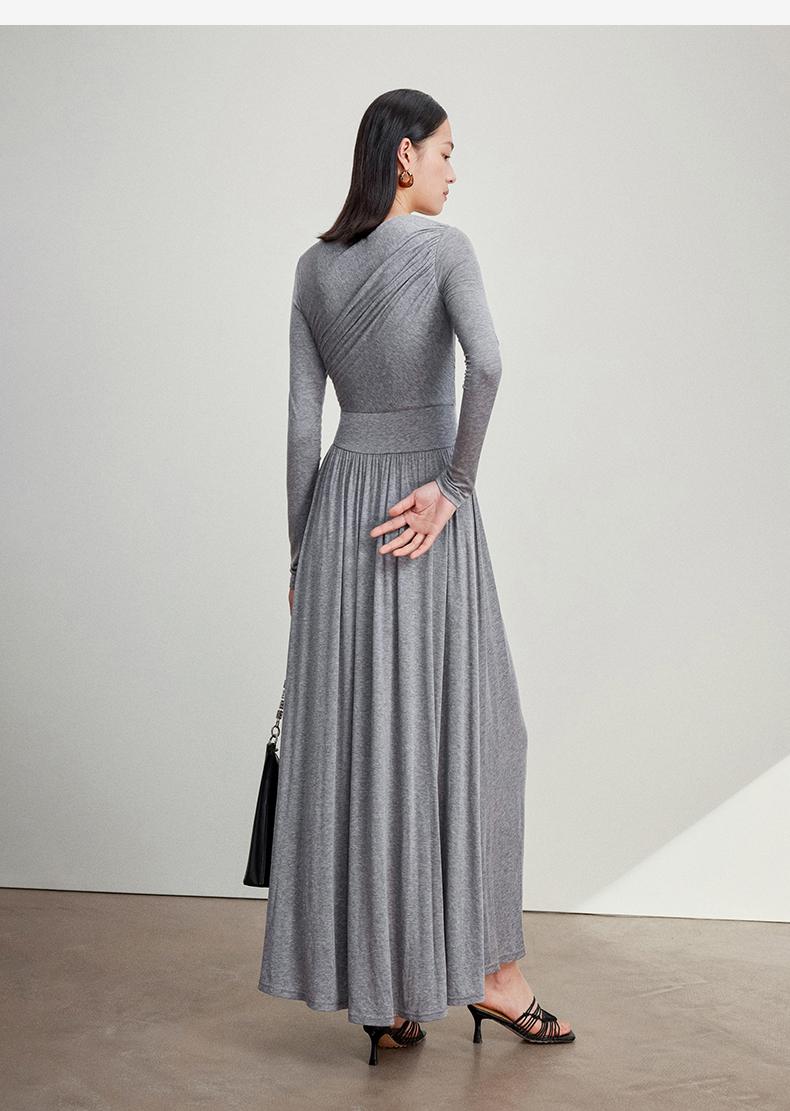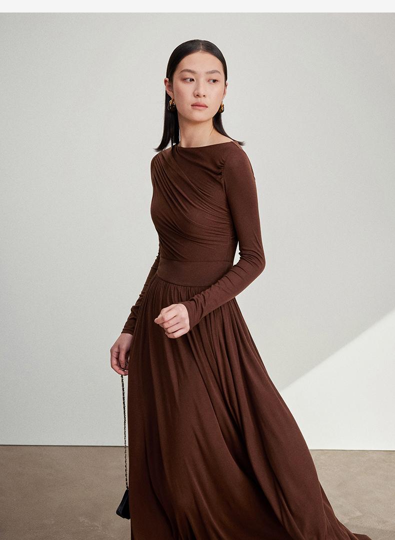西嘉C+IMPRESS/西嘉抽褶长袖针织连衣裙女士显瘦纸片人天丝一字领LYQ2401081