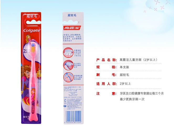 【品牌直发】【4支】高露洁动物世界儿童牙刷超软毛2岁以上乳牙期换牙期宝宝牙刷批发