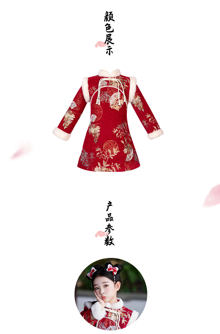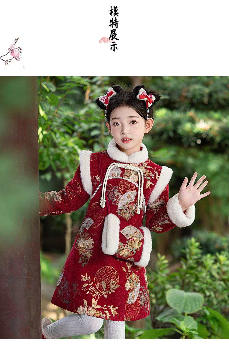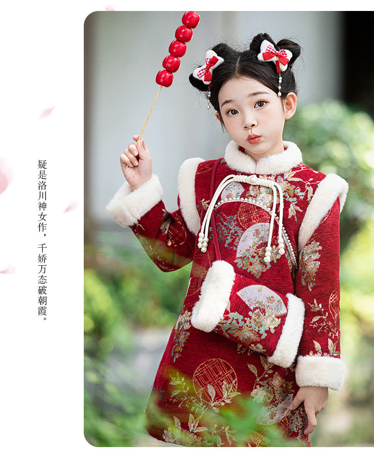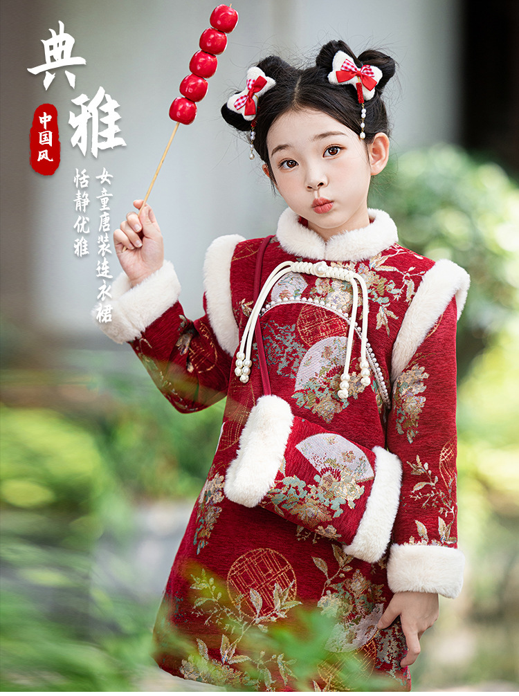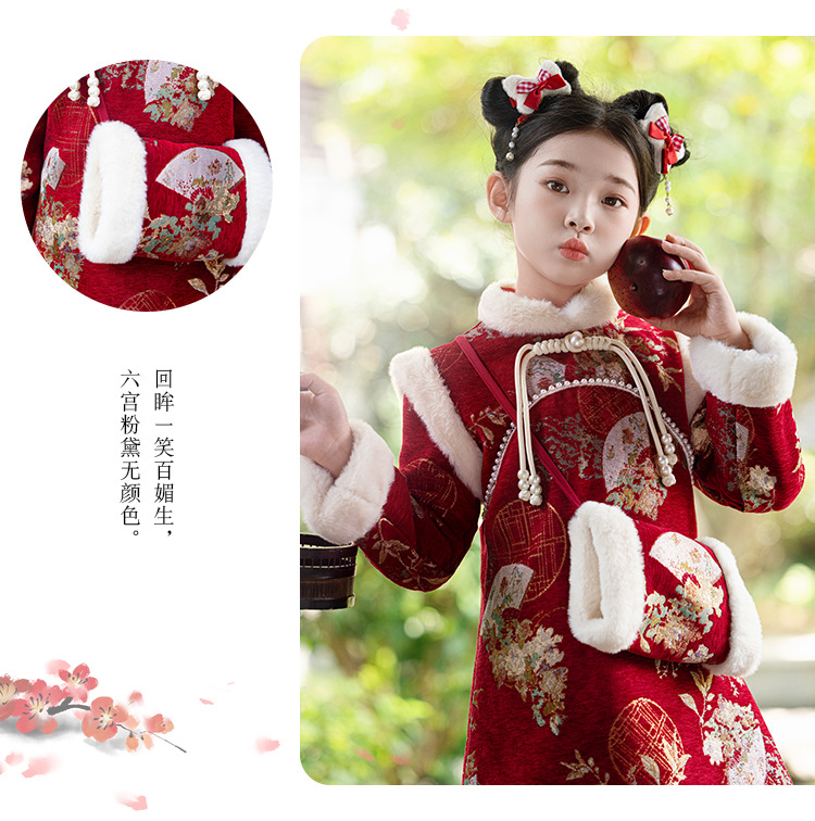 ST-26P323女童古风汉服2024新款冬季加厚唐装连衣裙宝宝洋气拜年服儿童旗袍