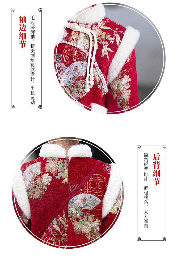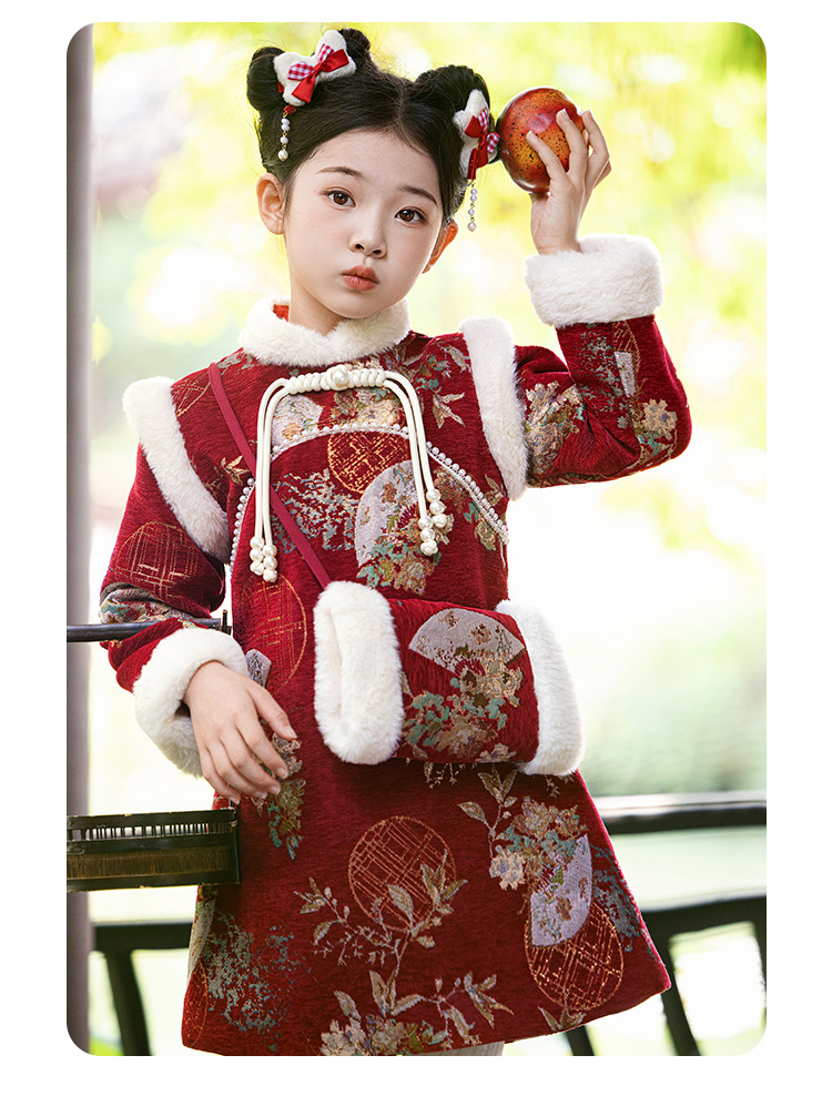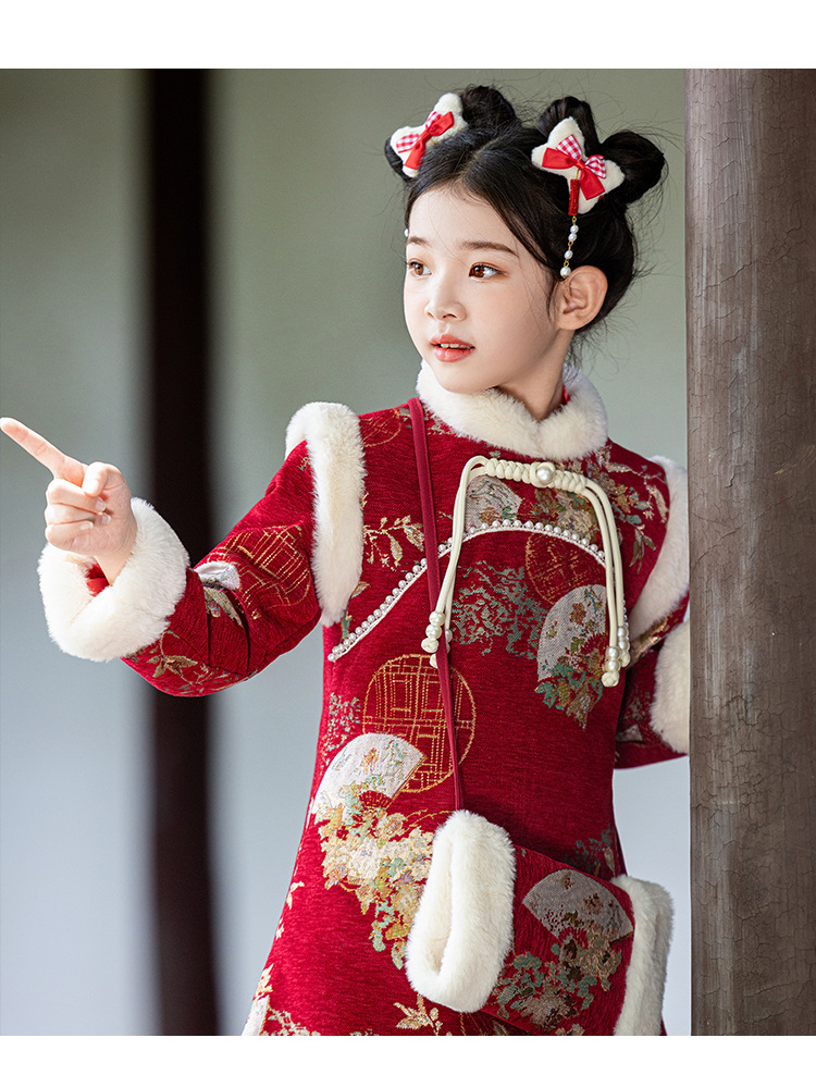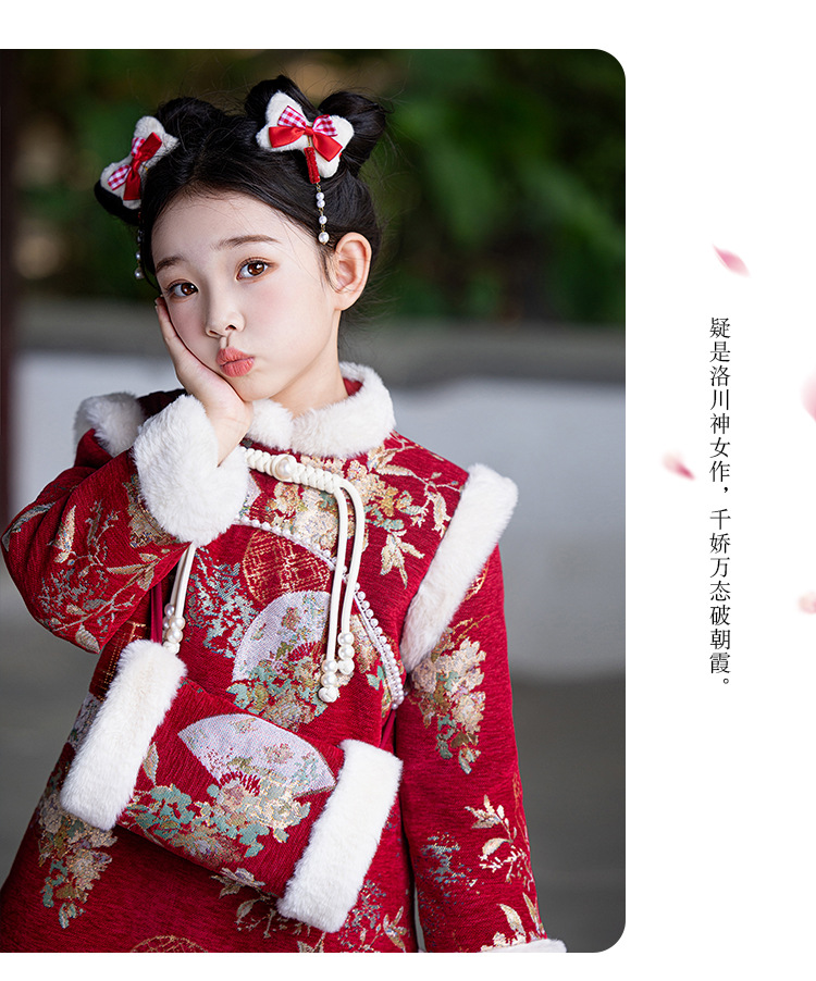 ST-26P323女童古风汉服2024新款冬季加厚唐装连衣裙宝宝洋气拜年服儿童旗袍