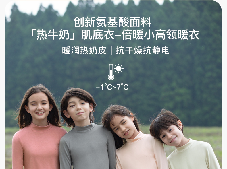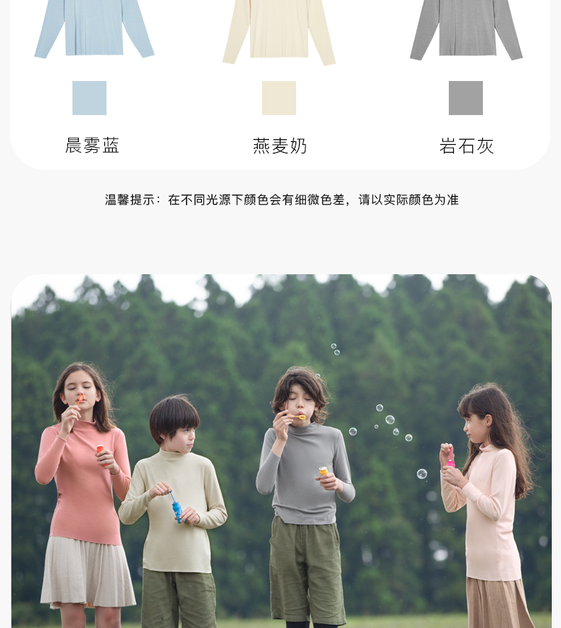 【低至5折】likeuu男女童倍暖立领学生中大童秋冬保暖打底