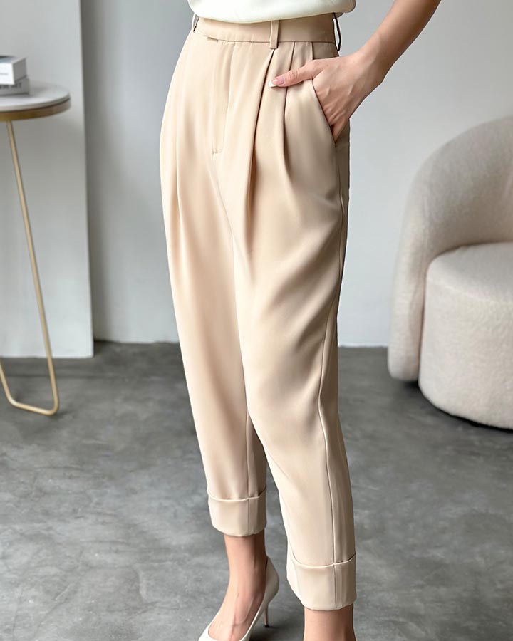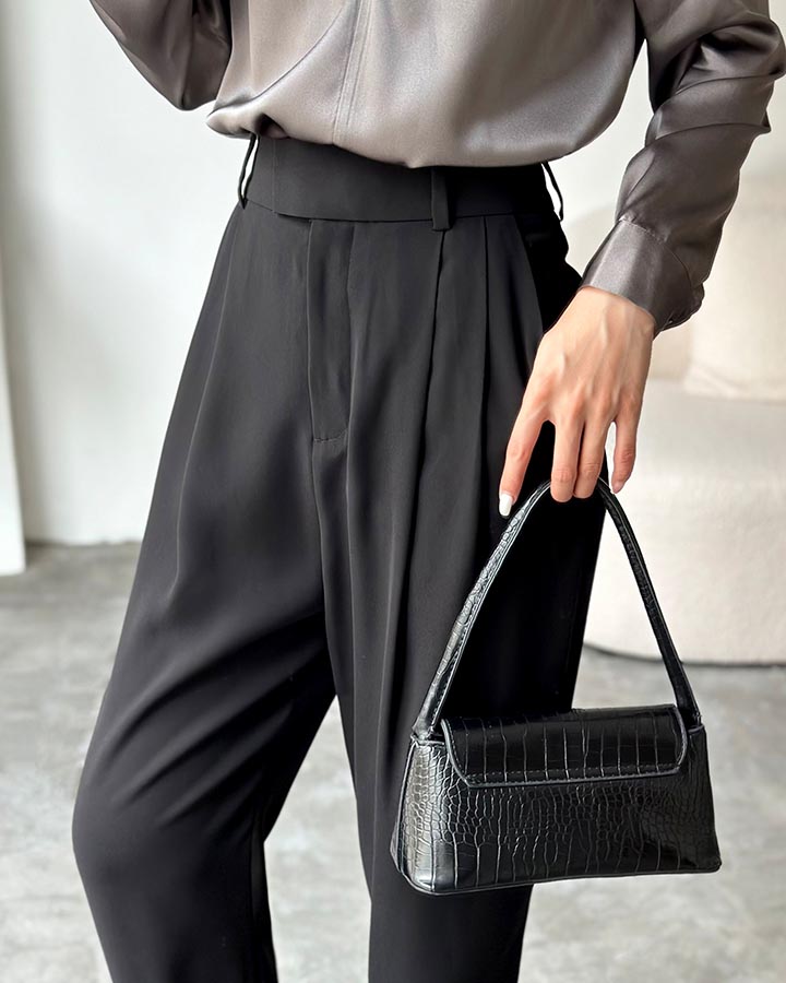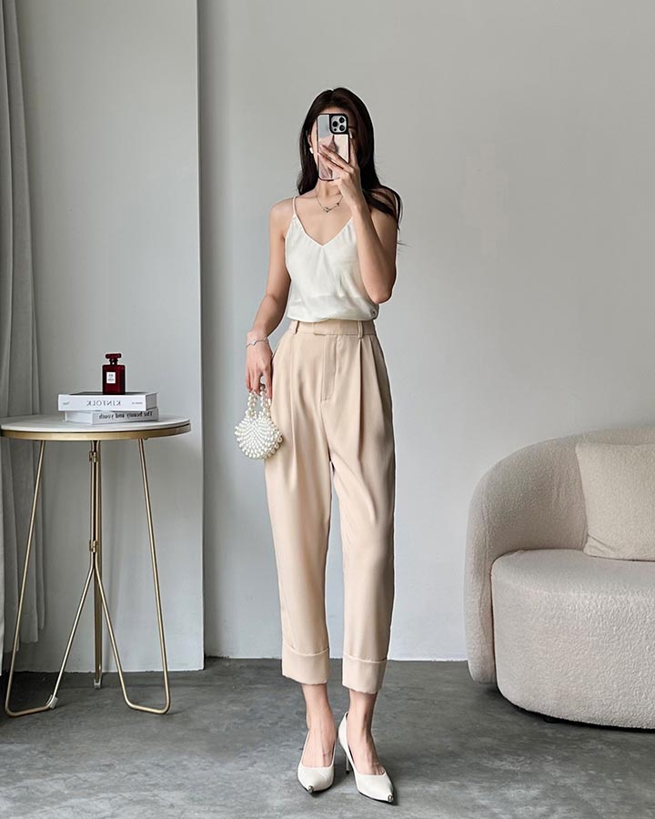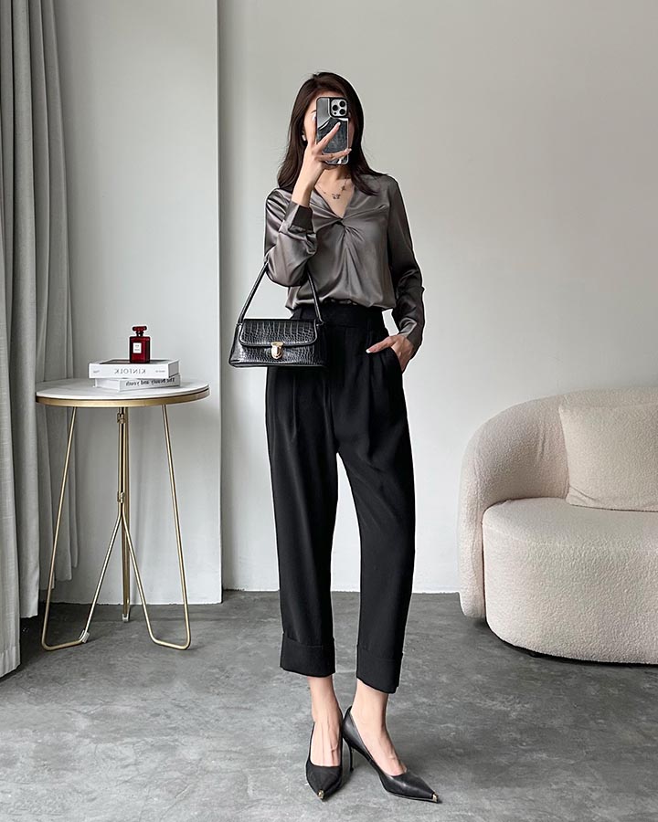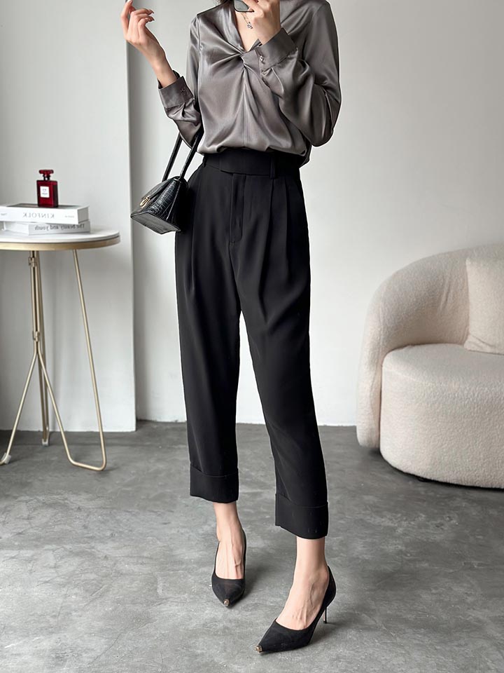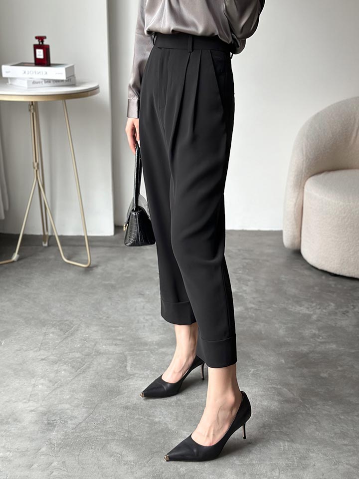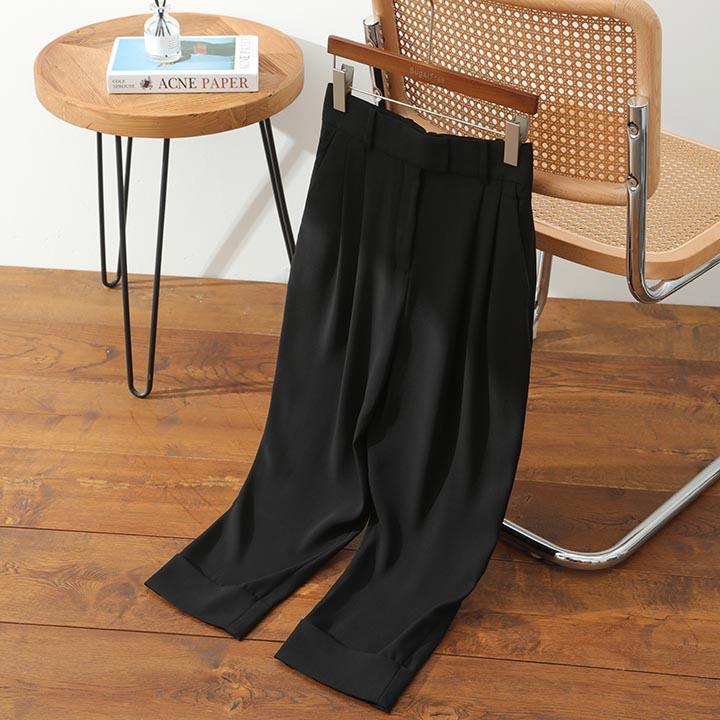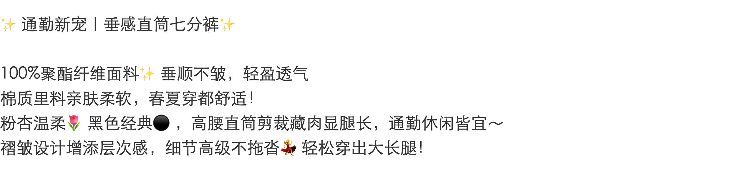 洛诗琳41627垂感直筒七分裤2025夏季小个子高腰通勤西装裤0059