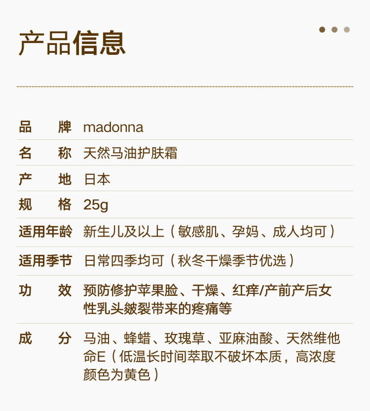 【海外直邮】Madonna 婴儿马油面霜宝宝护臀膏 25g
