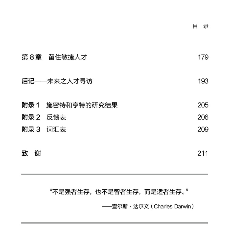 在这本书中,拉尔夫·克内格曼斯回答了下列问题:怎样才能知道“敏捷”人才是否符合公司需求?是否有什么办法能使人才选择更客观,同时能更可靠地预测人才未来成功的几率?如何才能在公司内部识别并留住“敏捷”人才?如何才能让这些“敏捷”人才的潜力得到充分的发挥?