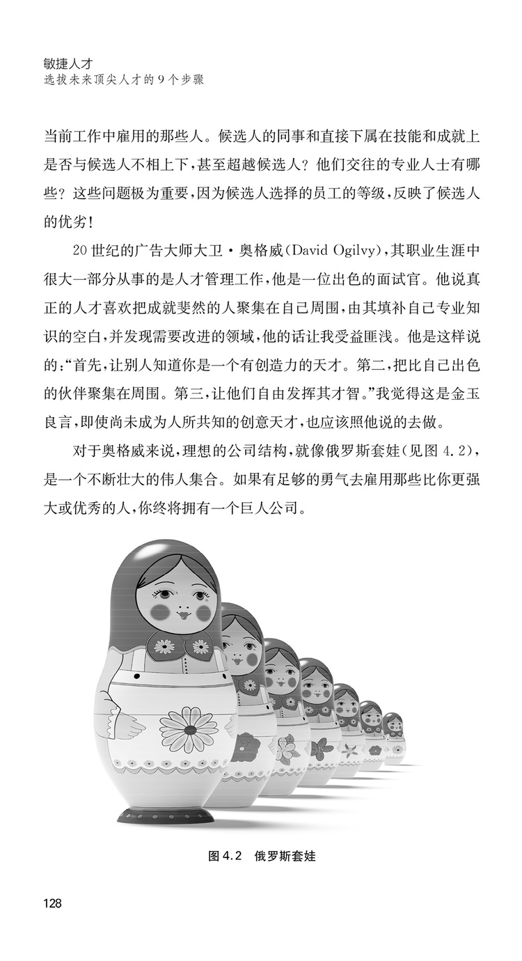 当今世界瞬息万变,技术变革掀起的巨浪,正在淘汰传统人才选拔模式,这将对人才的甄选产生深远的影响。书中结合西方和中国的商业实例,阐述了那些适应时代发展的企业都是启用了敏捷人才。作者结合自己的实践经验、高管访谈和*新研究成果,总结了选拔未来所需敏捷人才必经的3个连续阶段中的9个关键步骤,这样才能识别和物色到有才能、会与公司同舟共济、适应未来发展的敏捷人才,并阐述了如何留住这些敏捷人才,以确保公司未来发展更敏捷,更适应时代。本书适合公司高管、人力资源总监/经理以及其他寻找优秀人才的人士阅读。