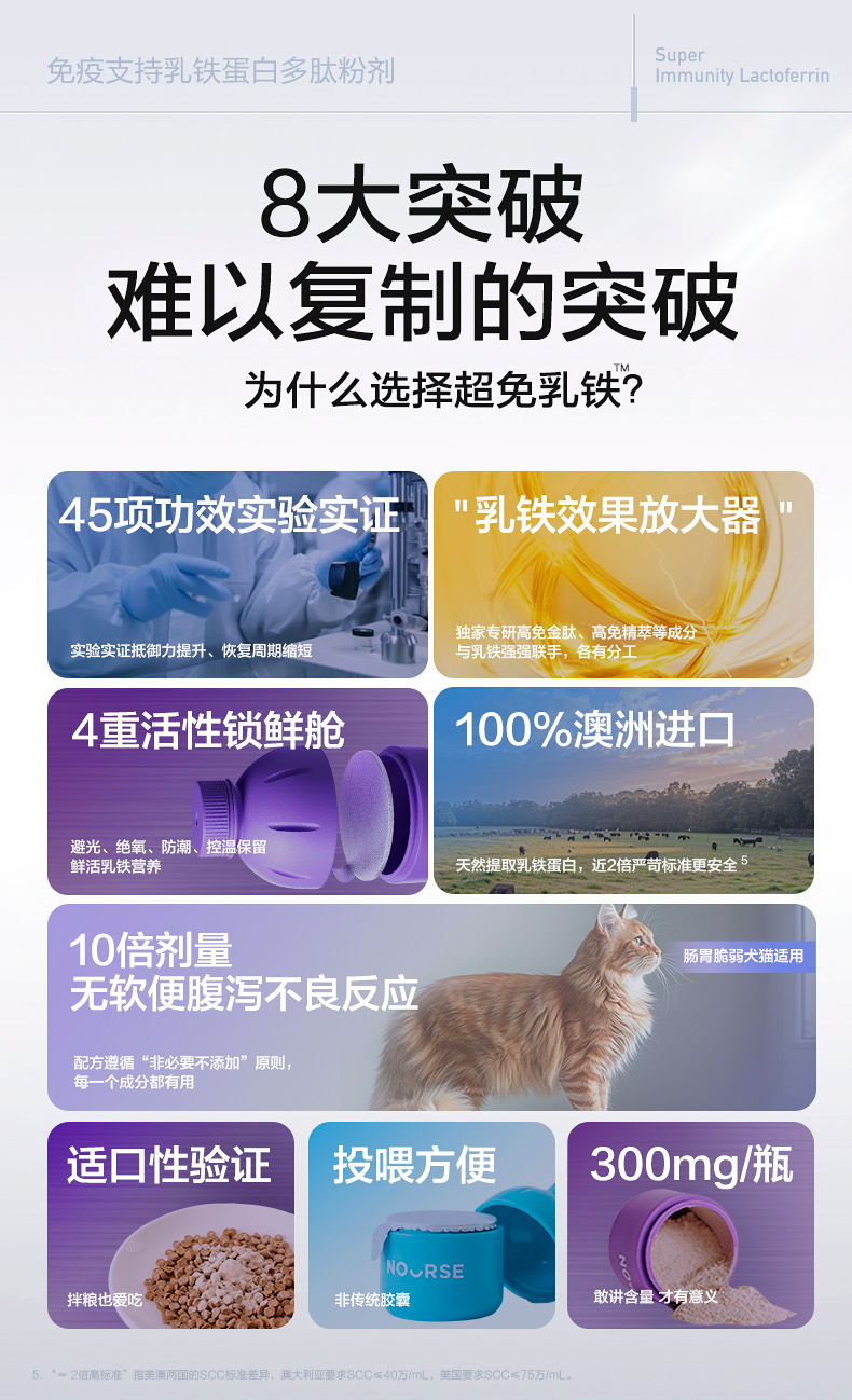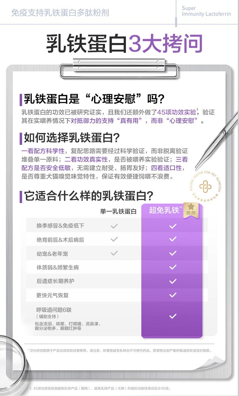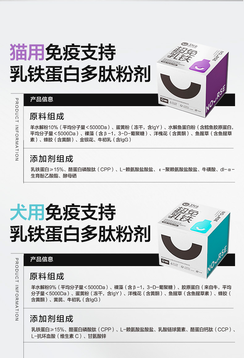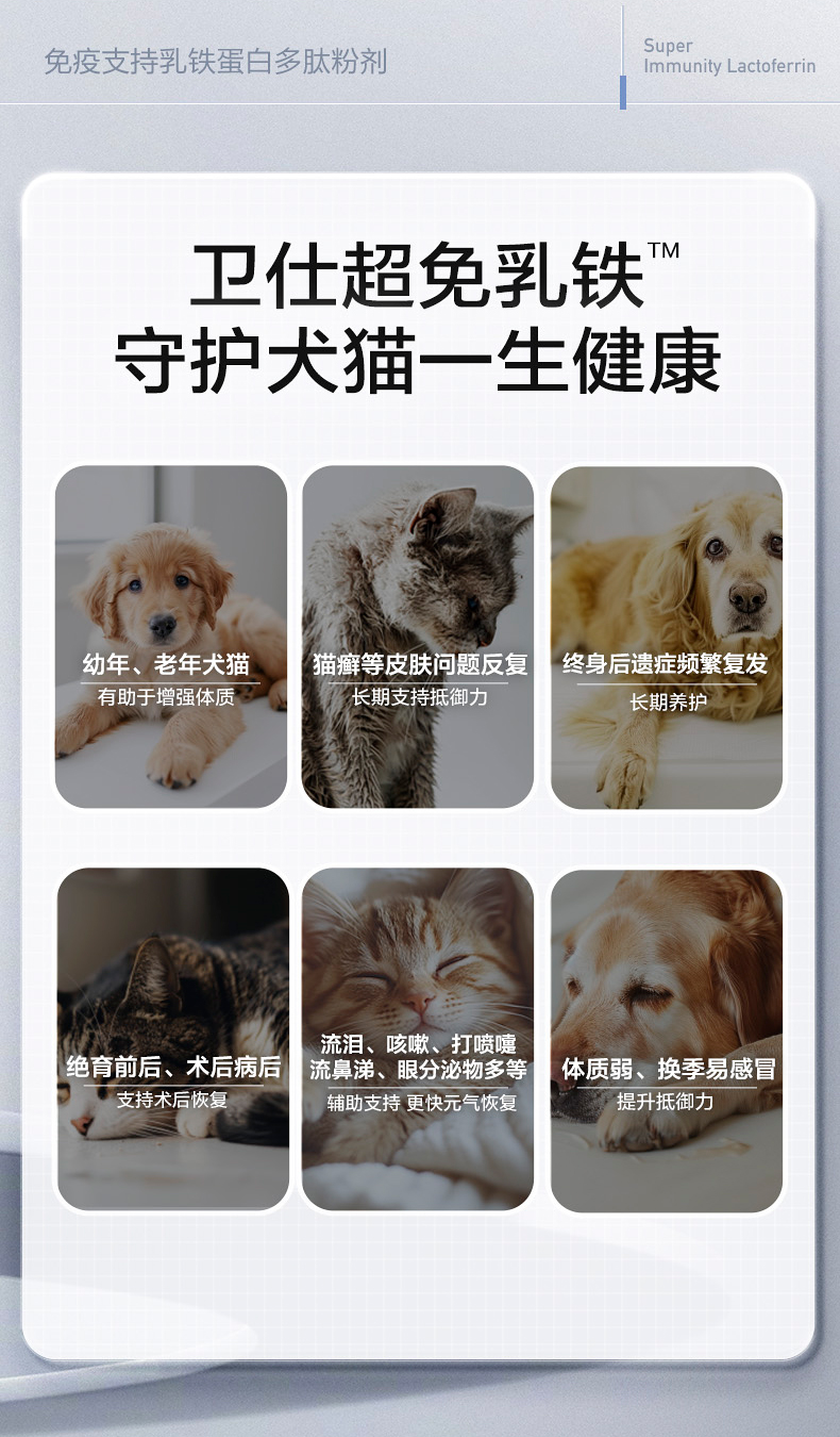 卫仕超免乳铁蛋白猫咪专用狗狗98%高纯0乳糖宠物幼猫幼犬免疫提升