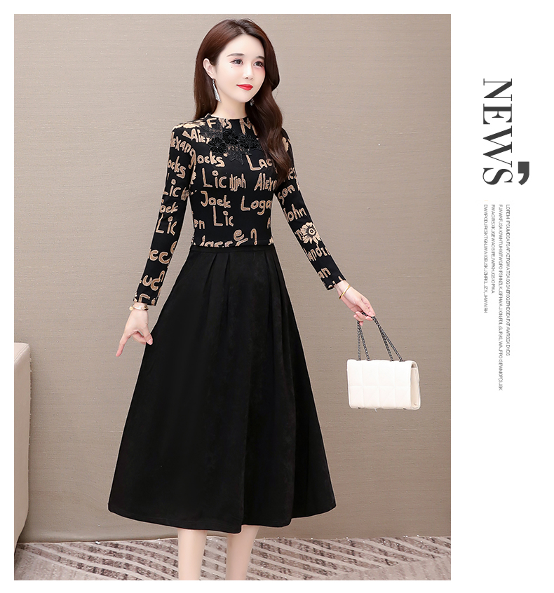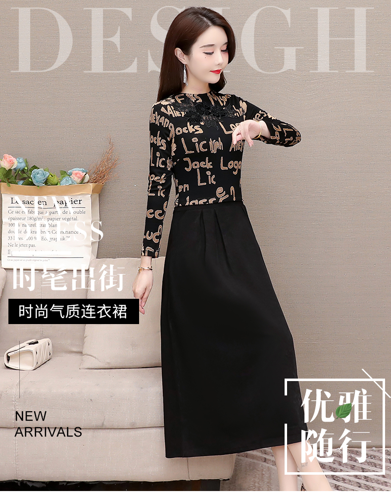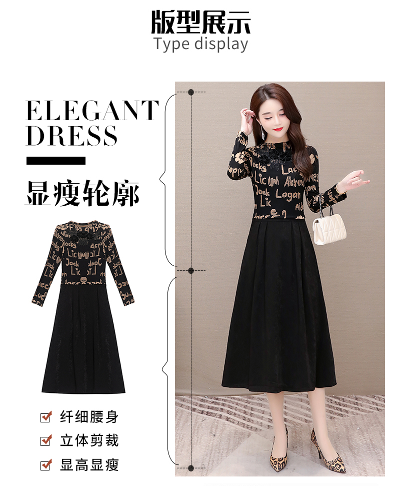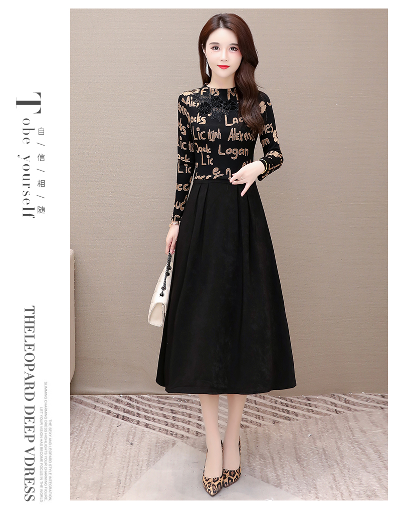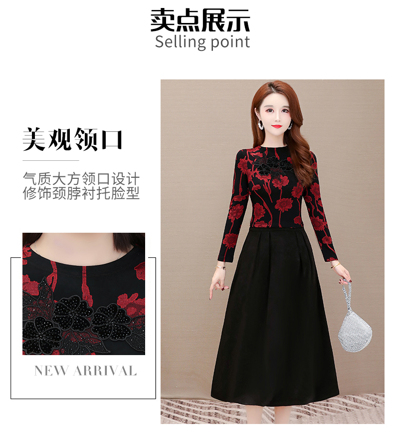 文艺复古V领真丝丝绒连衣裙,妈妈装秋冬长袖中长裙子SM-82497998