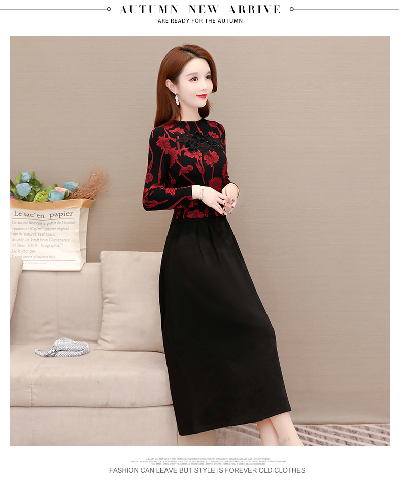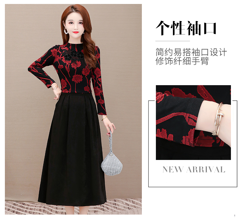 2022春款中腰裙套装小香风气质通勤印花法式收腰红色中长裙 ZQ1305-2202