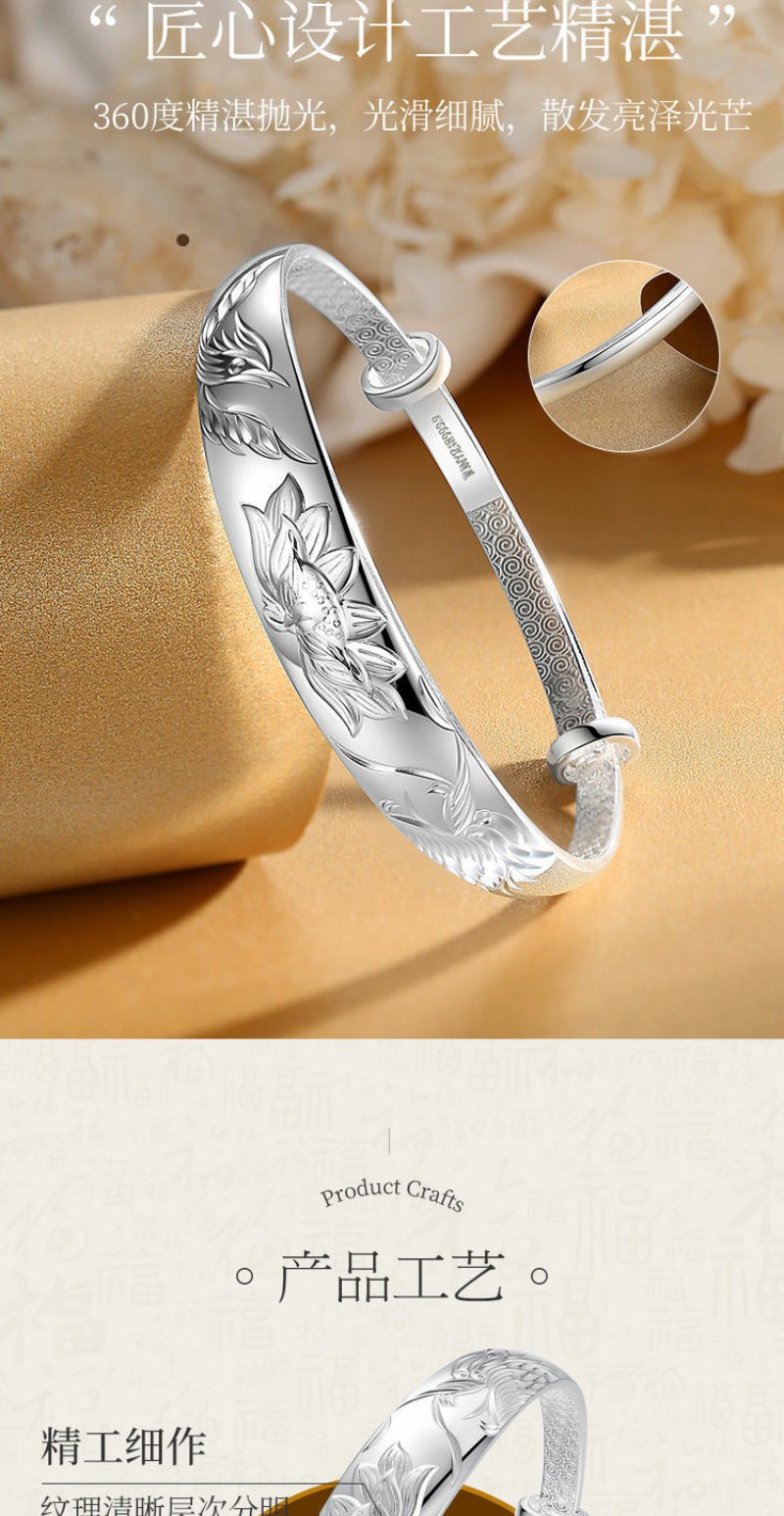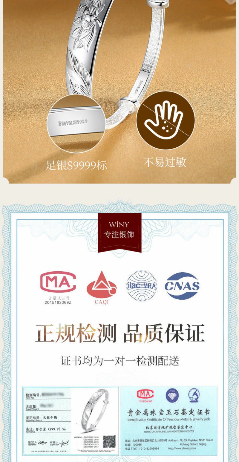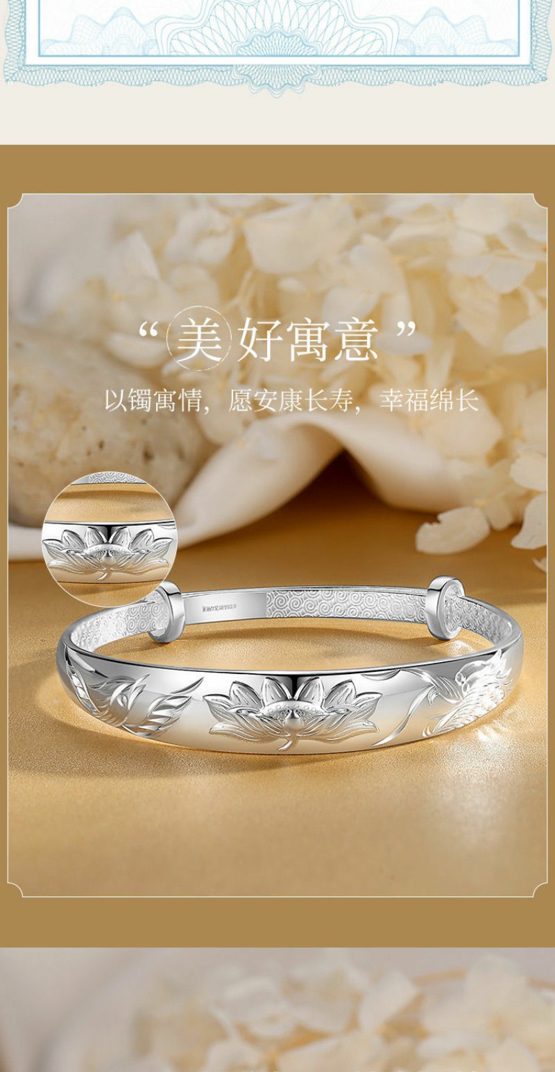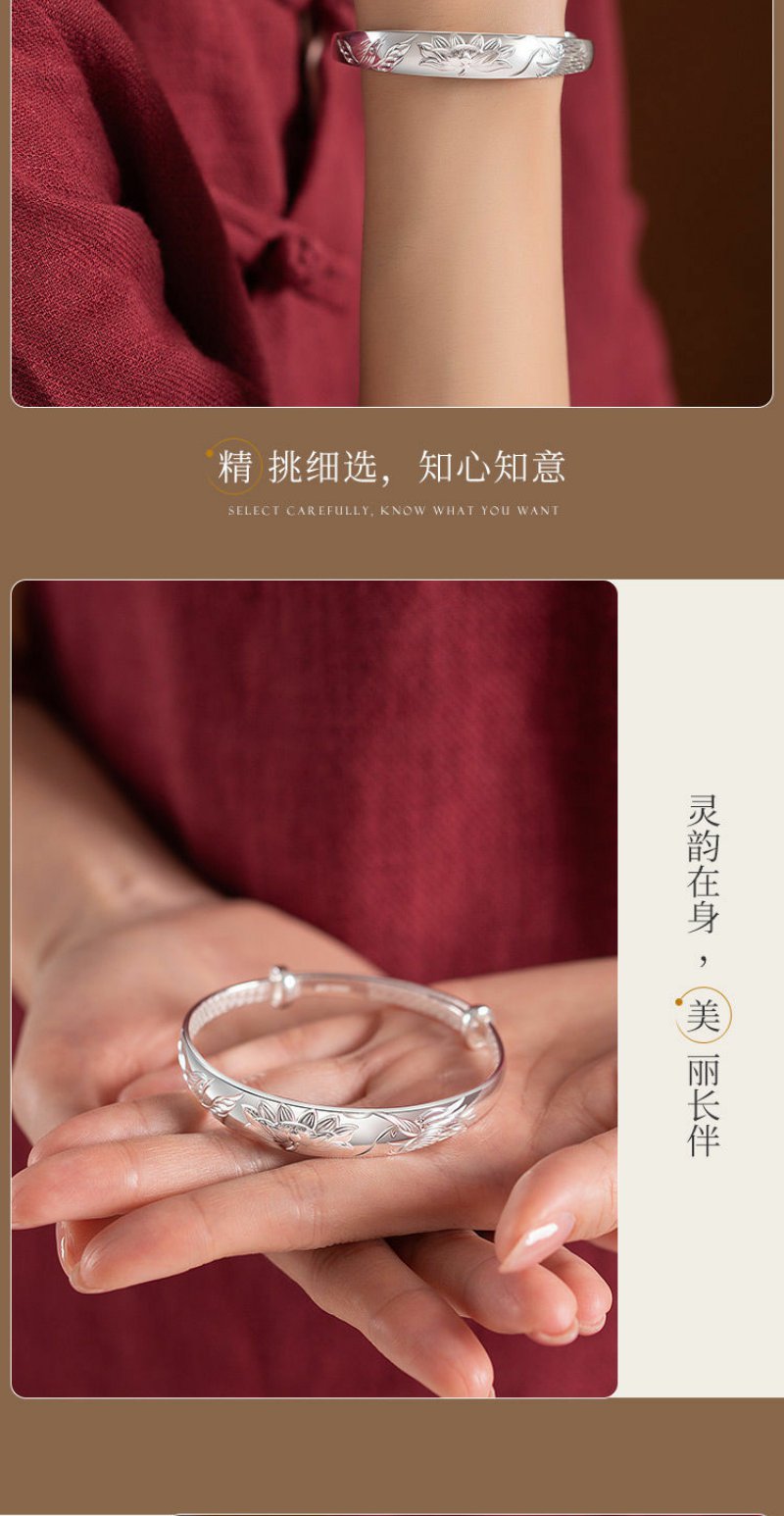 Winy9999足银莲花情手镯送女友闺蜜节日生日礼物