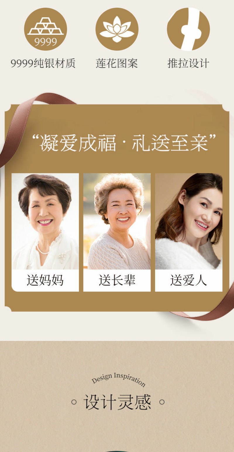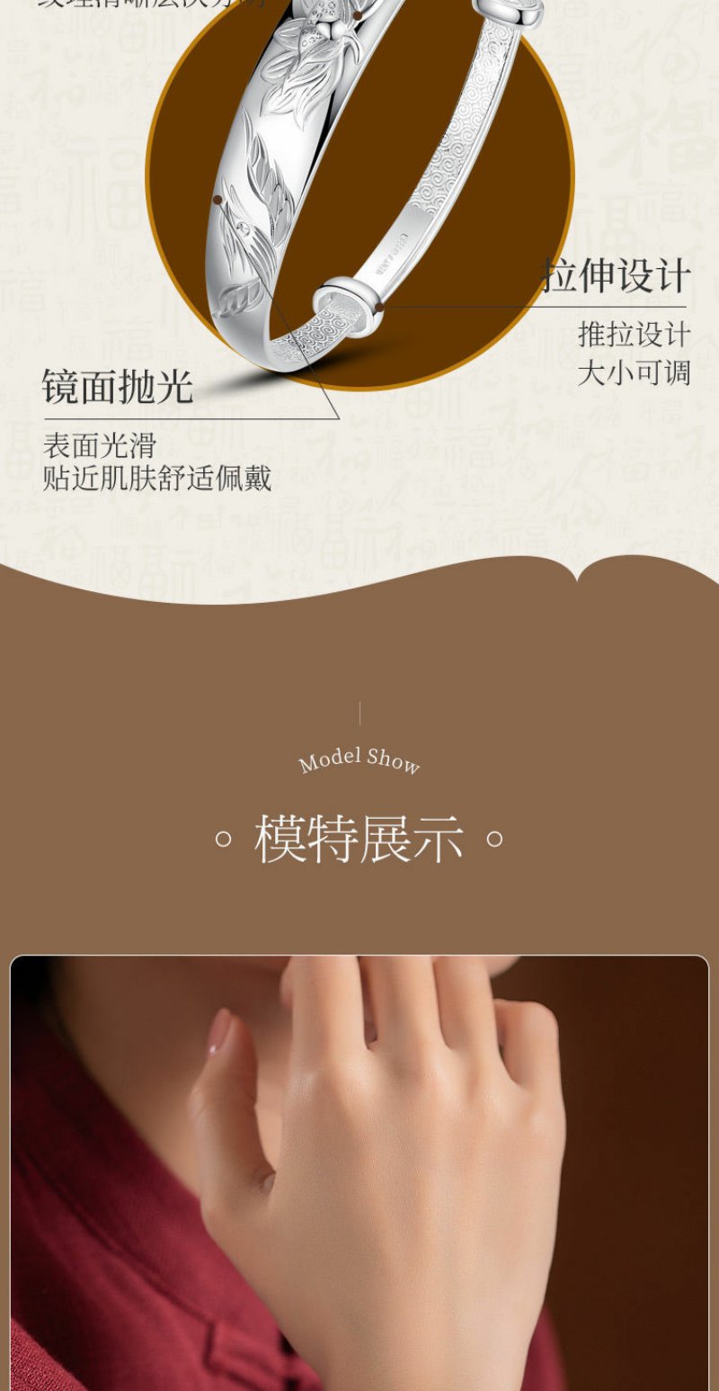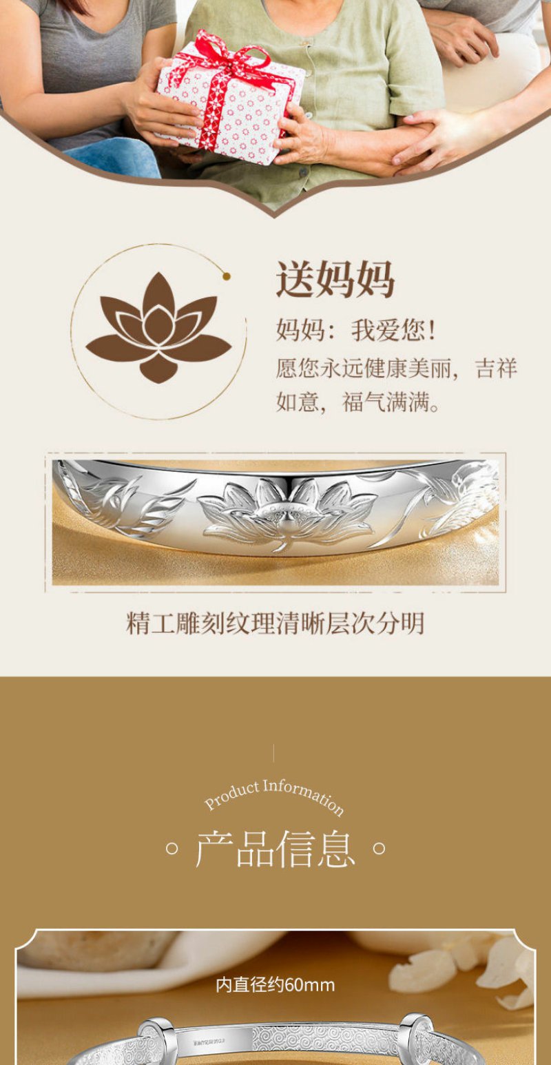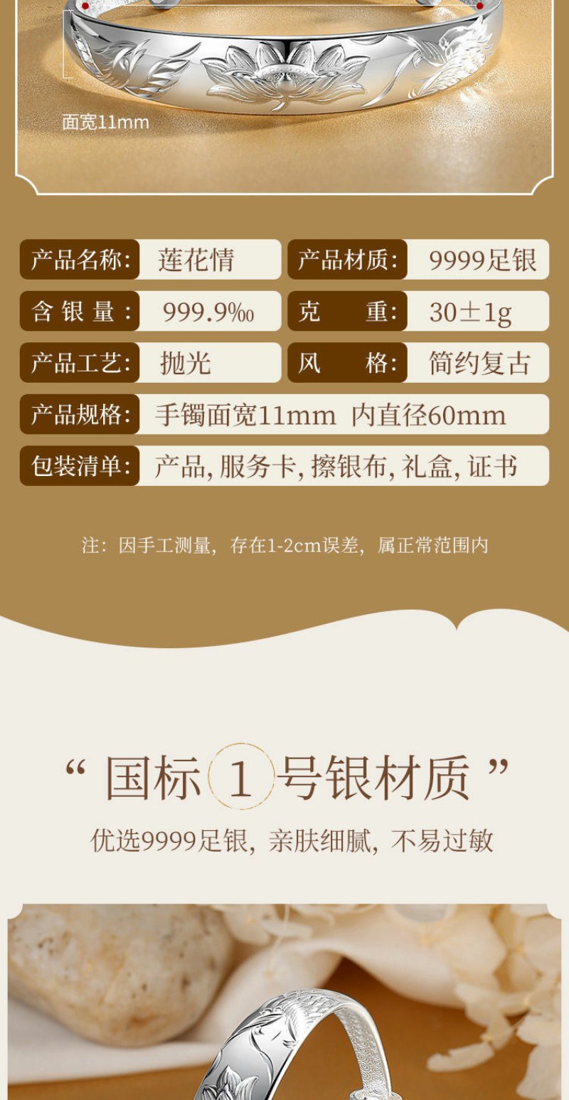 Winy9999足银莲花情手镯送女友闺蜜节日生日礼物