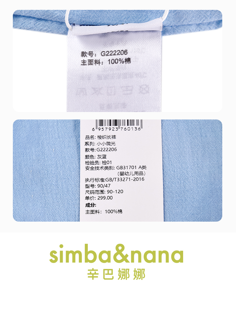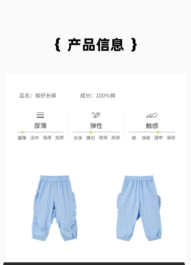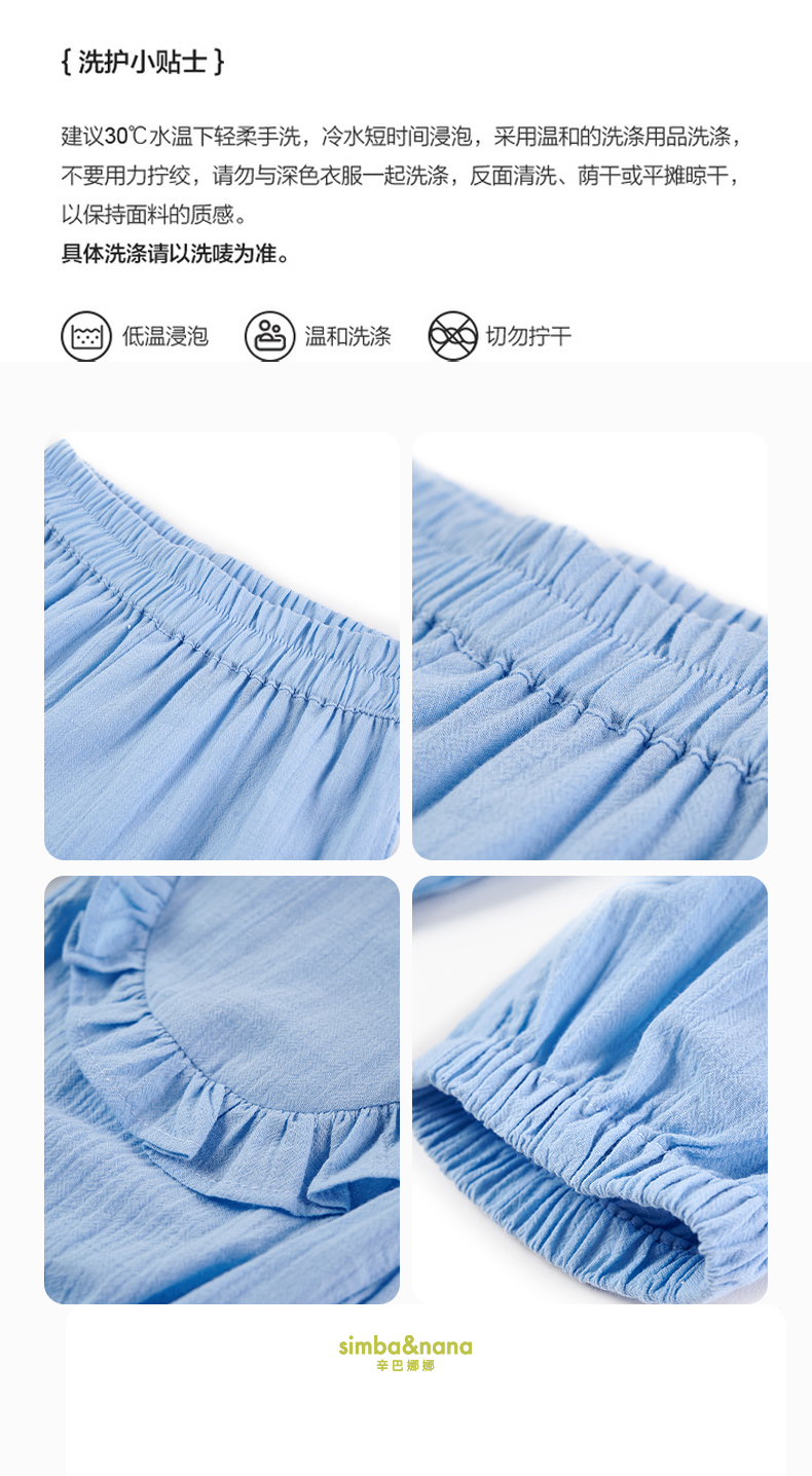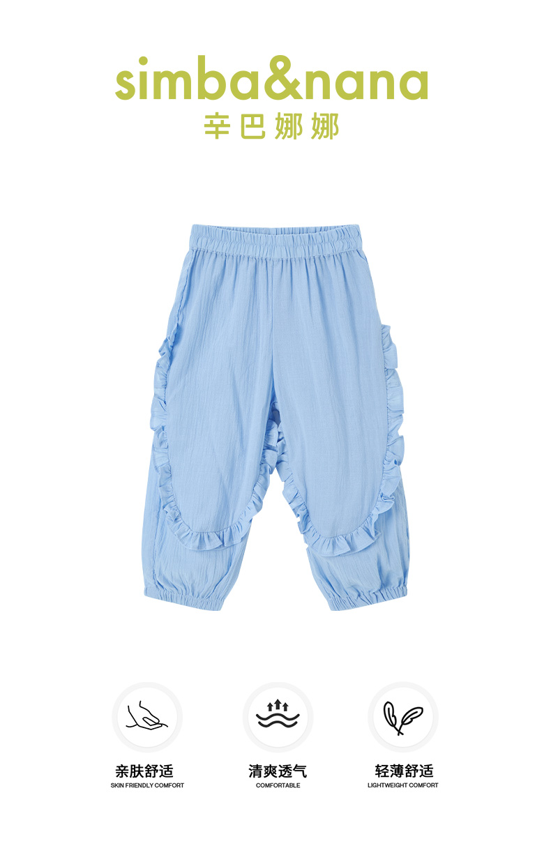 【辛巴娜娜】simbanana女宝夏季裤子洋气时尚百搭花边褶皱休闲百搭束脚防蚊长裤