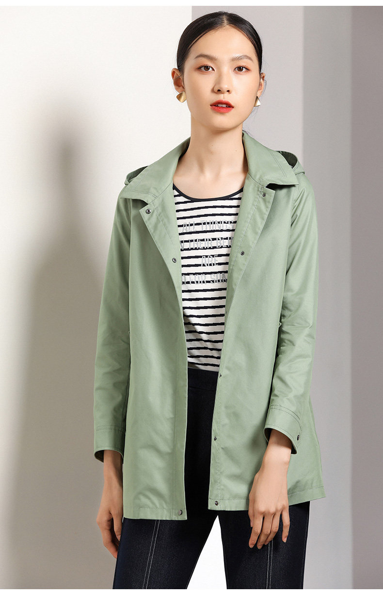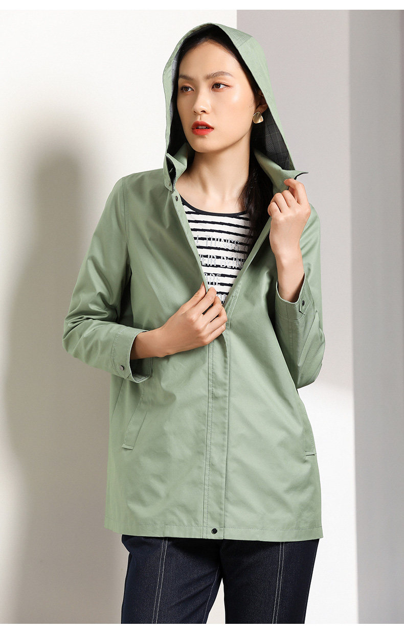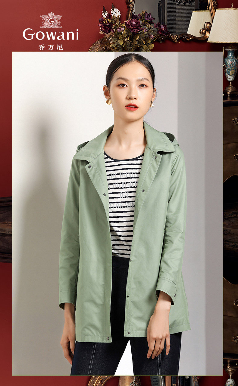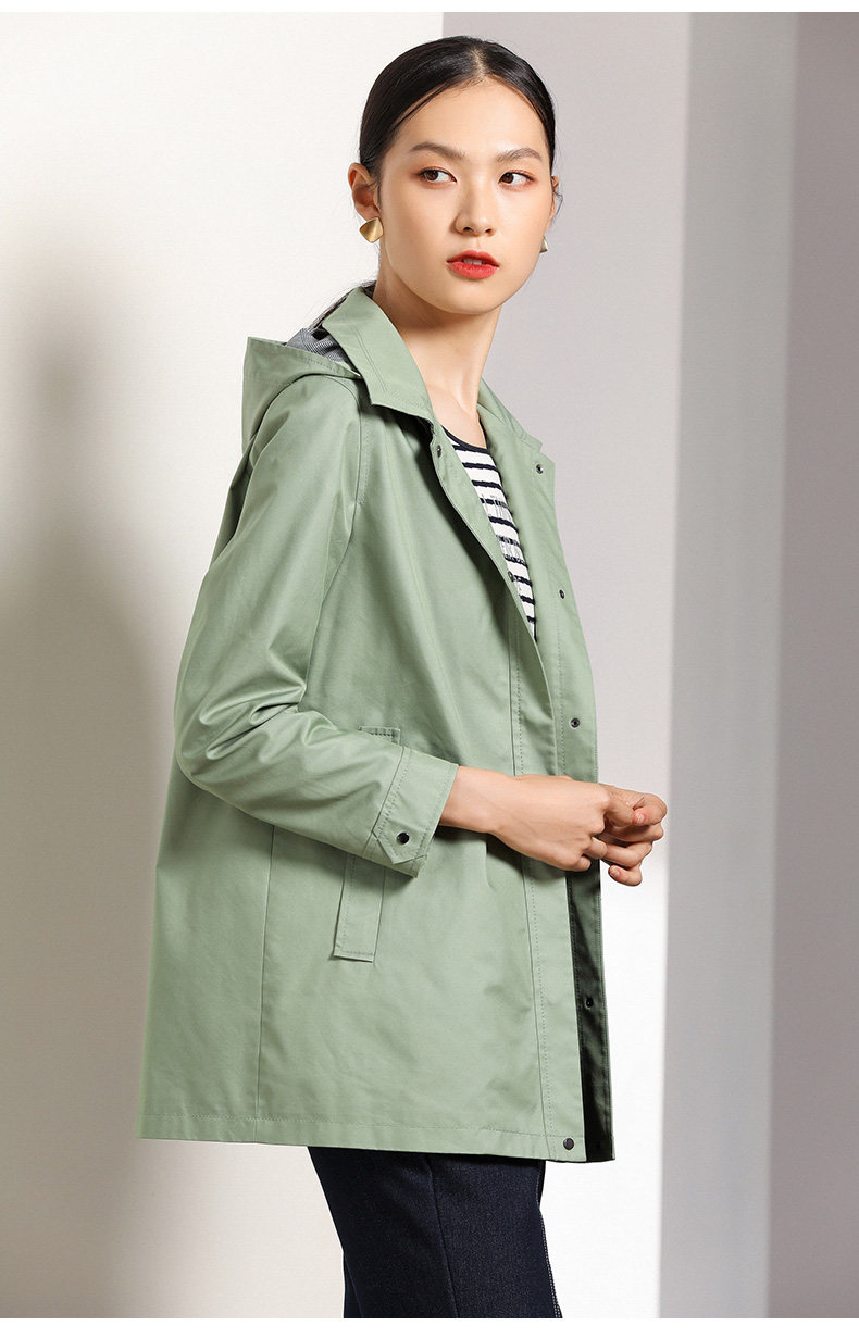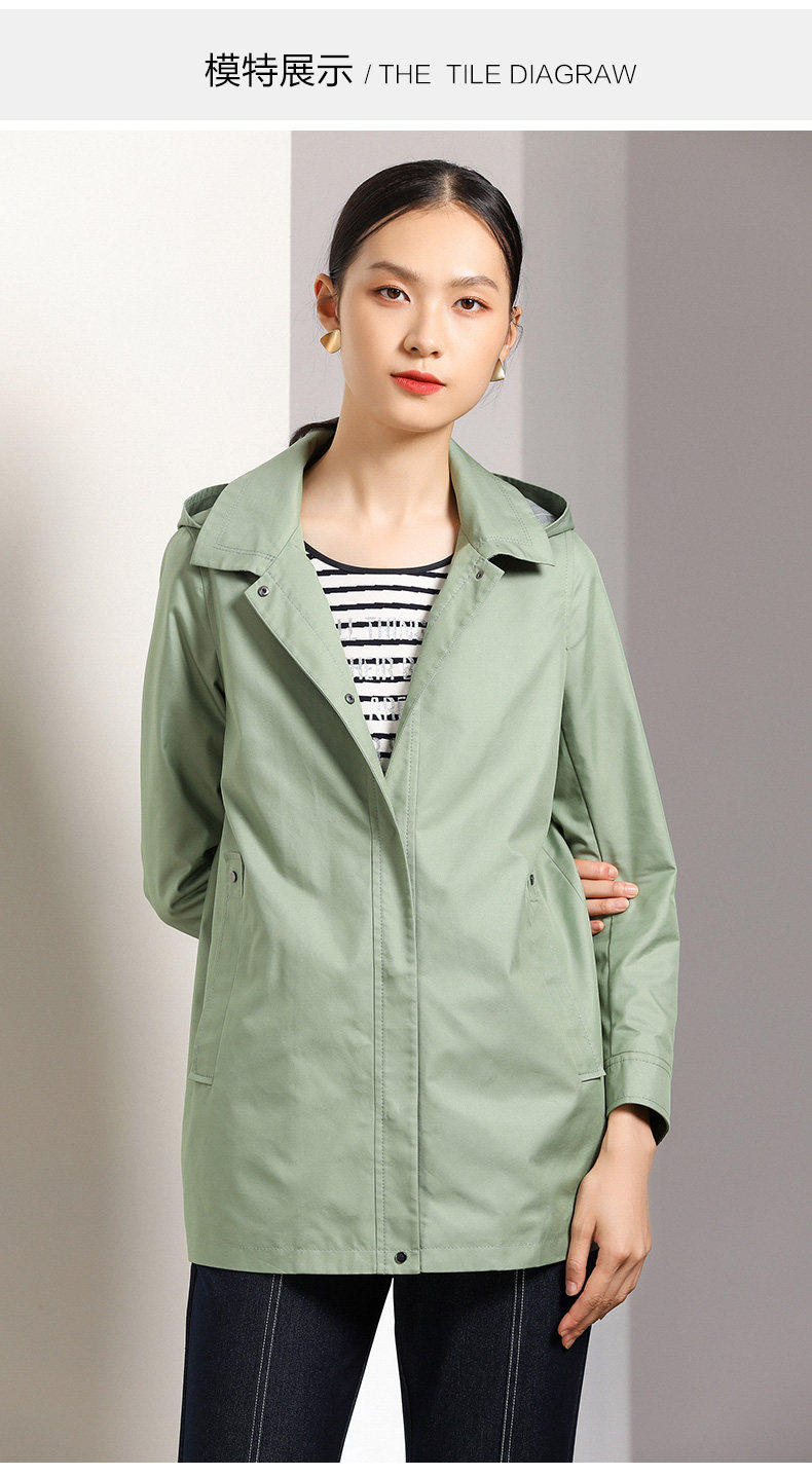 乔万尼秋装女宽松直筒气质简约连帽风衣外套女短款EN3B356