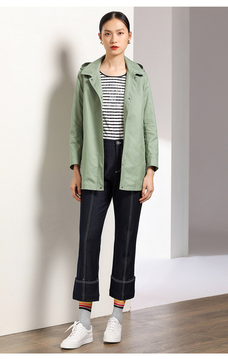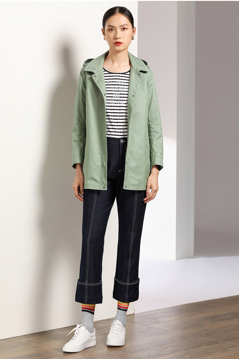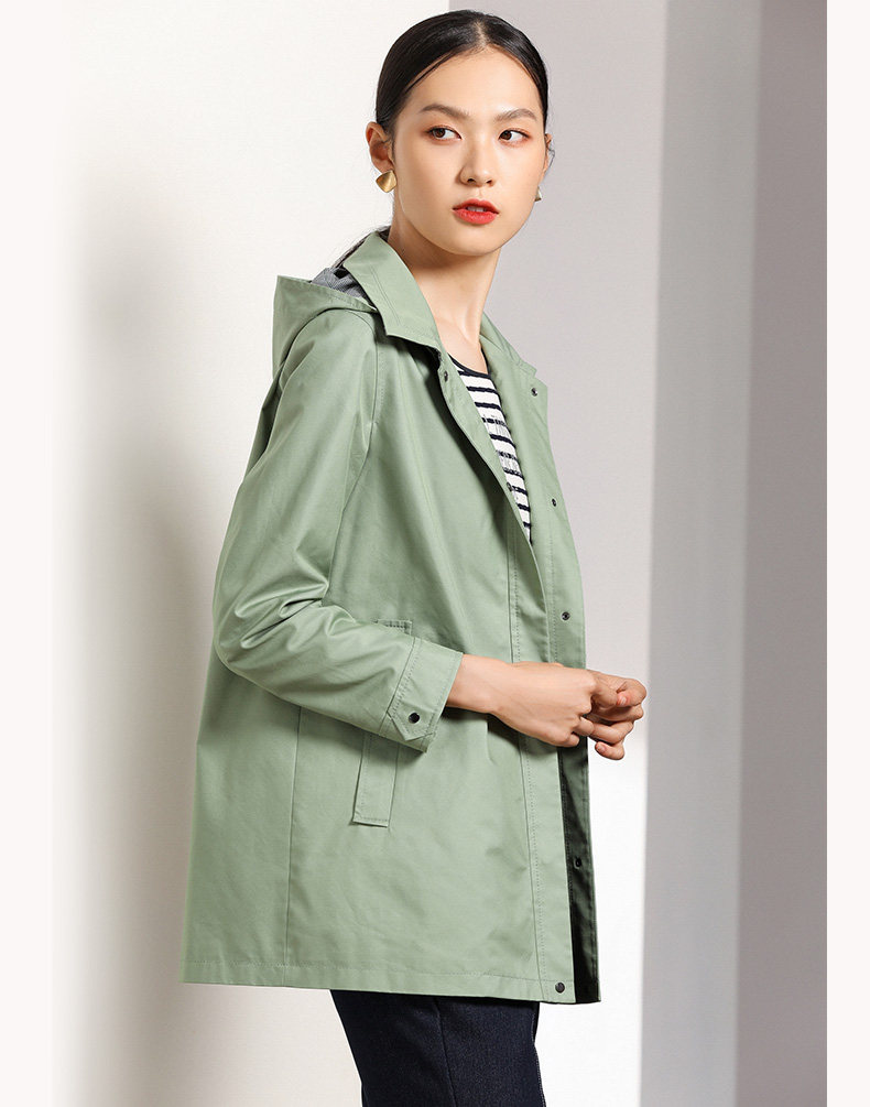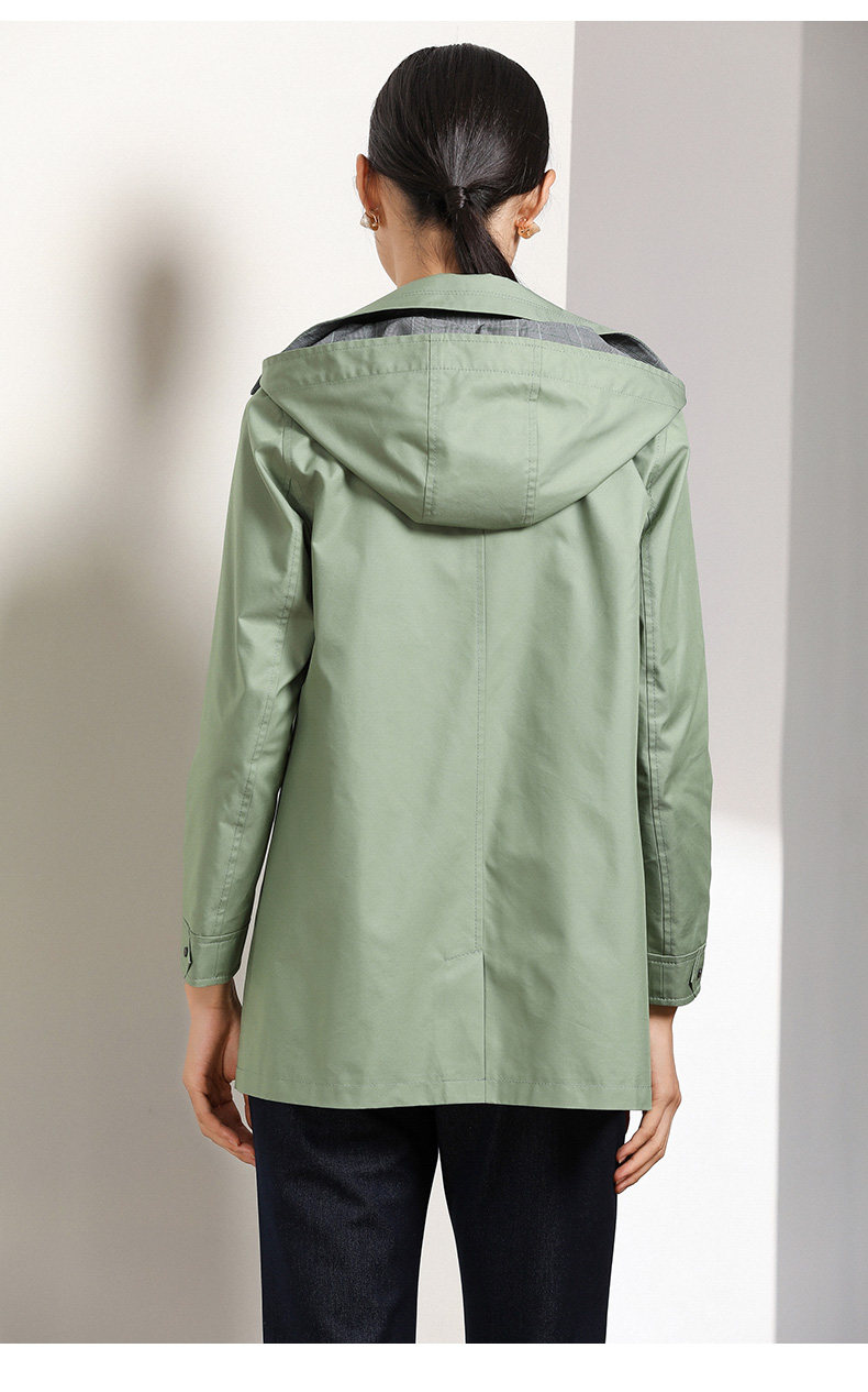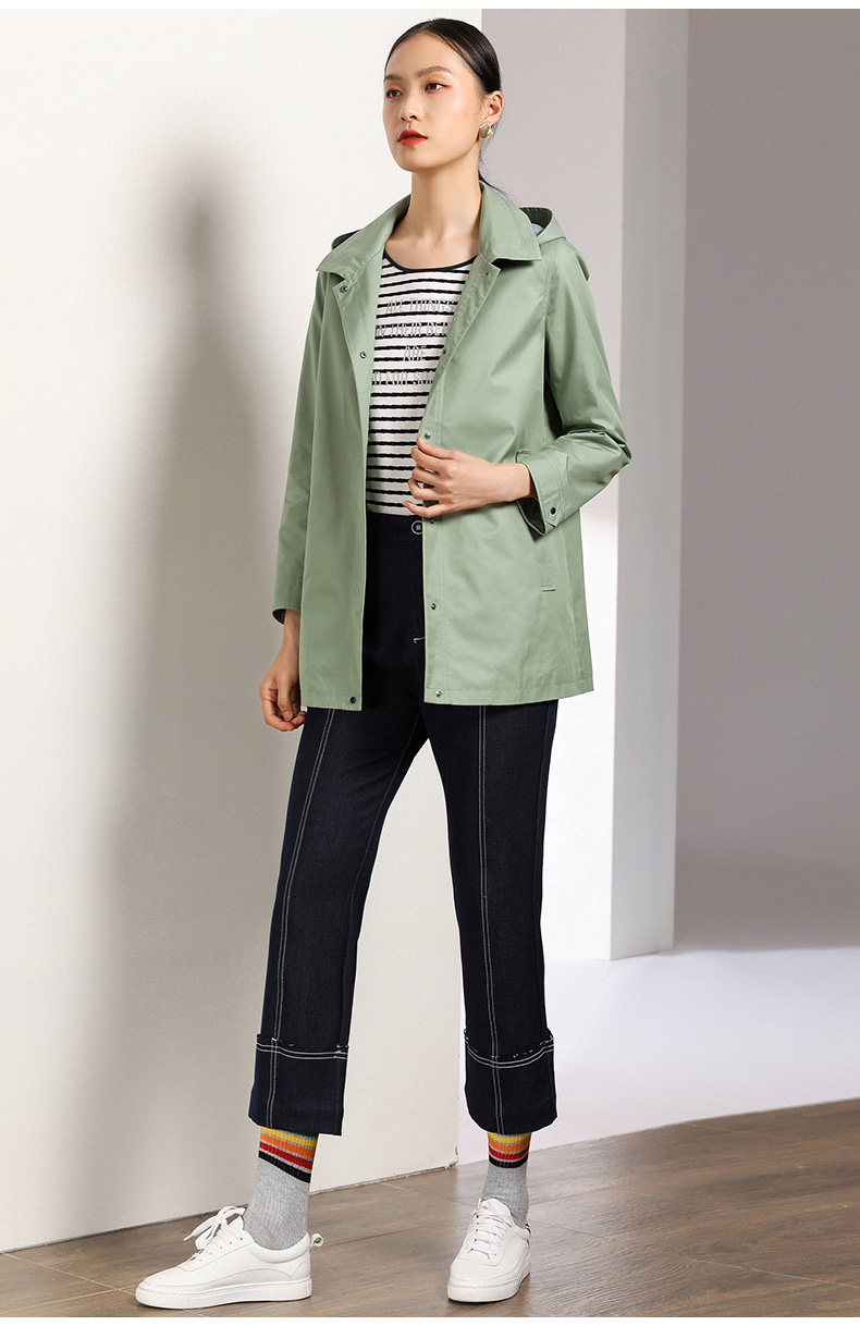 乔万尼秋装女宽松直筒气质简约连帽风衣外套女短款EN3B356