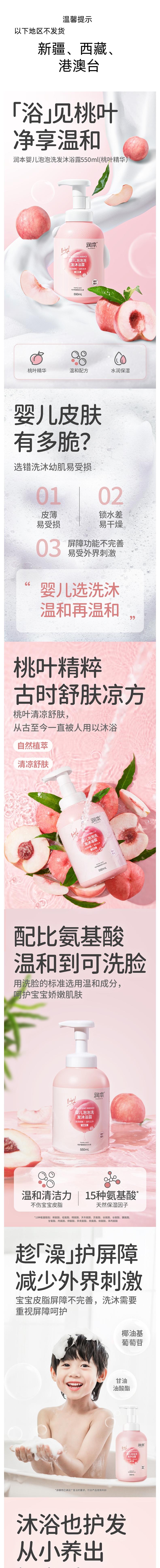 润本 泡泡洗发沐浴露桃叶精华550ml 6971435254662
