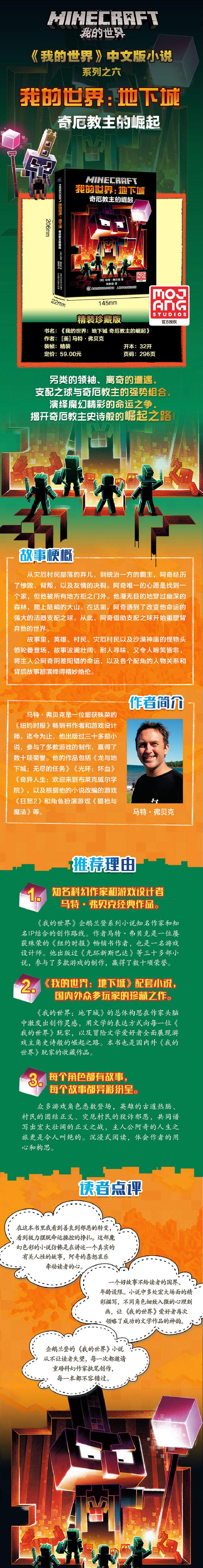 3.《我的世界:地下城》配套小说,众多优秀玩家的珍藏之作。 《我的世界:地下城》的总体构思在作家头脑中激发出创作灵感,用文学的表达方式向每一位《我的世界》玩家,以及冒险文学爱好者全面展现游戏主角史诗般的崛起之路。本书也是《我的世界》玩家的收藏作品。
