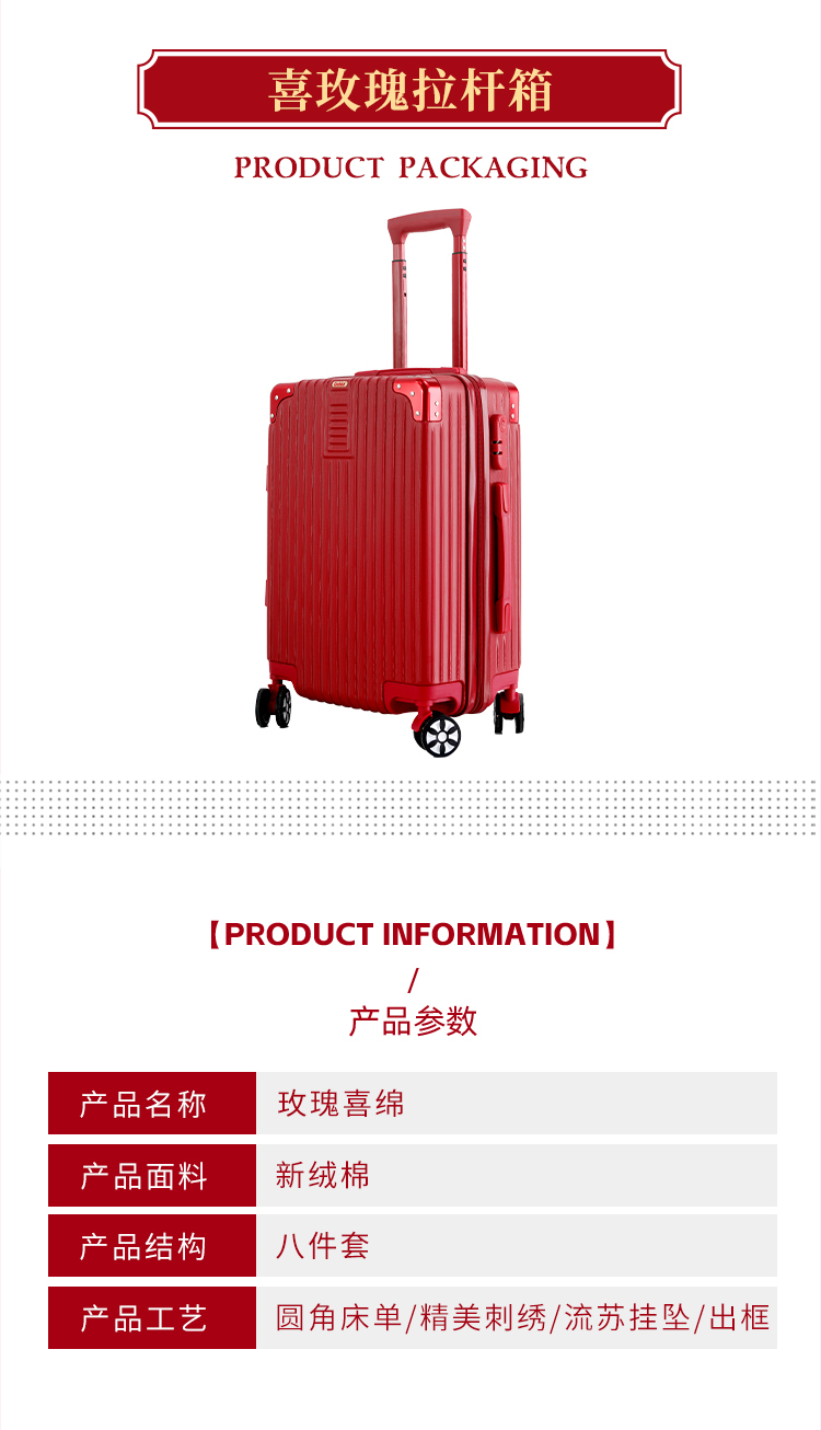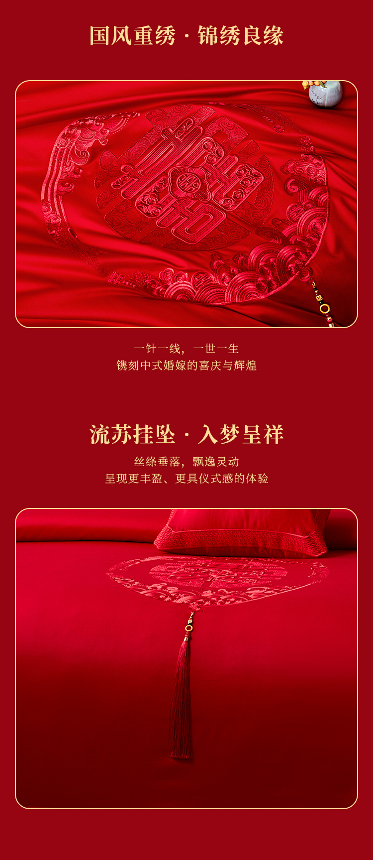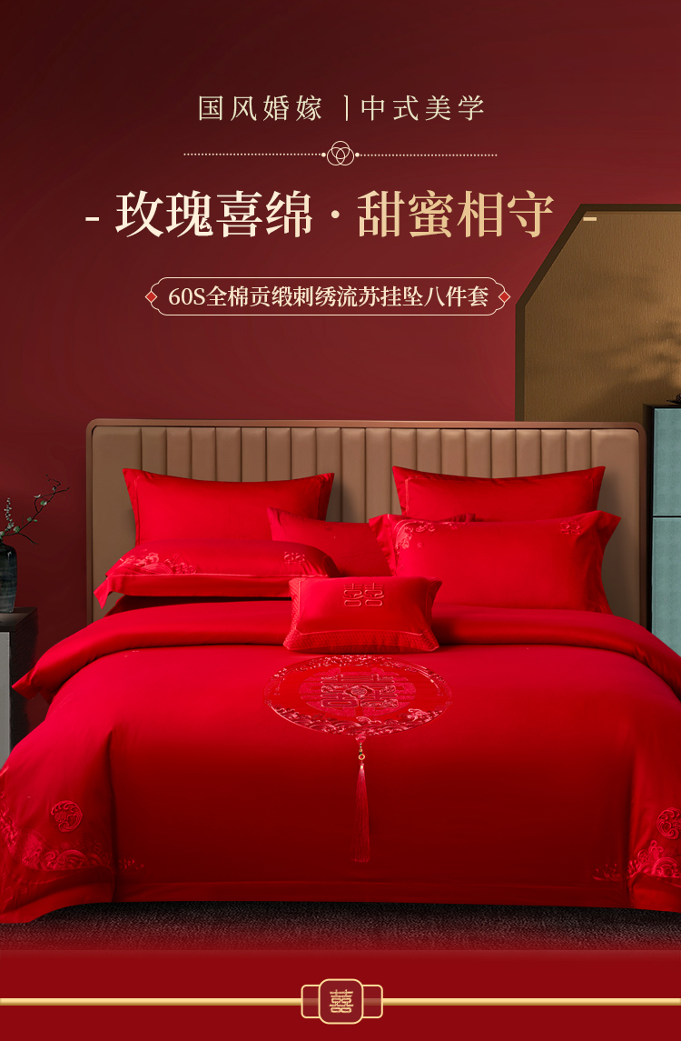 多喜爱 60S全棉贡缎刺绣流苏挂坠婚庆八件套 玫瑰喜绵 cs