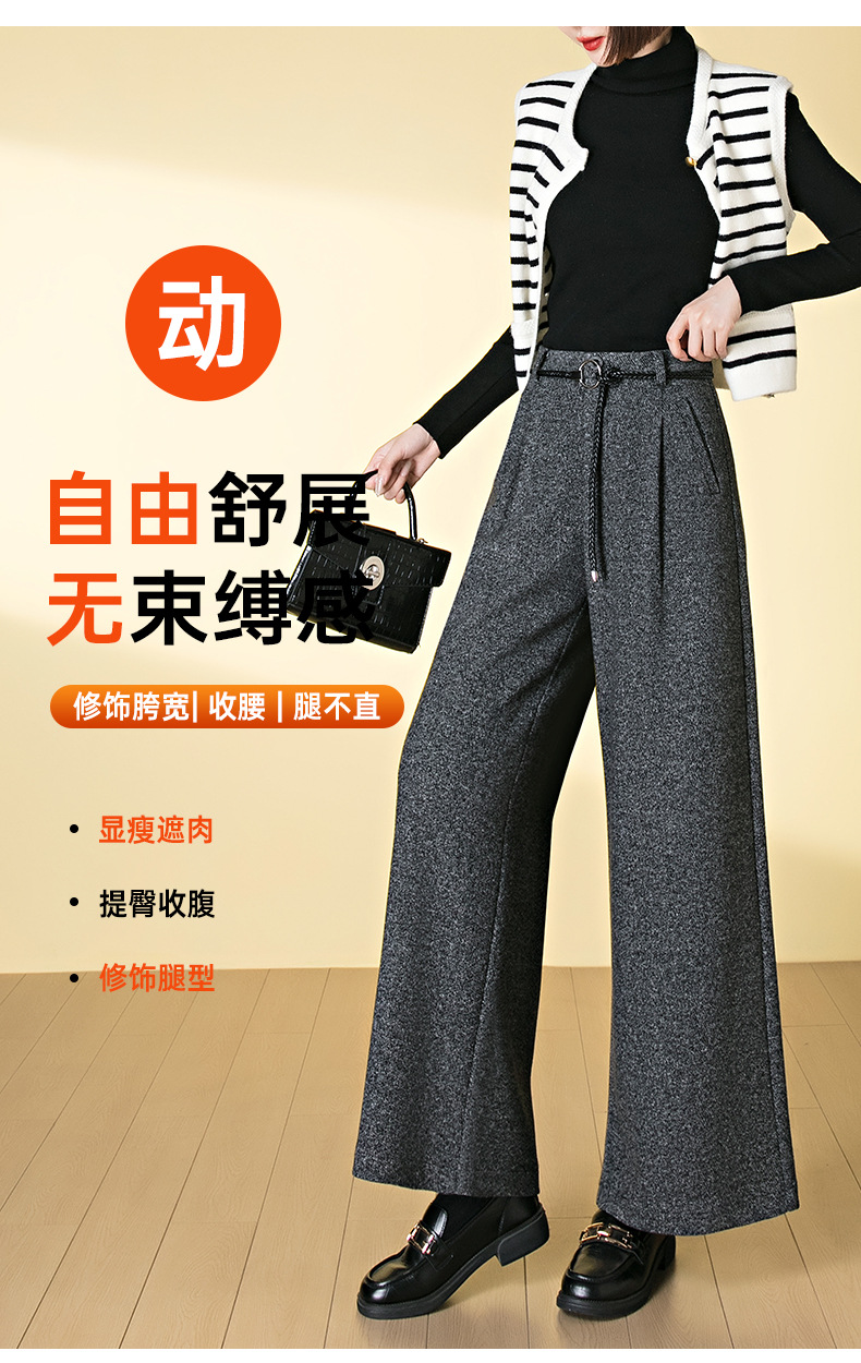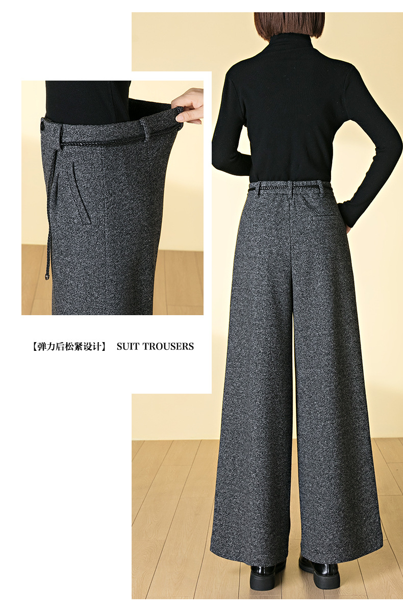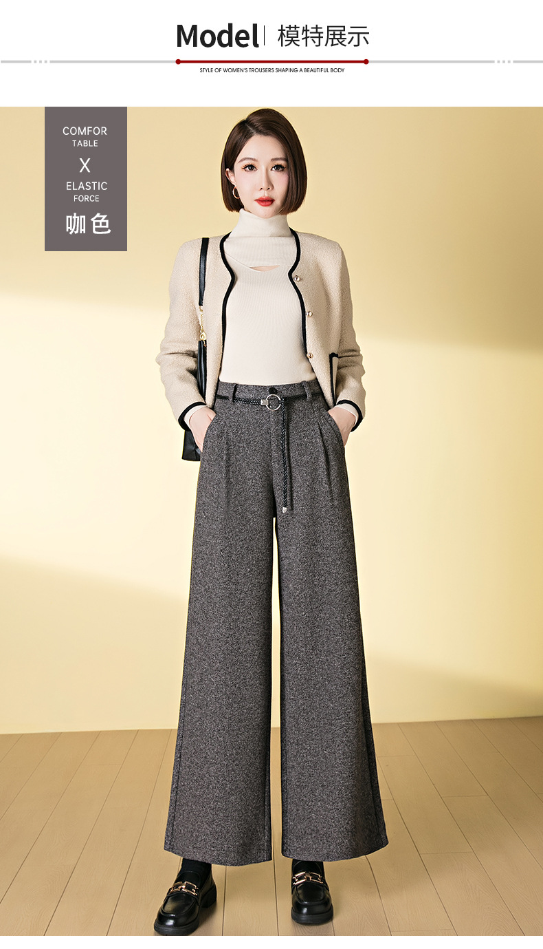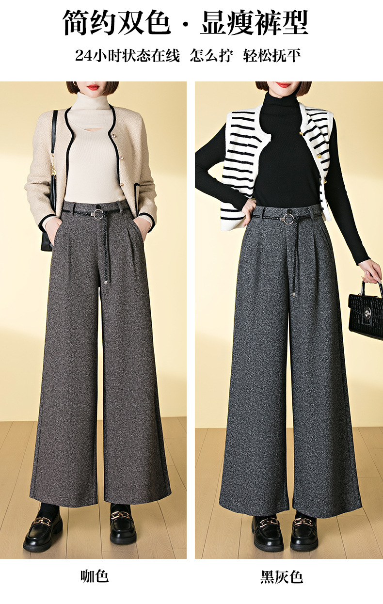 HSS 3071羊毛呢阔腿裤松紧高腰加厚休闲宽松垂感休闲裤