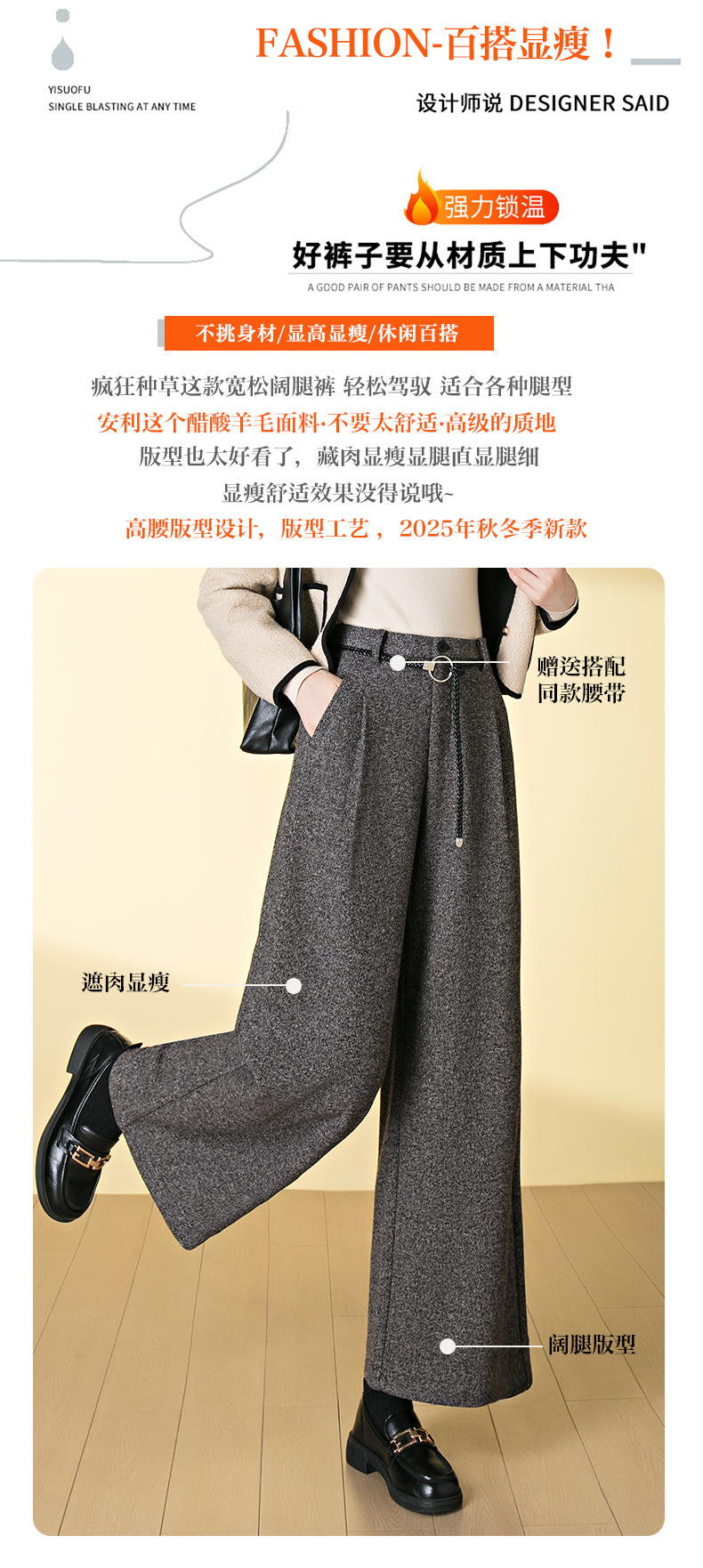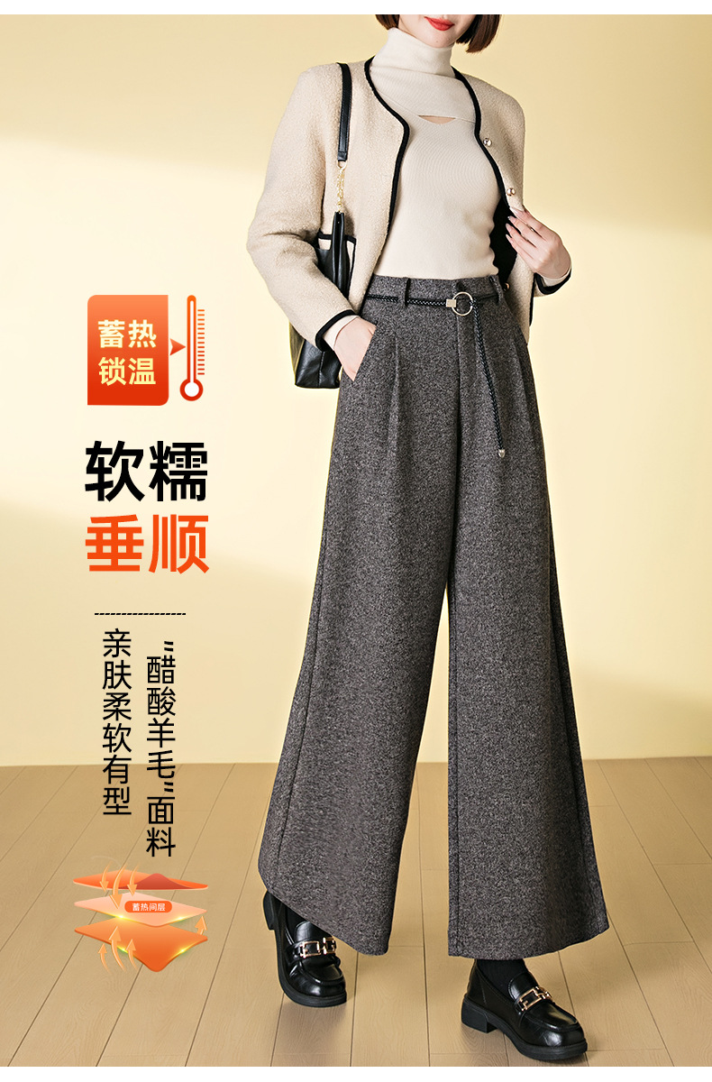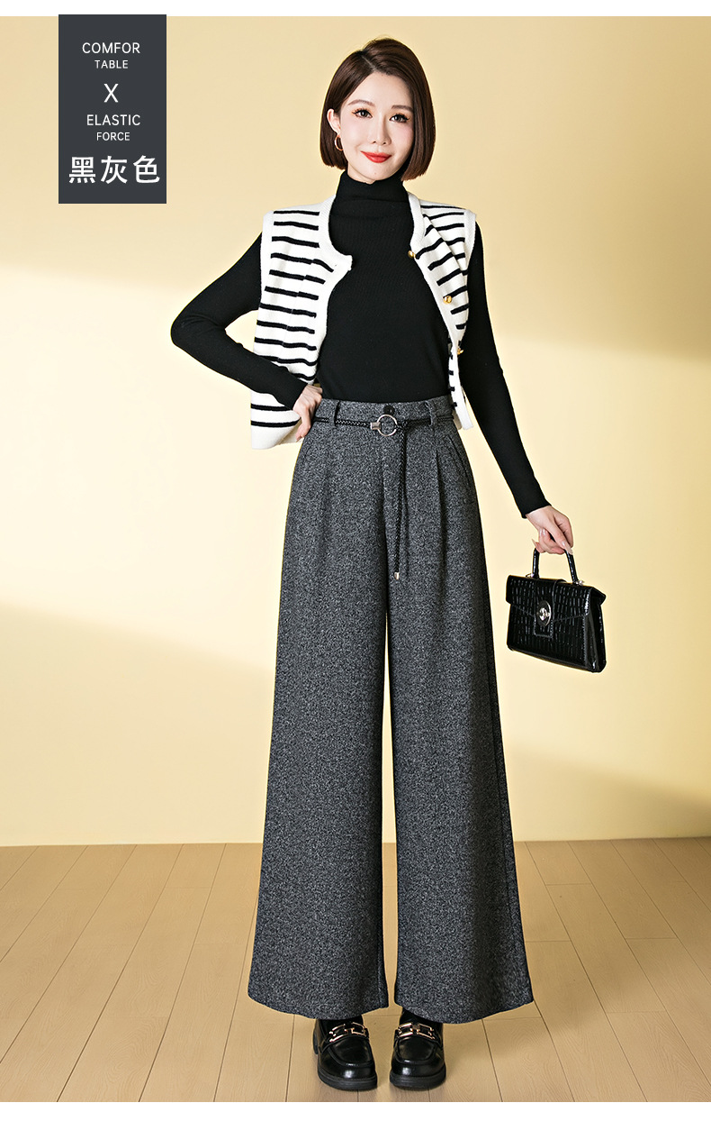 HSS 3071羊毛呢阔腿裤松紧高腰加厚休闲宽松垂感休闲裤
