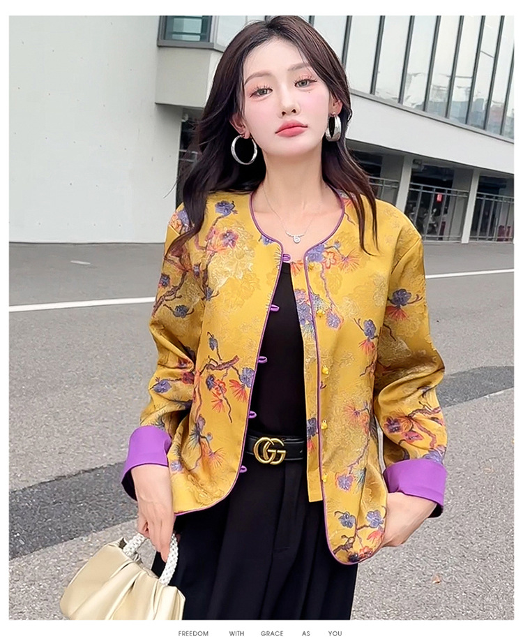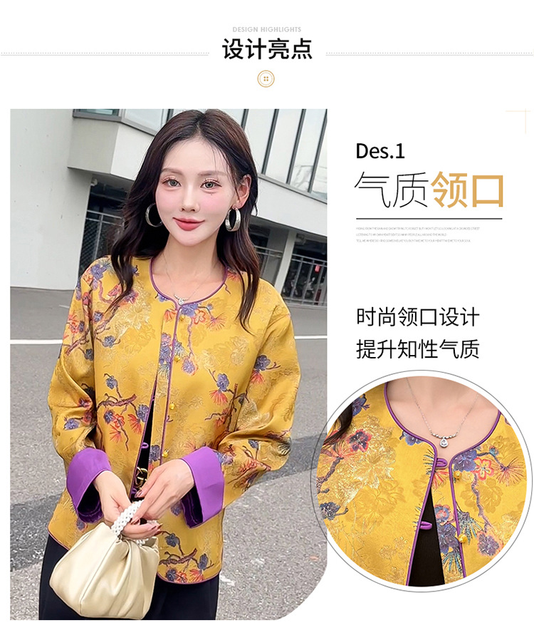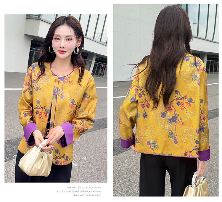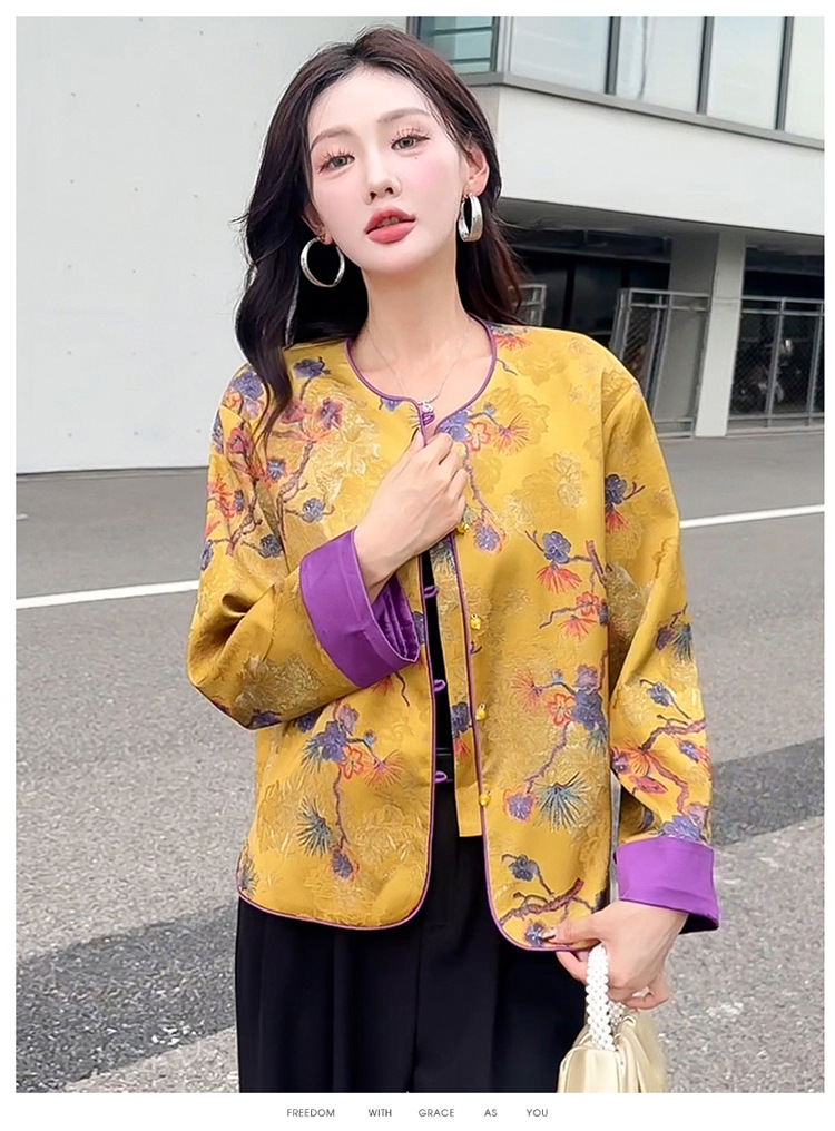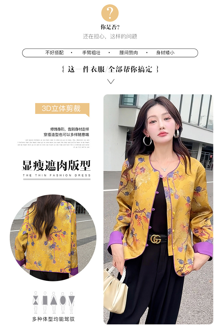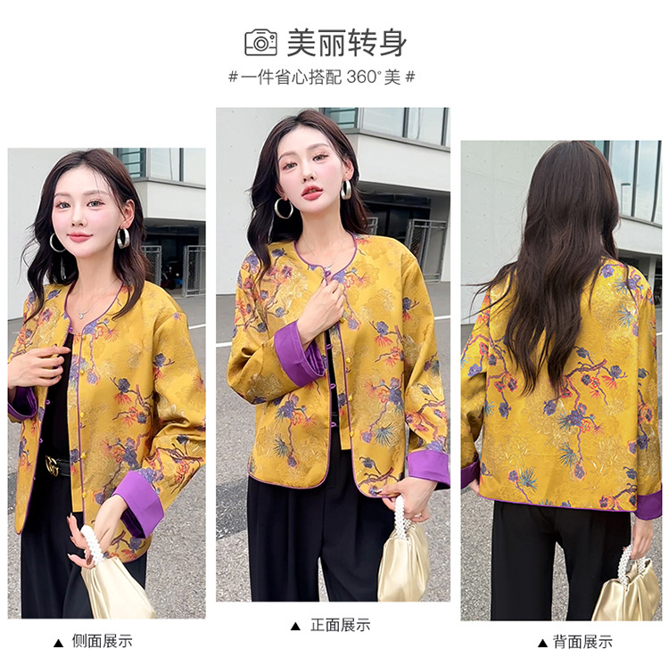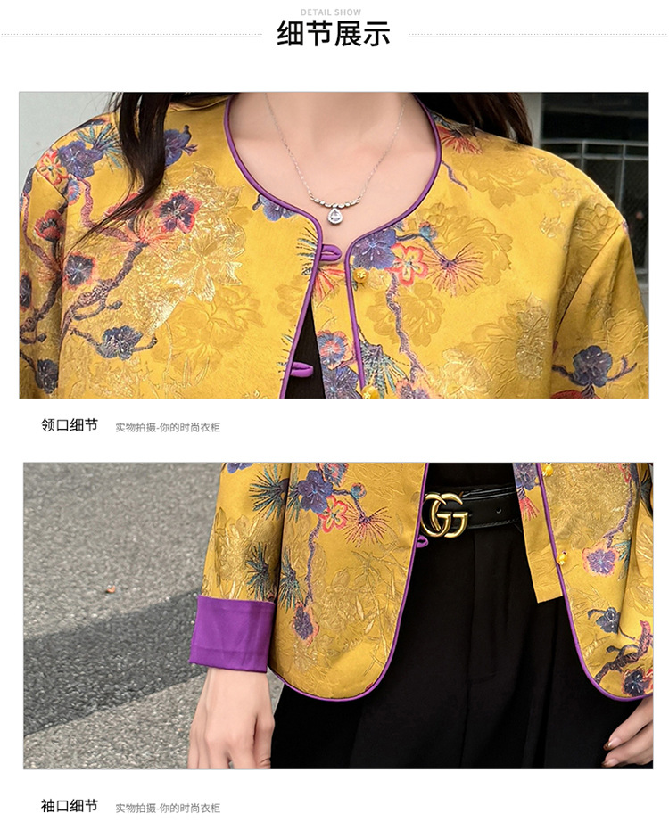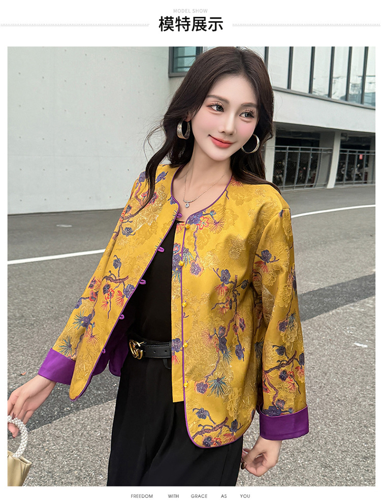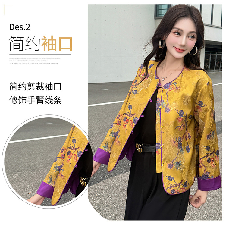 QYM 5962-Y时尚复古外套印花中式国风短款休闲上衣 商品图4