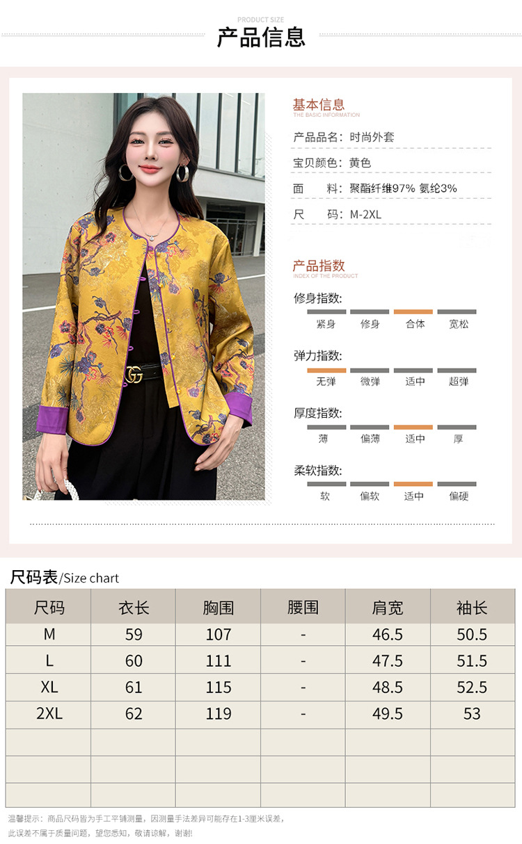 QYM 5962-Y时尚复古外套印花中式国风短款休闲上衣 商品图3
