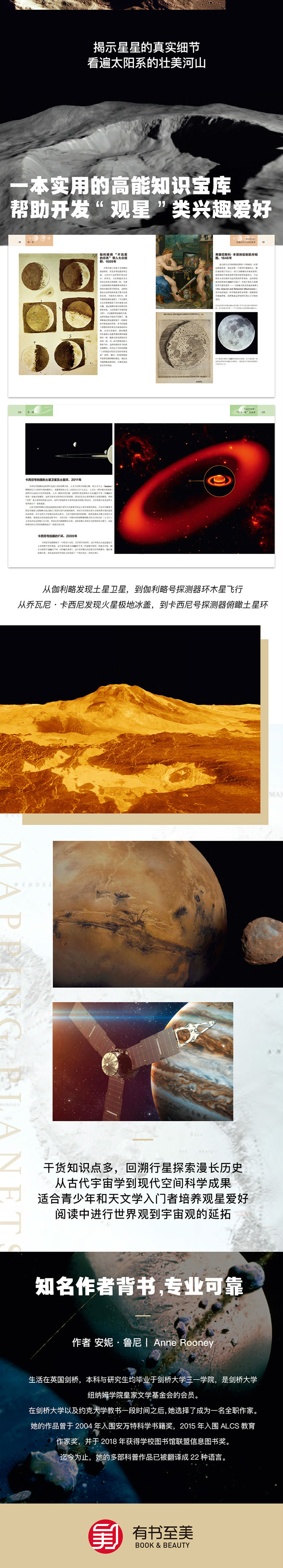 1. 透过200多幅精心编排的地图、手绘插图、精美照片和高分辨率深空影像,融合科学视角、艺术家之眼与孩子般的好奇与想象,图文并茂地展现整个太阳系行星的奇观。