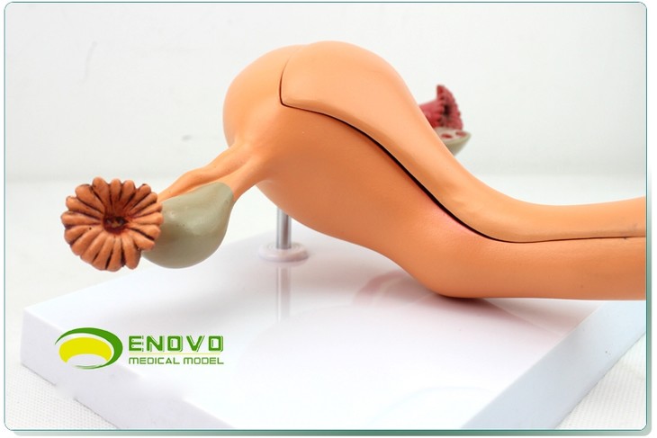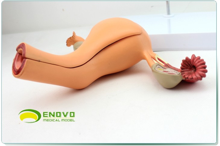 此产品详细的展示了,女性内生殖器的解剖结构,包括包括卵巢、输卵管、子宫、阴道和前庭大腺等,示子宫三层结构,子宫腔阴道示穹隆,左侧示卵巢、输卵管各部 的关系,右侧卵巢剖面示黄体、卵泡、子宫血管及子宫圆韧带等,并且新设计了阴道部分可以分为两部件, 更方便于使用者.是妇科教学不可多得的一款实际应用产品