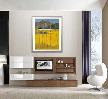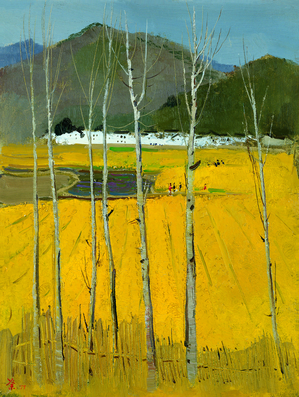 作者以乡野之美为题材,纵横交错的线条与色块构成了主要视觉结构,疏密有致、简练中透露变化的写意笔法勾勒出诗歌般的祖国风景。