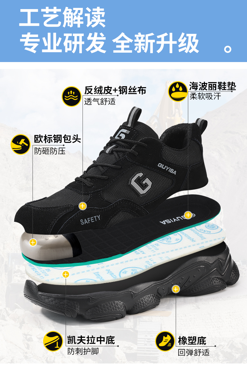 男士劳保鞋四季款防砸防刺穿轻便钢包头安全鞋功能鞋