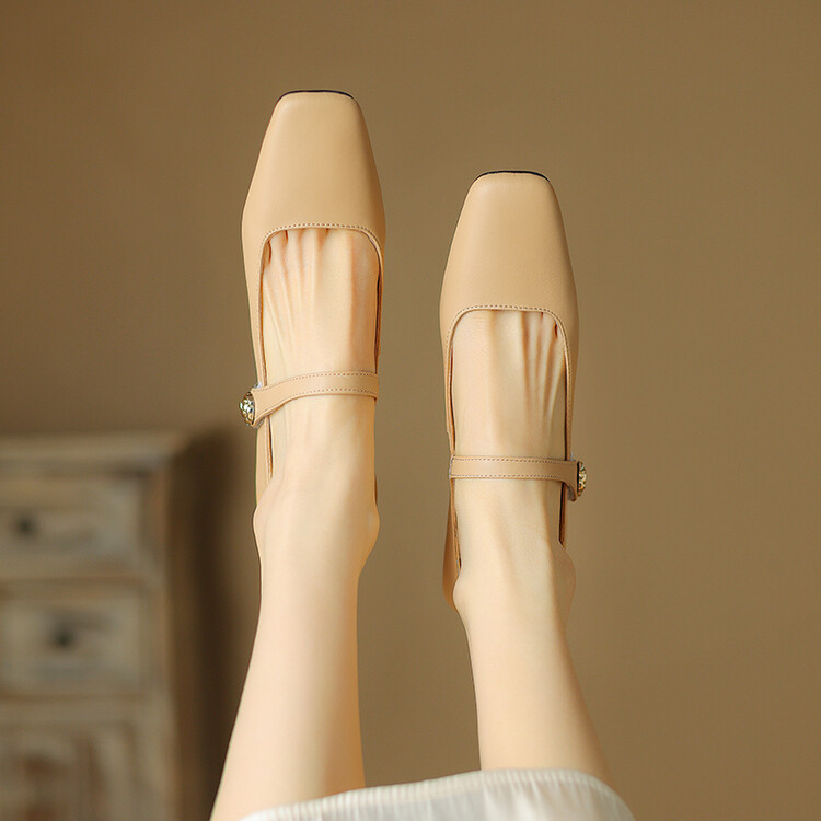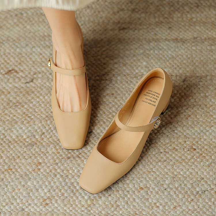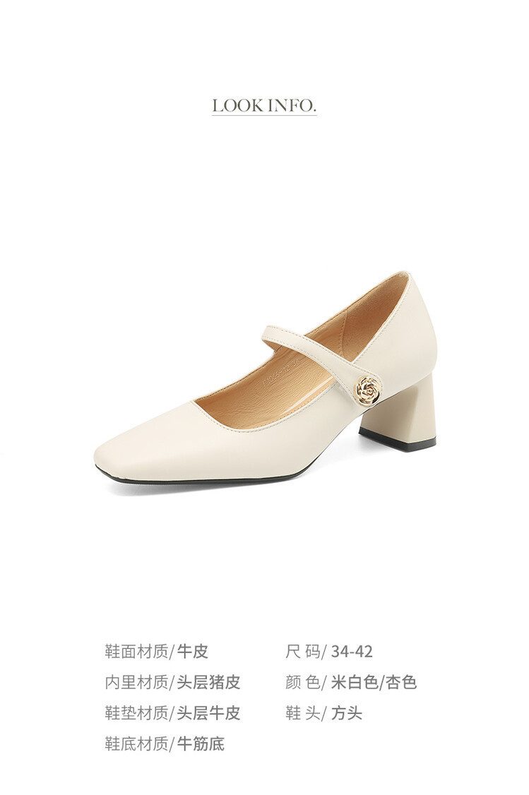 【预售5天】软底舒适柔软四季小皮鞋真皮时装单鞋方头牛筋底牛皮K&F1066-12