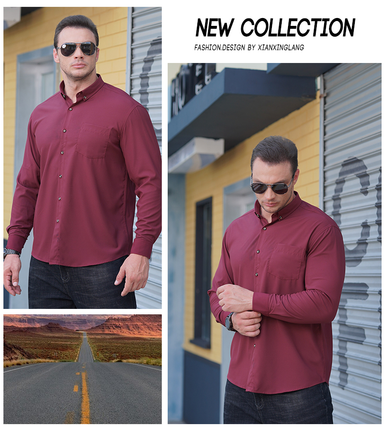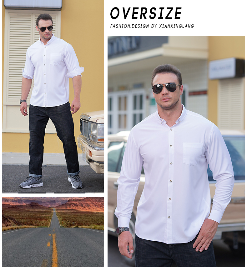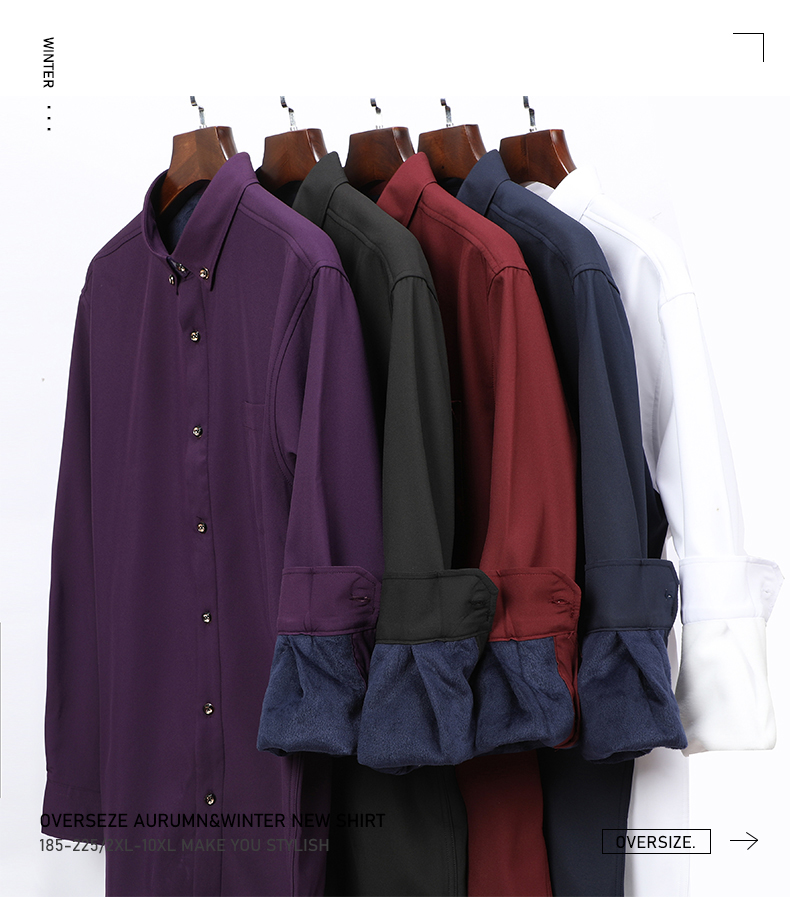 特大码【新款DM】大依优型大码多色加绒长袖衬衫显瘦弹力休闲商务衬衫加肥加大上衣