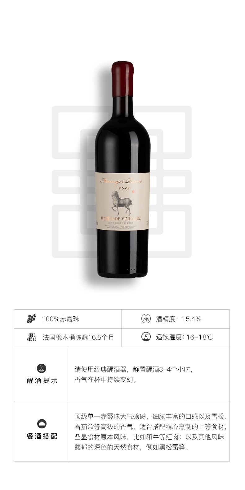嘉地酒园信使干红2019新年份赤霞珠