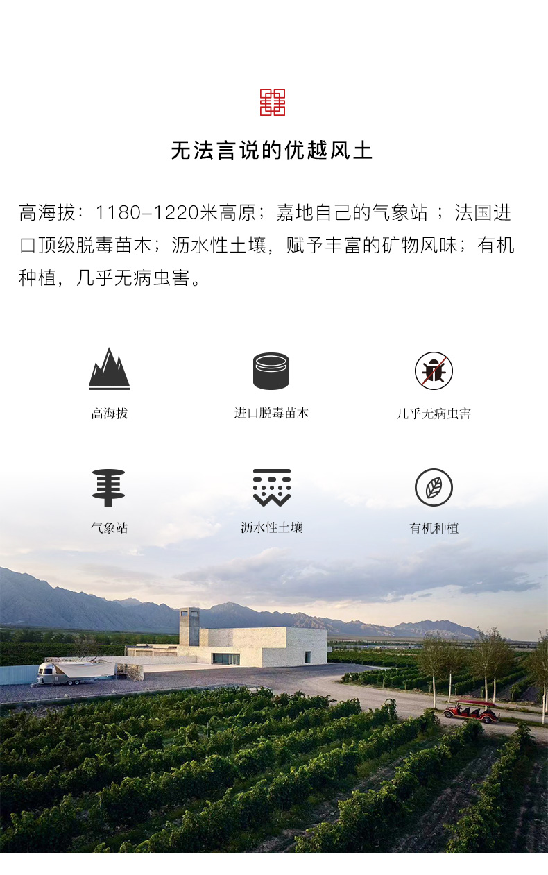- 嘉地酒园,英文名称 Jade Vineyard 寓意一块美玉,坐落在银川贺兰山东麓。作为中国新兴精品酒庄,怀揣着要做中国顶级葡萄酒的梦想。