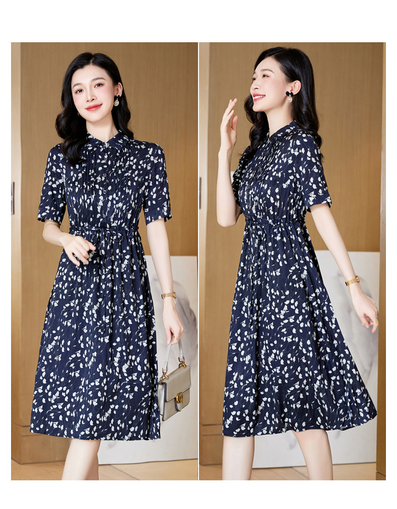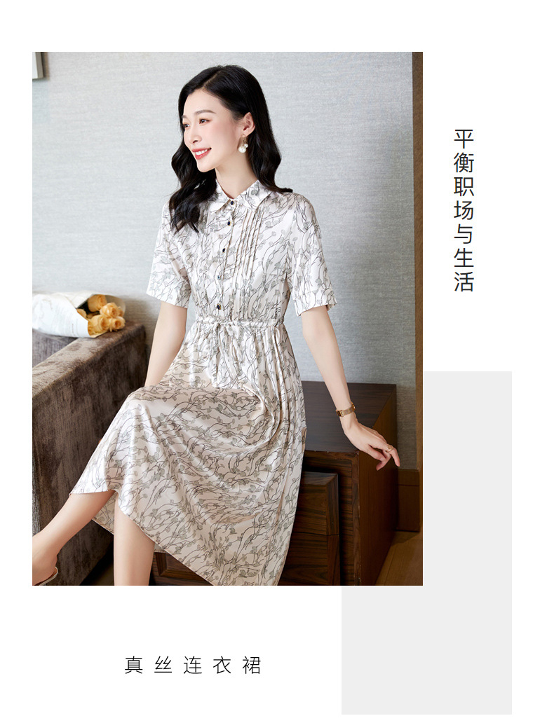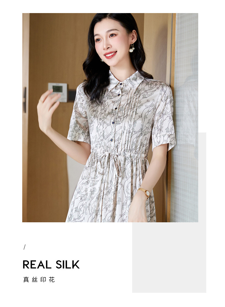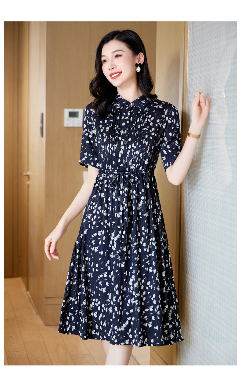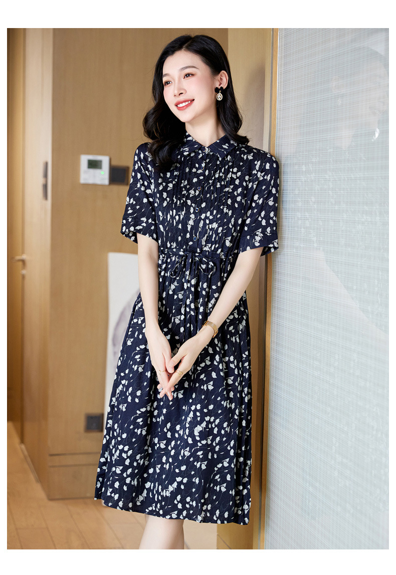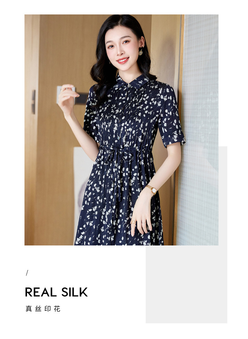 ASE 2307真丝连衣裙桑蚕丝妈妈气质碎花衬衫裙
