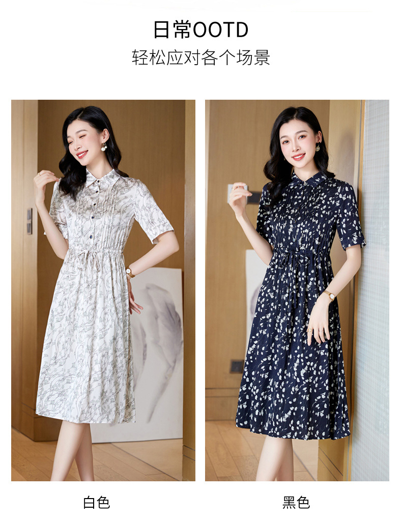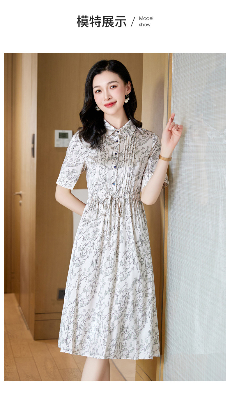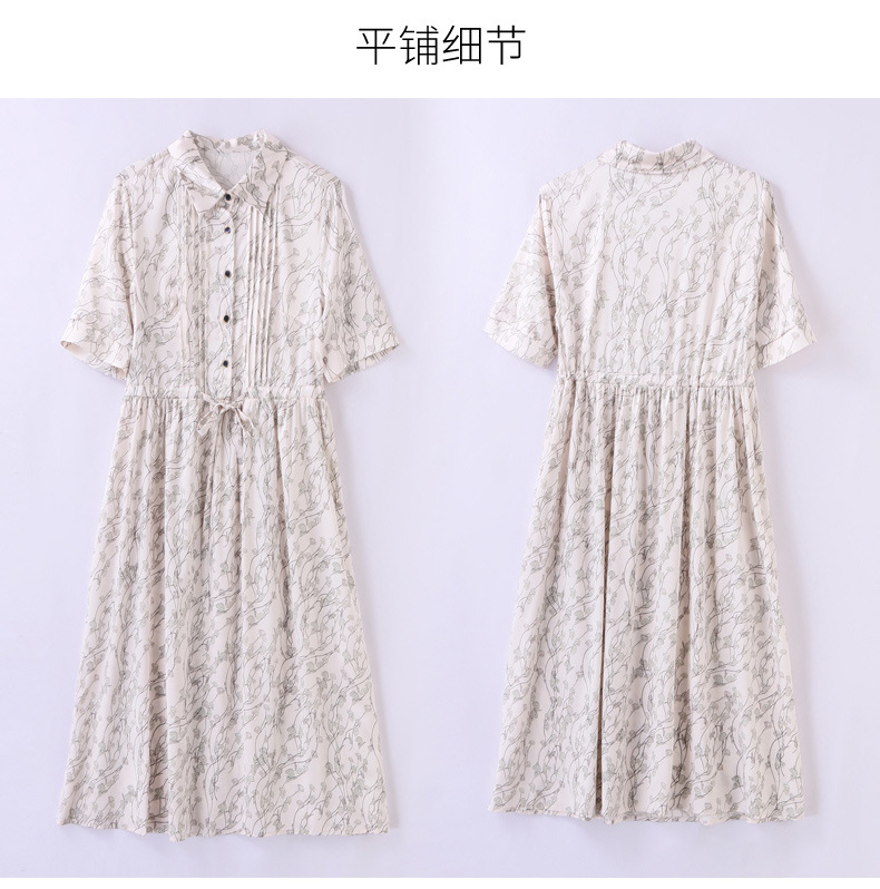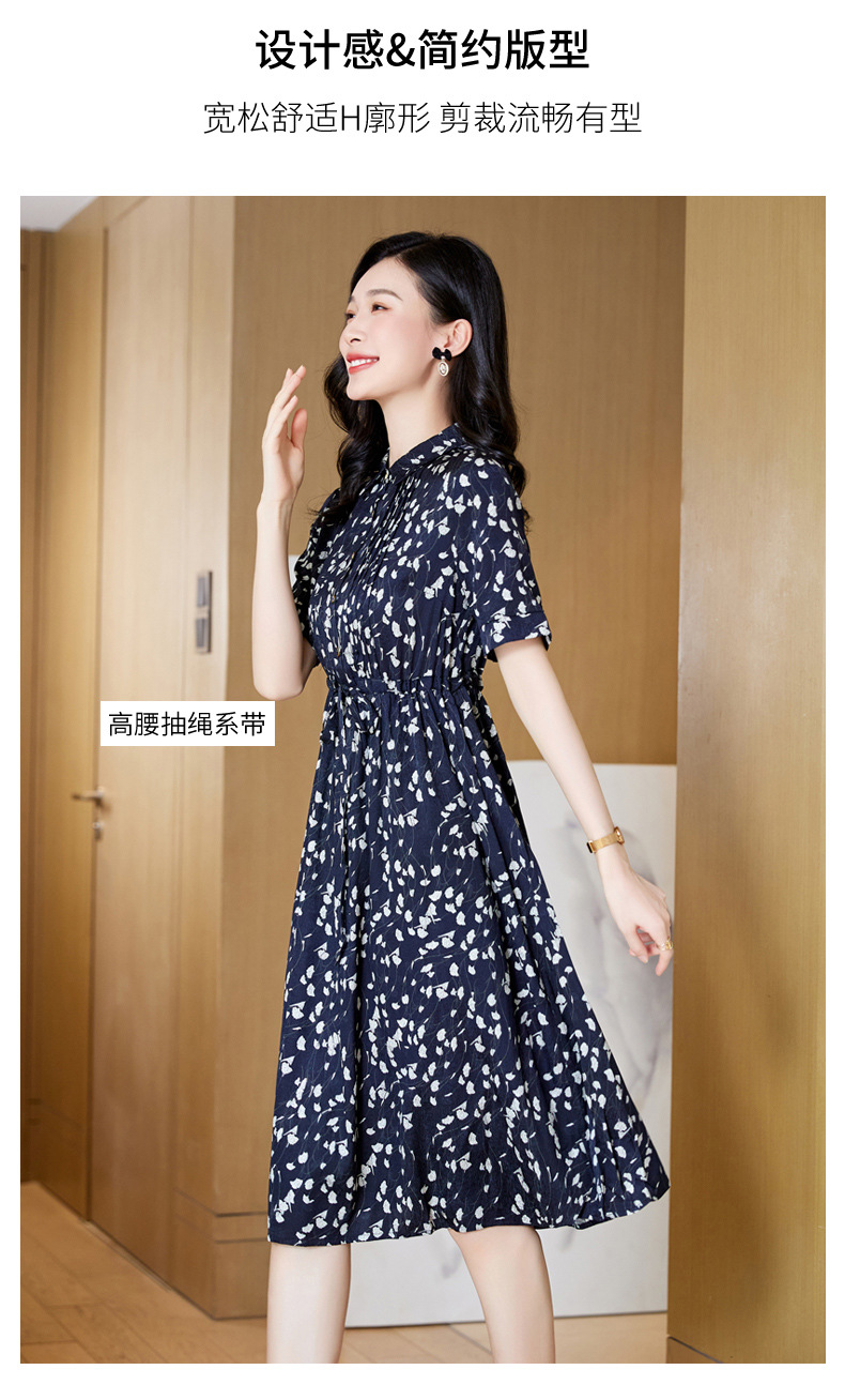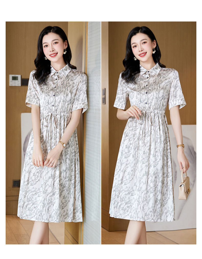 ASE 2307真丝连衣裙桑蚕丝妈妈气质碎花衬衫裙