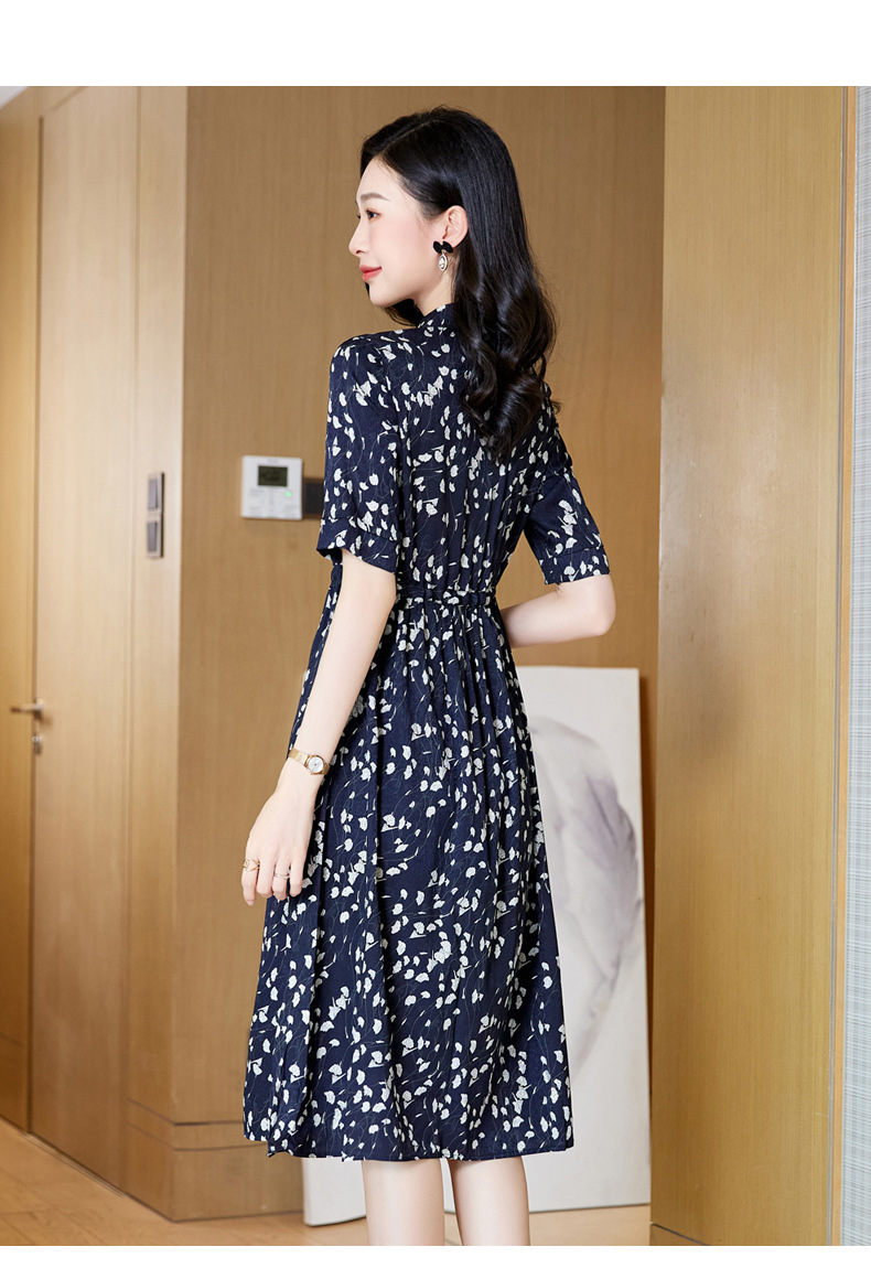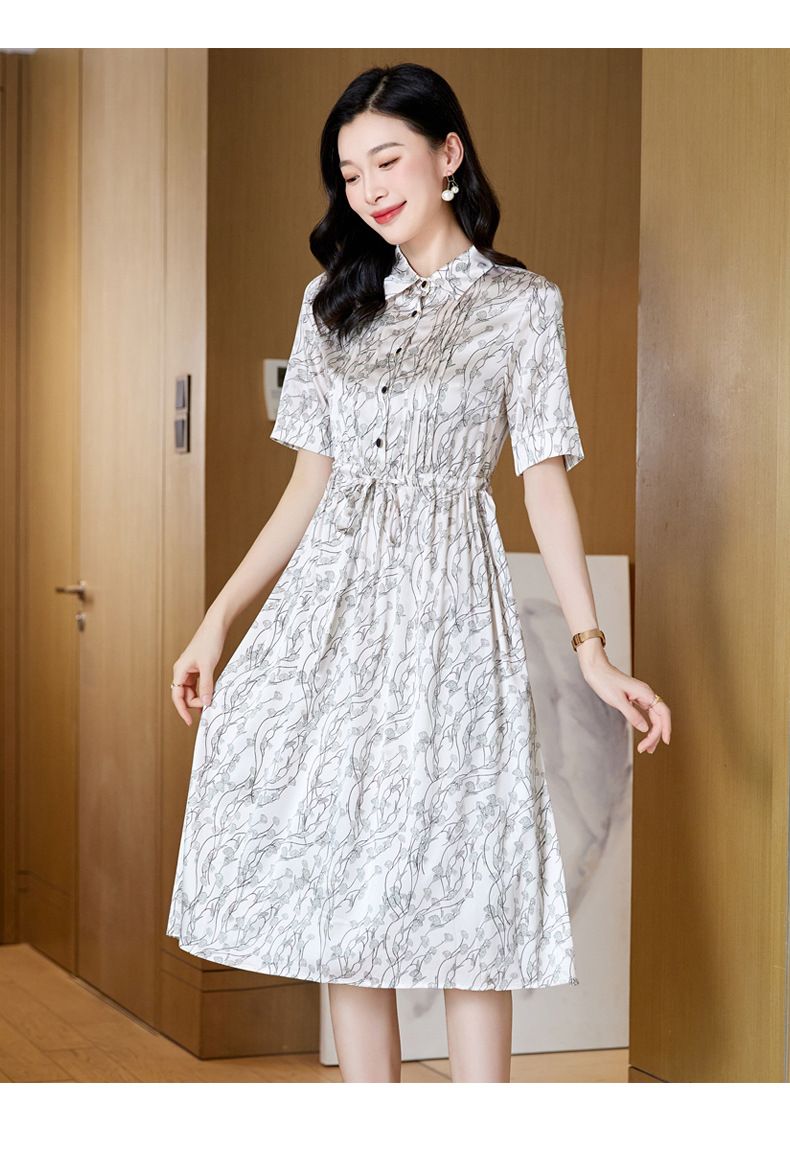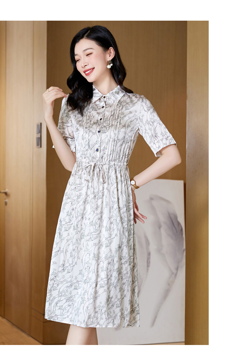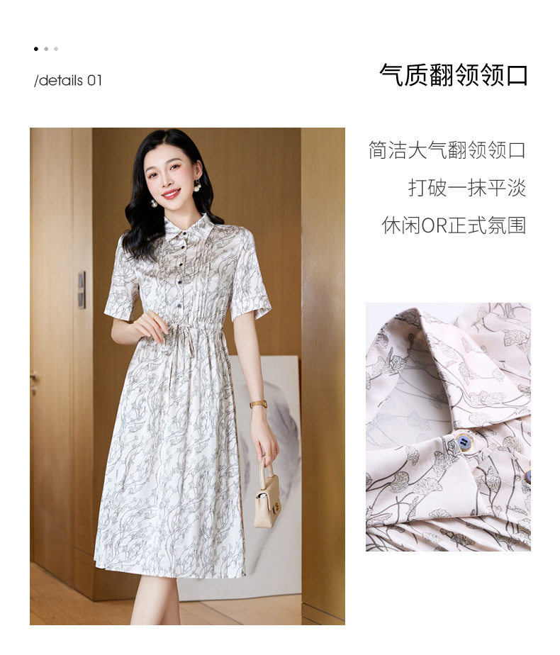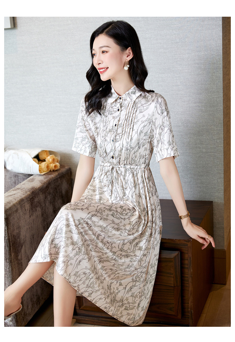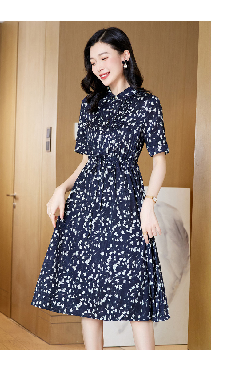 ASE 2307真丝连衣裙桑蚕丝妈妈气质碎花衬衫裙