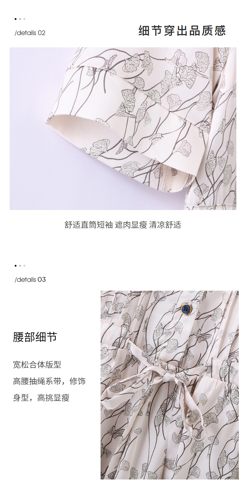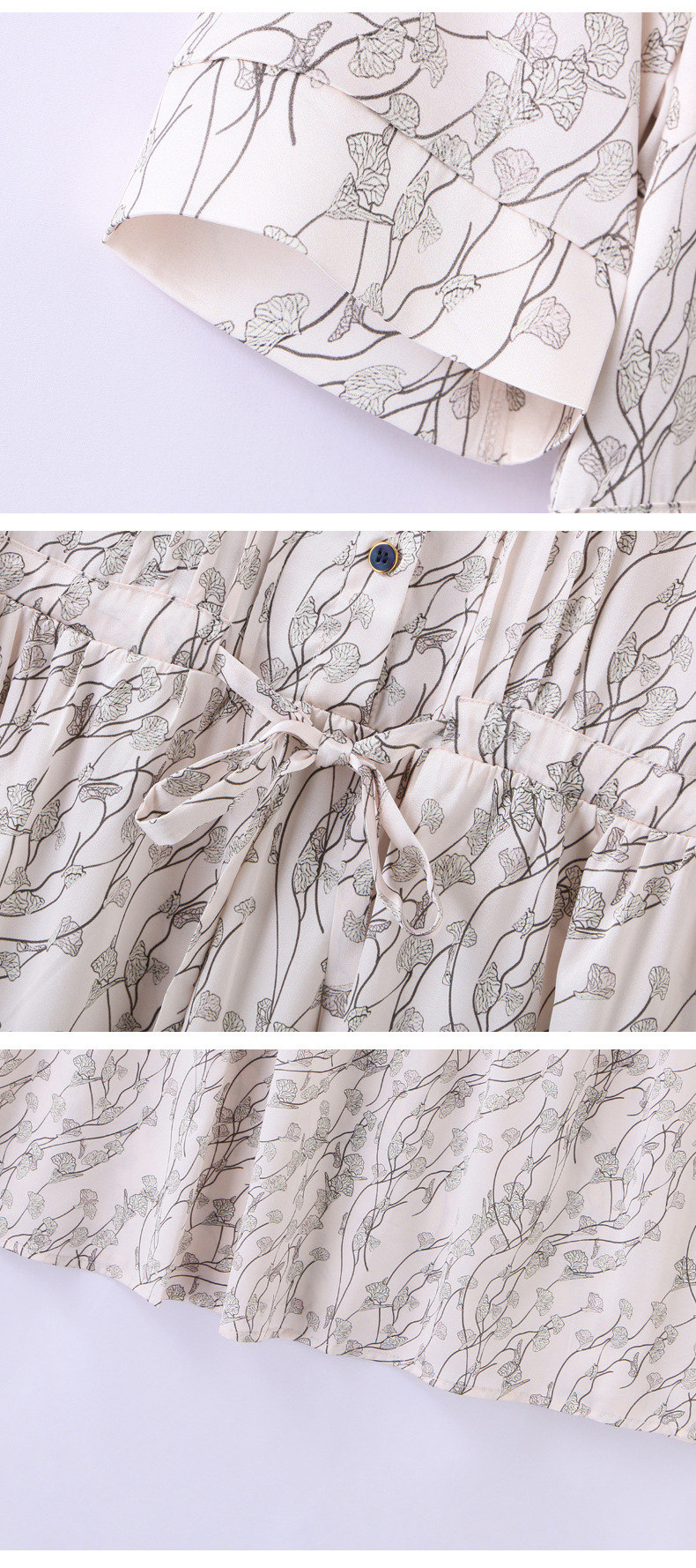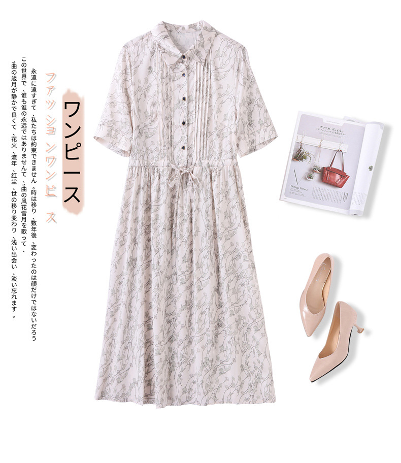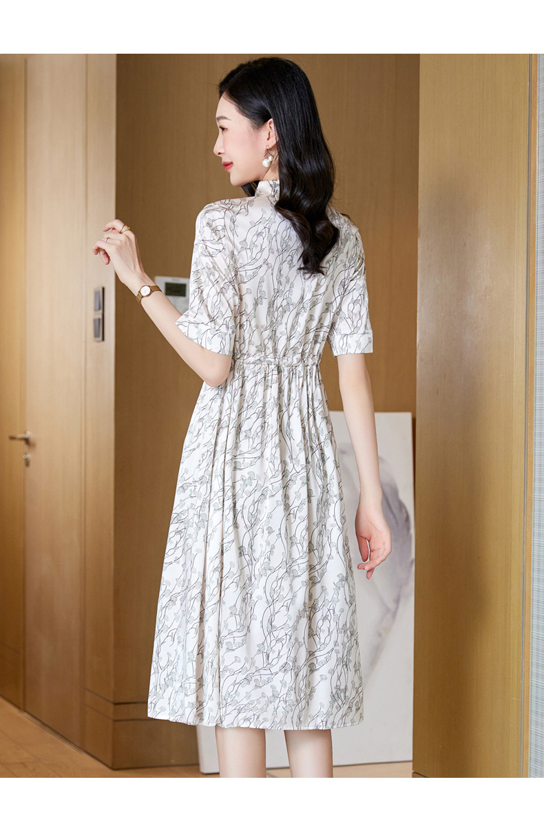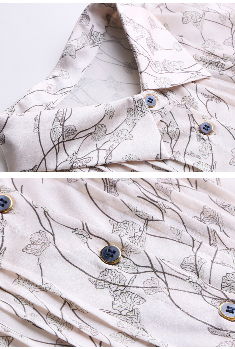 ASE 2307真丝连衣裙桑蚕丝妈妈气质碎花衬衫裙
