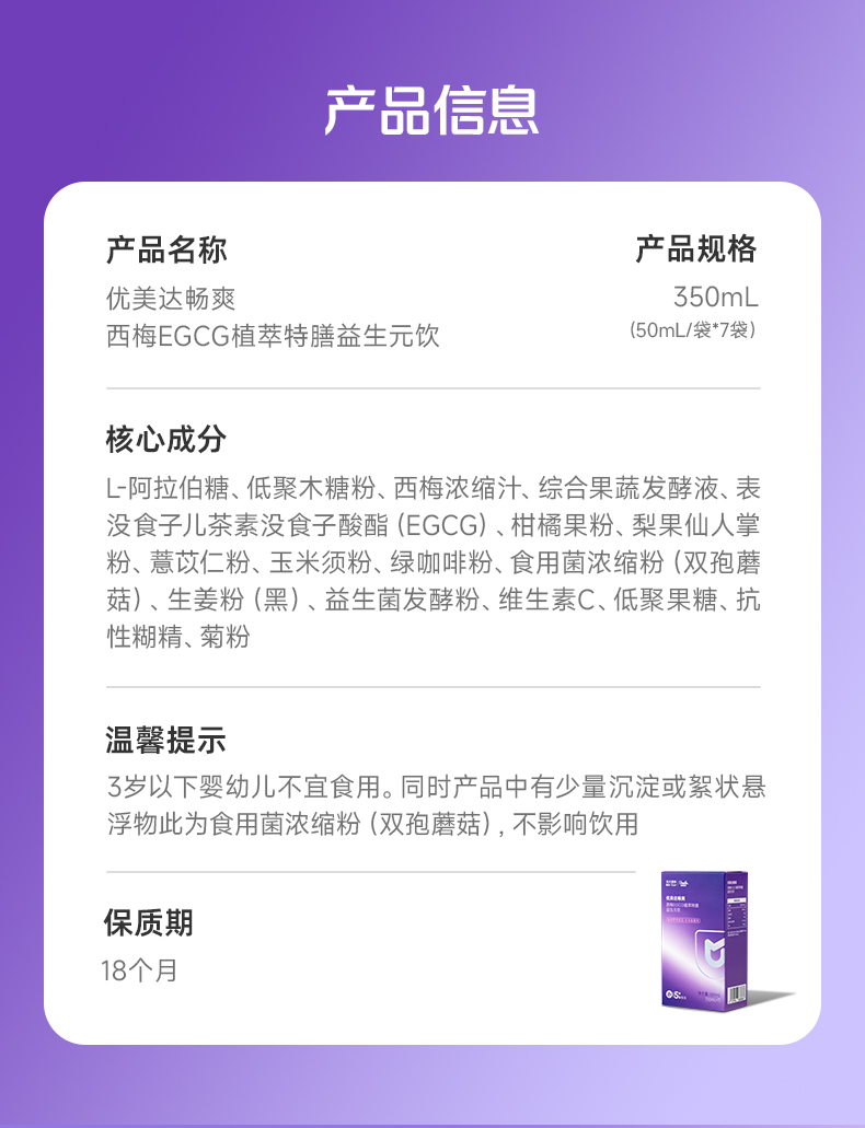 VIP【优美达畅爽】 大餐肠道救星 西梅EGCG植萃特膳益生元饮(7包/盒)