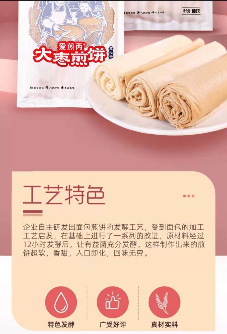 基地直邮煎饼,红枣//花生//五粮任选,15袋*100g/袋,仅售58元包邮