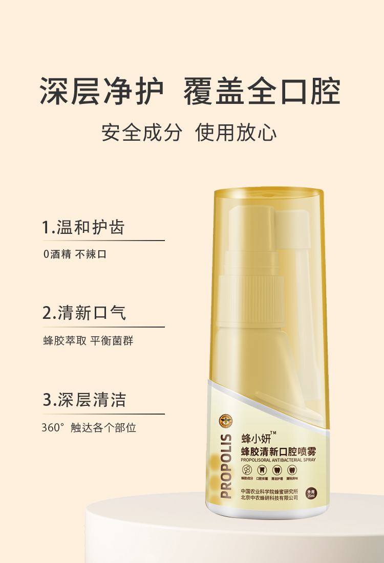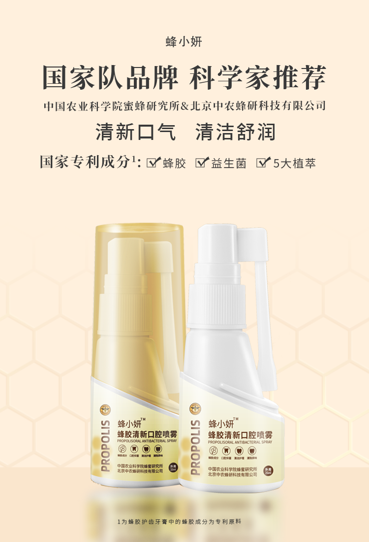 【温和配方】蜂小妍牌(中国农科院蜜蜂研究所品牌)蜂胶益生菌清新口腔喷雾覆盖全口腔改善咽喉干痒、帮助清火气