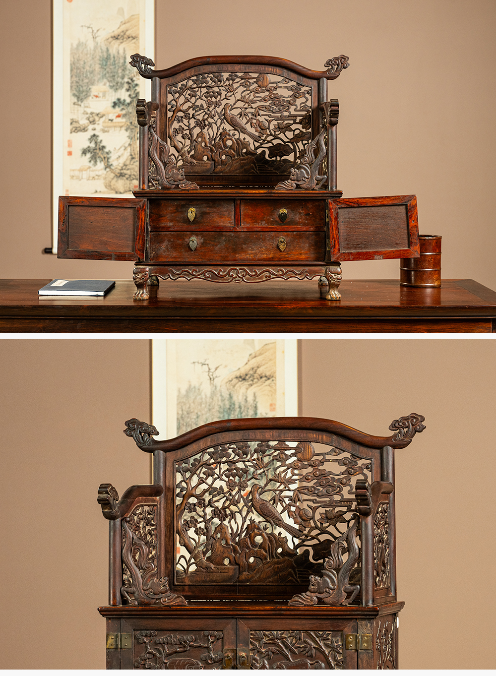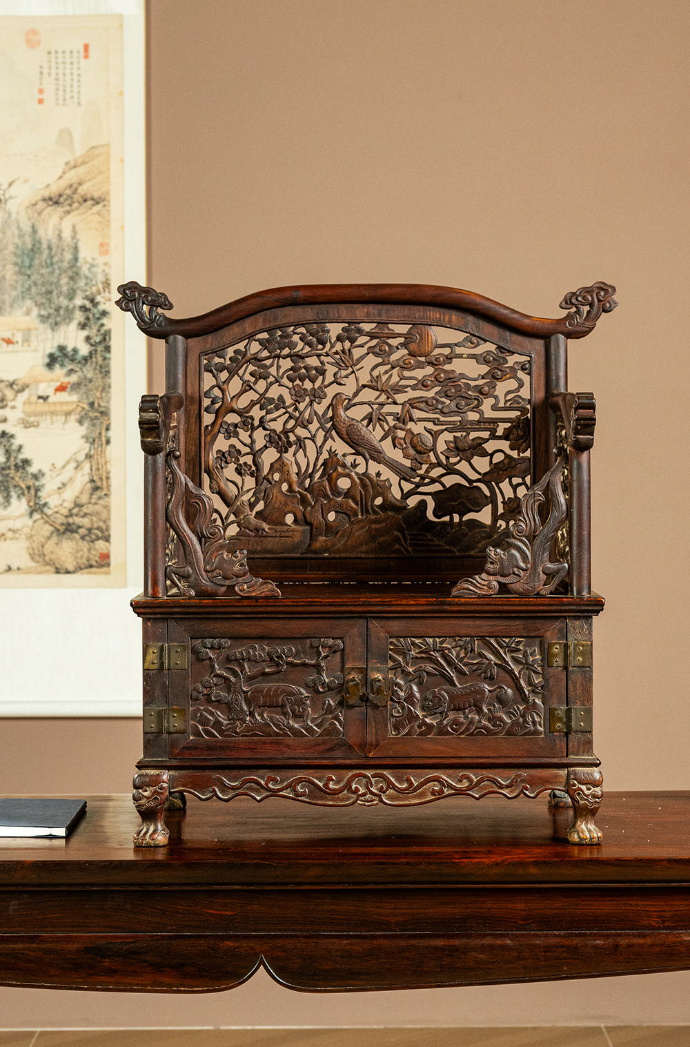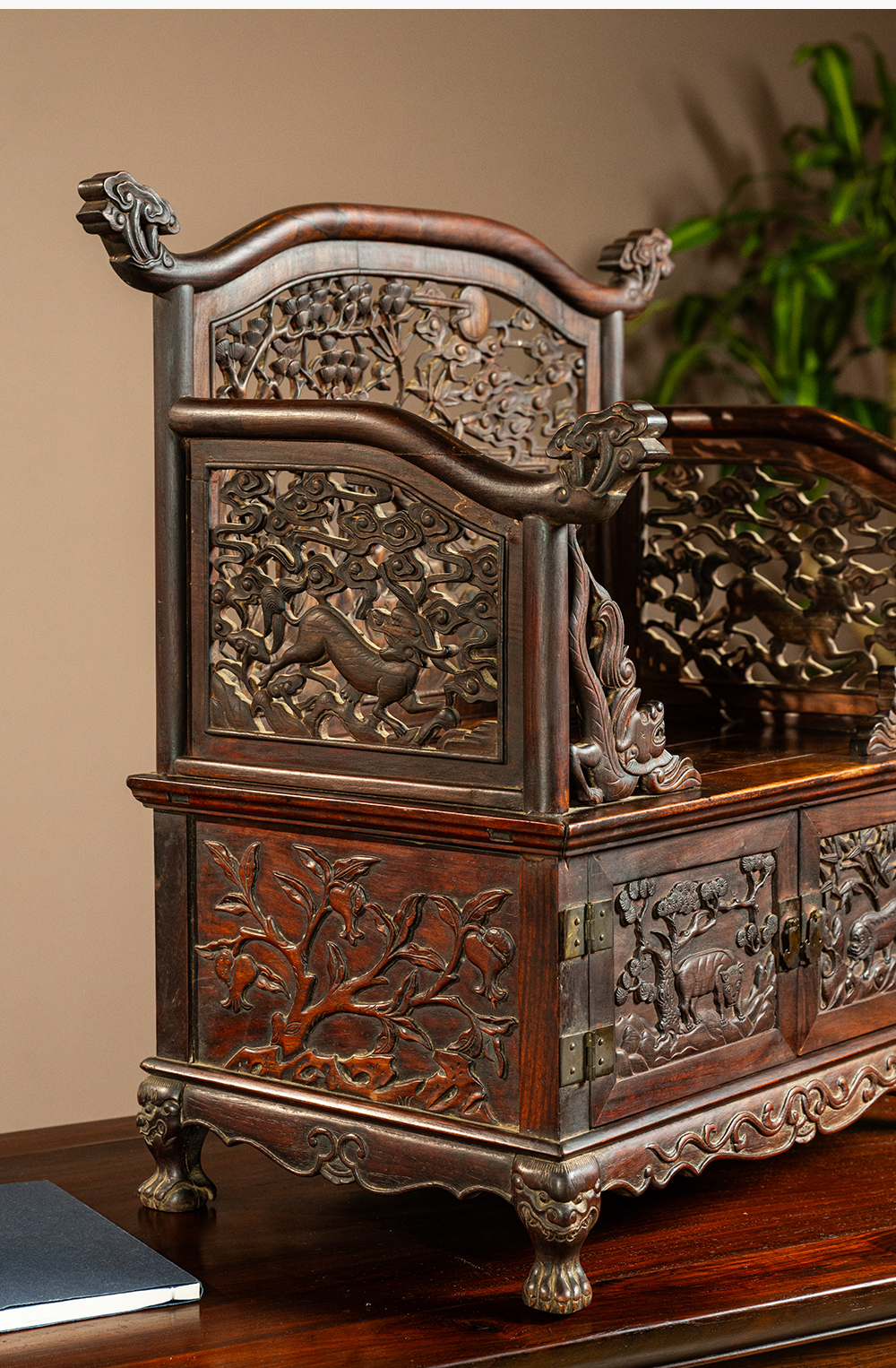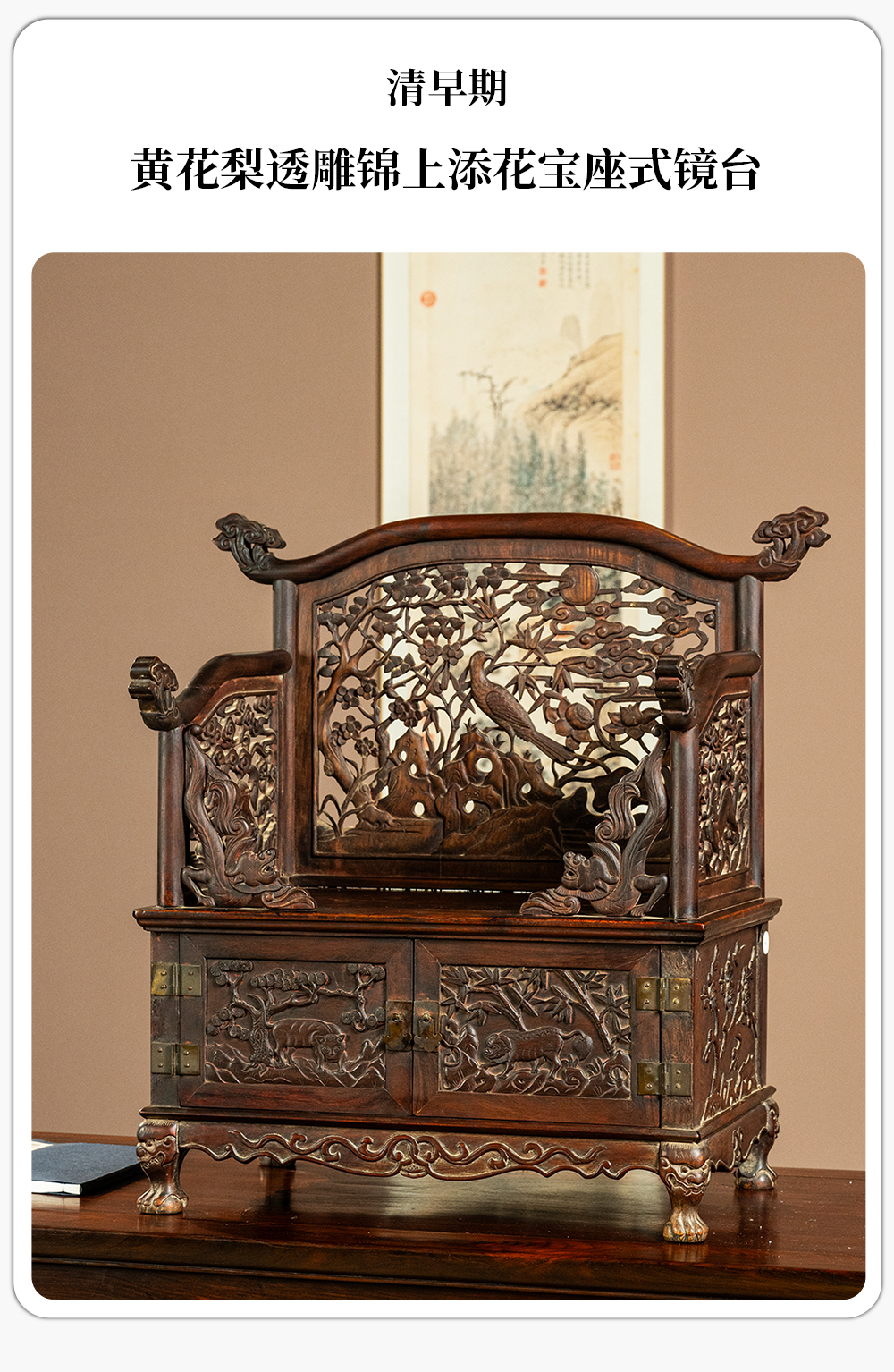 清早期 黄花梨透雕锦上添花宝座式镜台