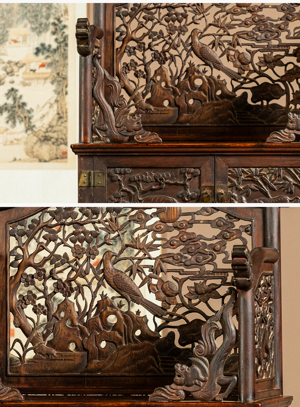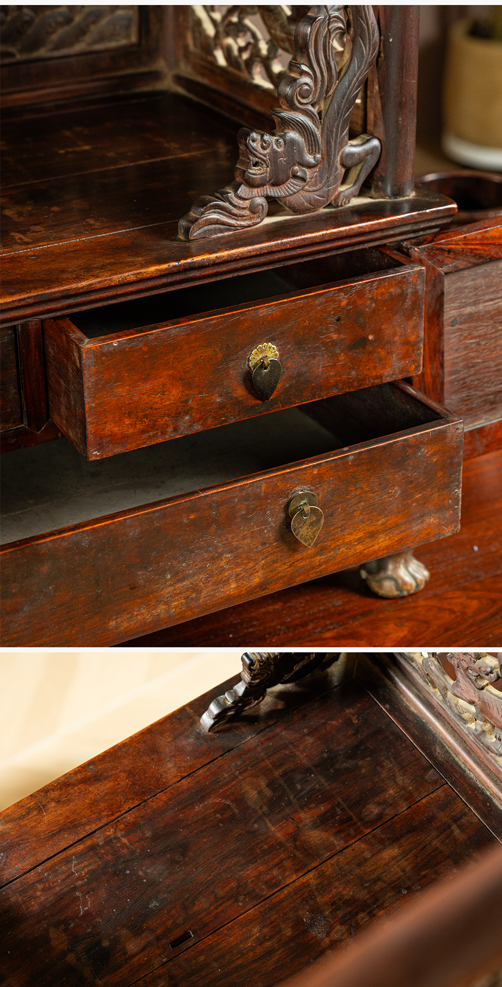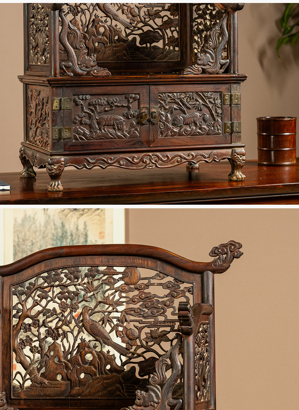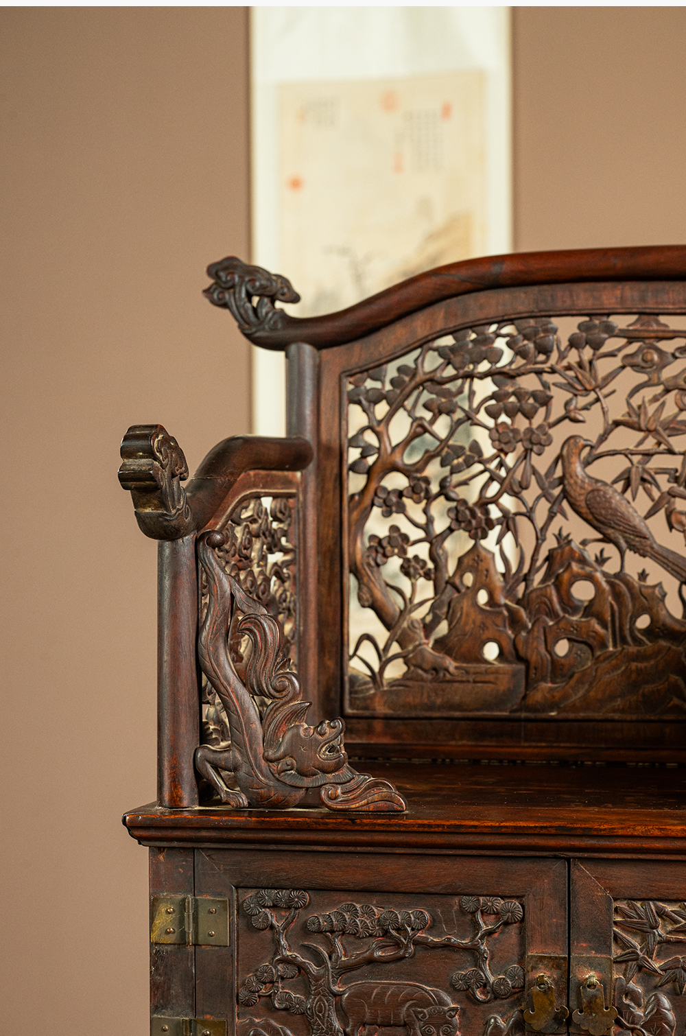 清早期 黄花梨透雕锦上添花宝座式镜台