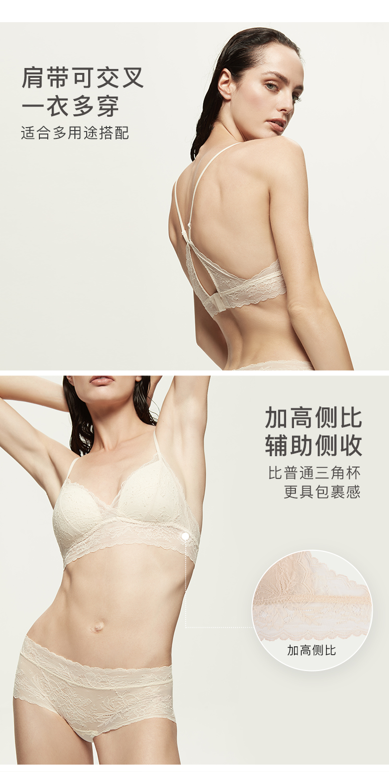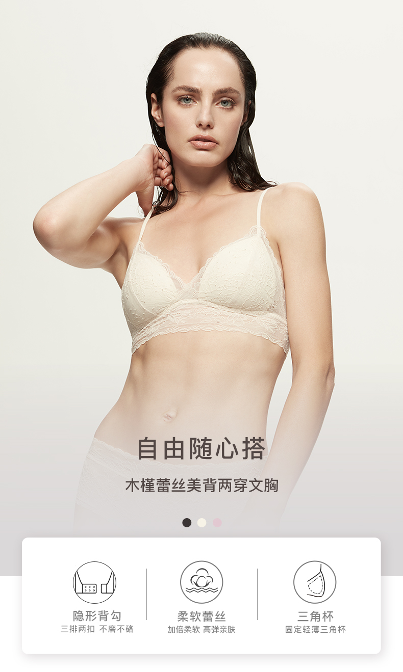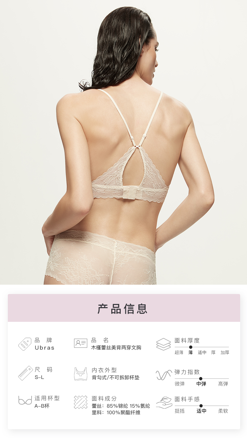 Ubras木槿蕾丝美背两穿文胸内衣女无钢圈舒适透气款胸罩