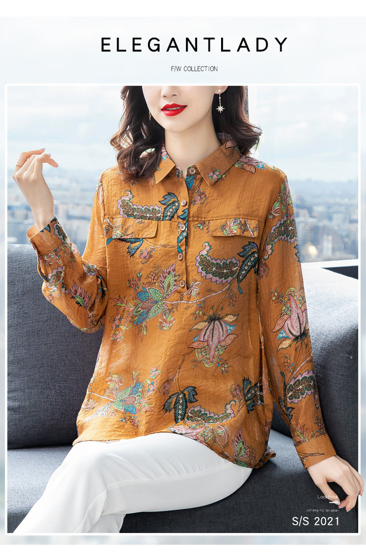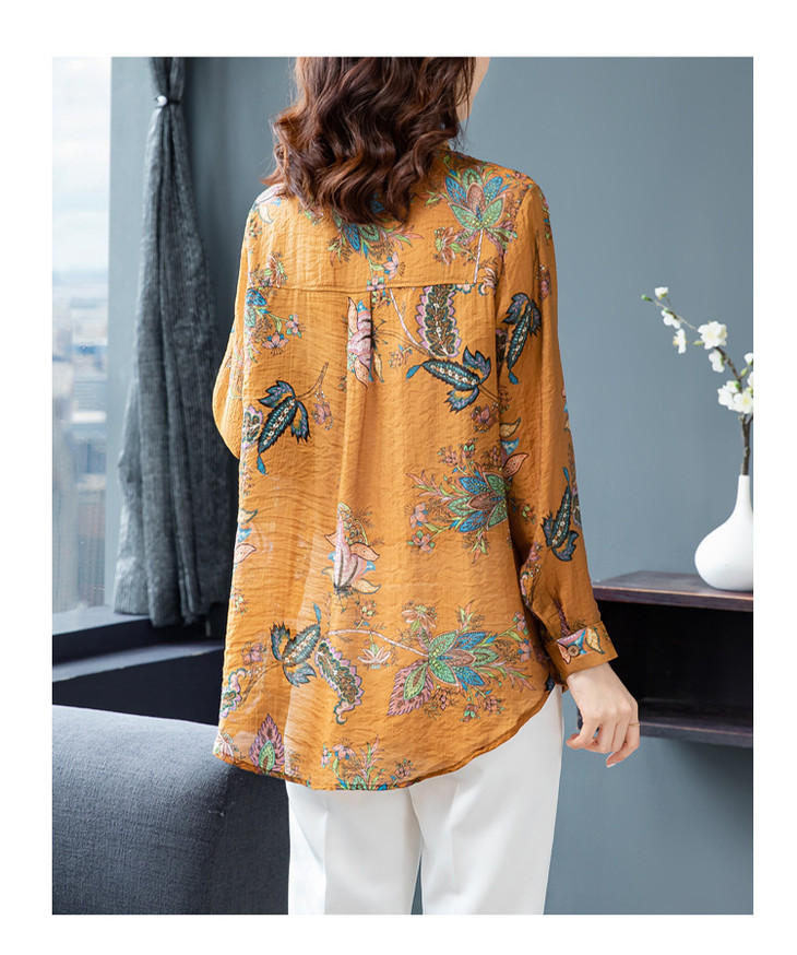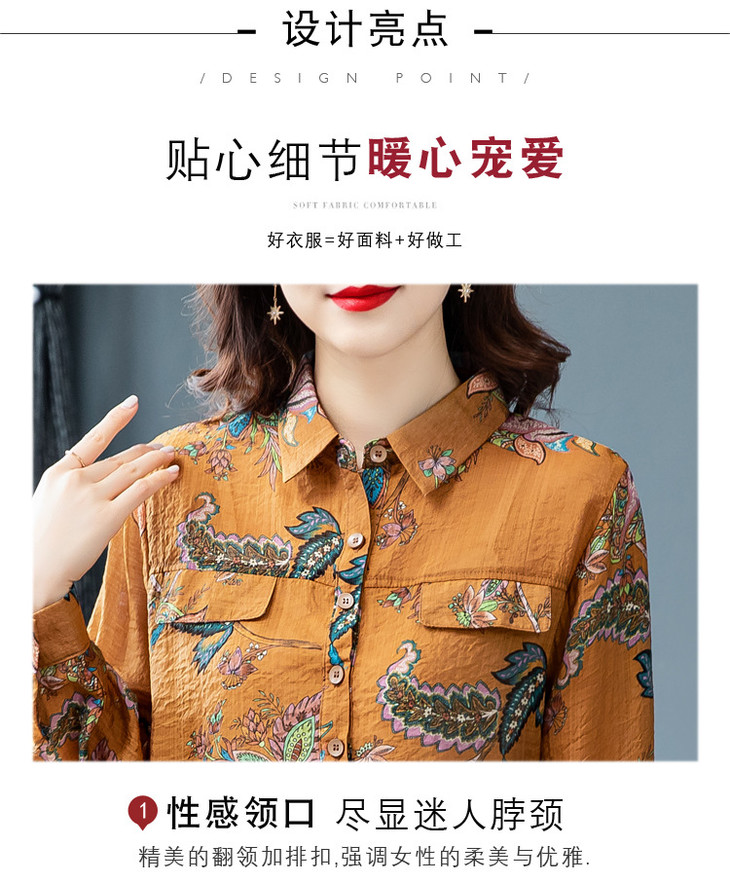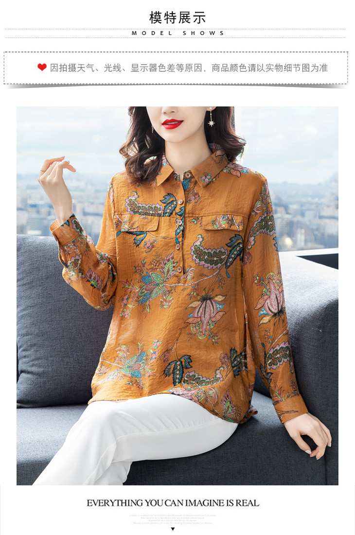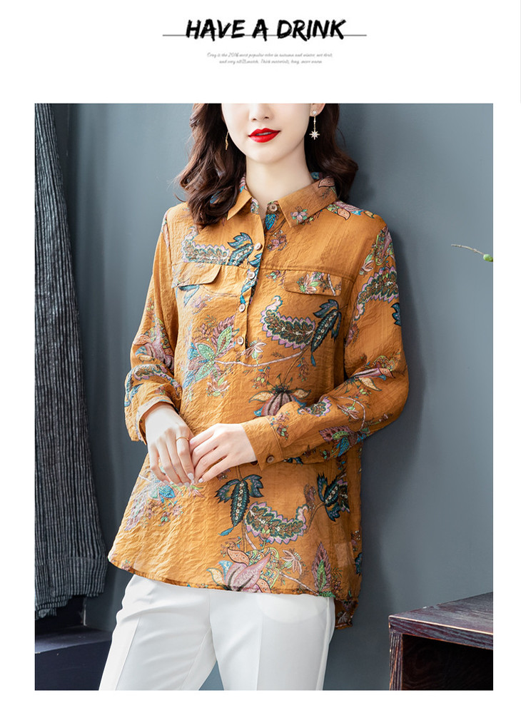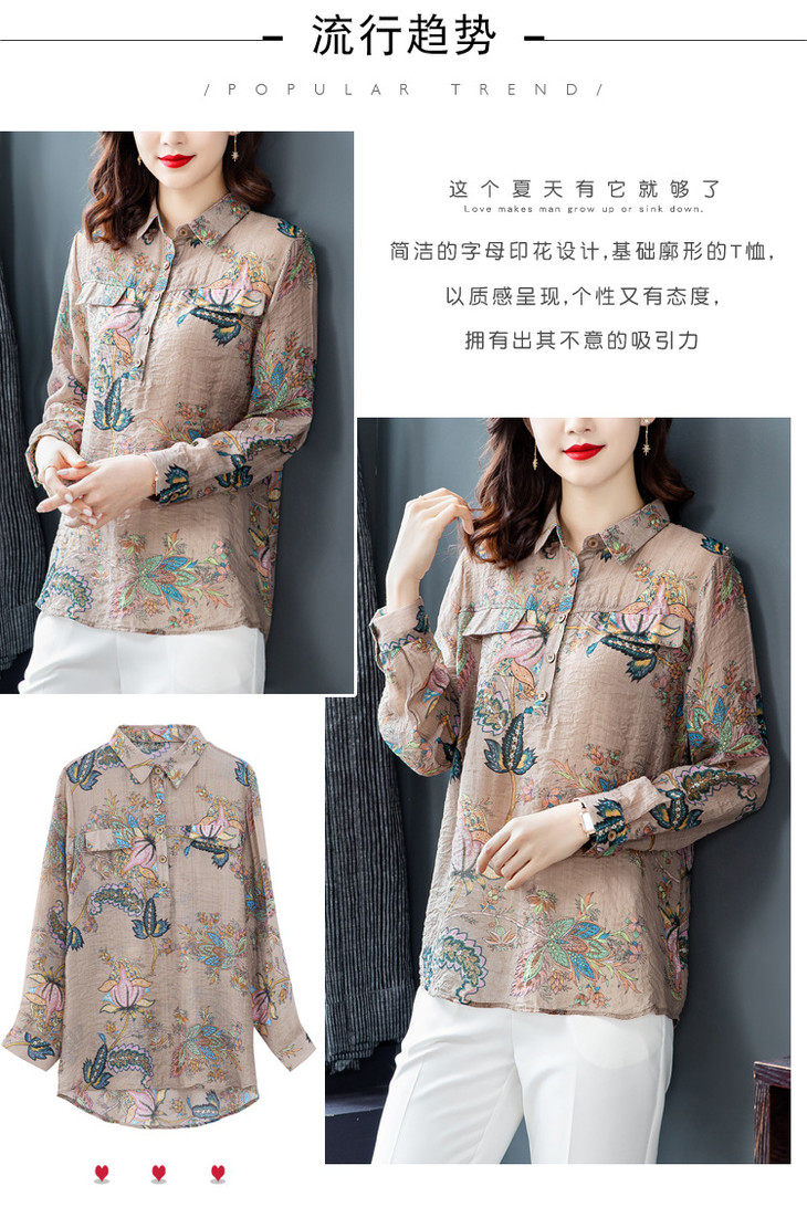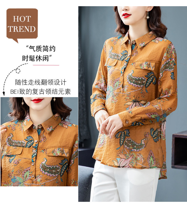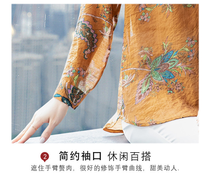 MZ115494 大码棉质长袖衬衫女士七分袖棉麻薄款2021潮款春秋装中年印花上衣