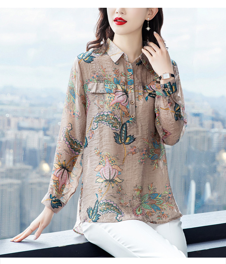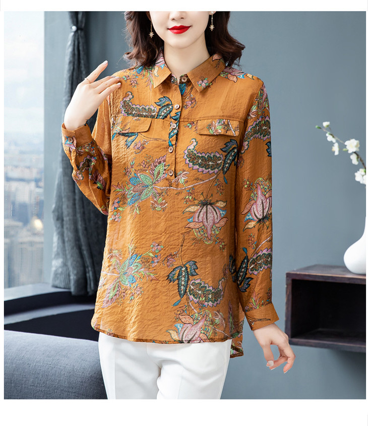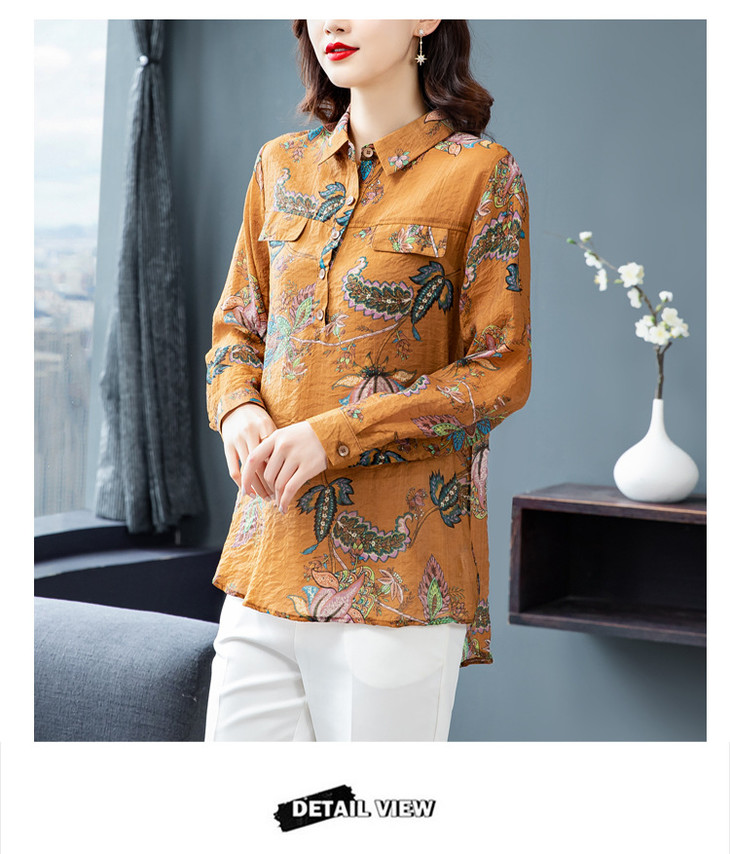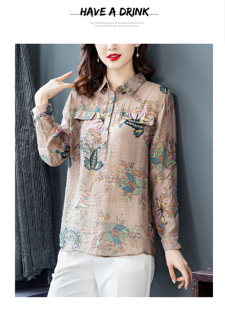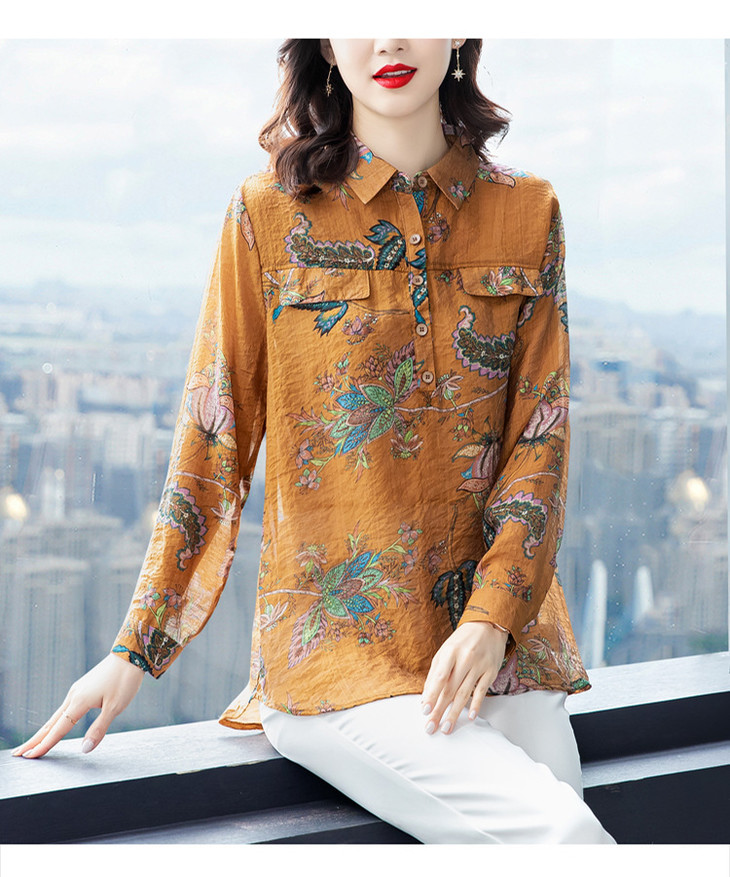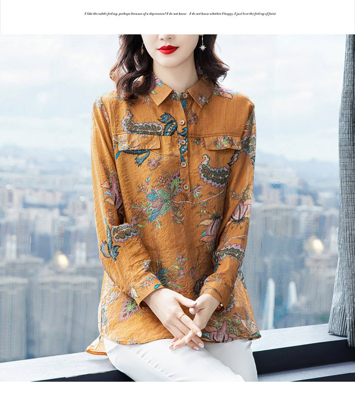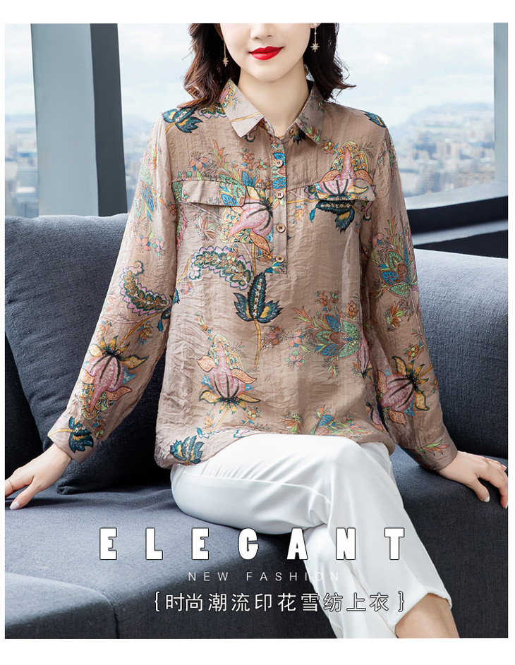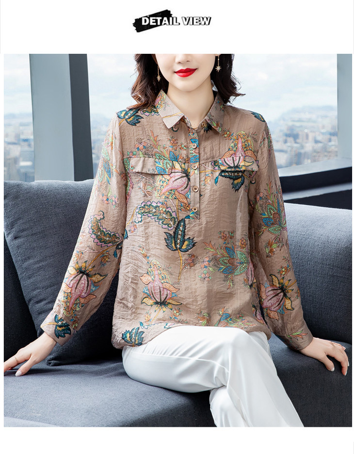 MZ115494 大码棉质长袖衬衫女士七分袖棉麻薄款2021潮款春秋装中年印花上衣